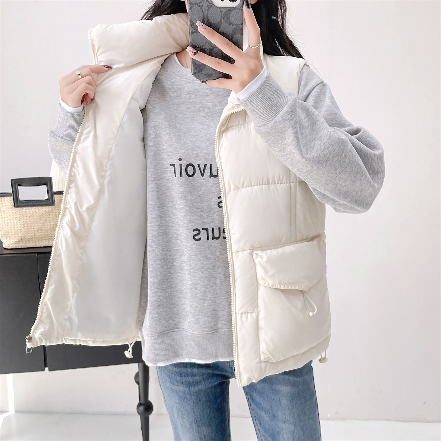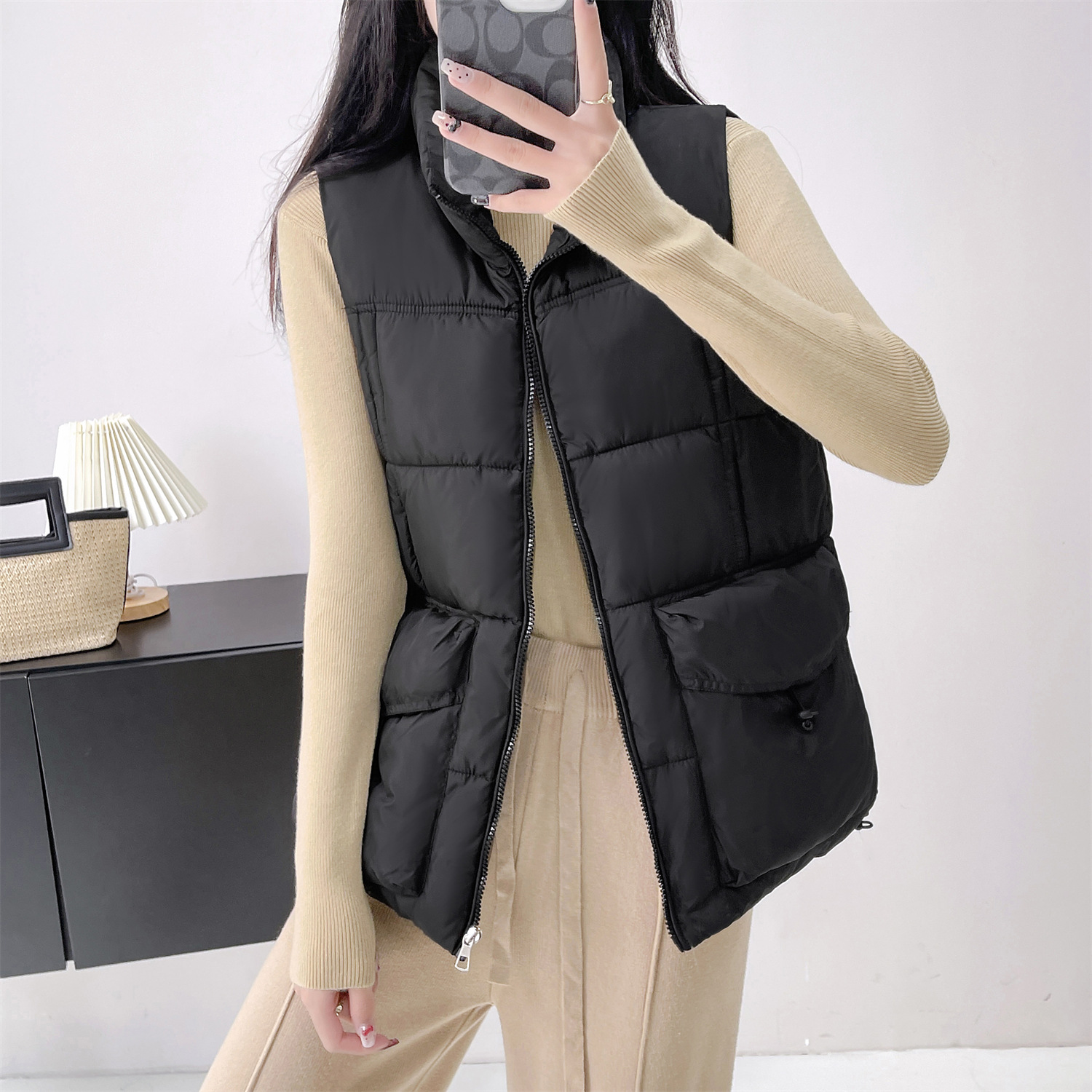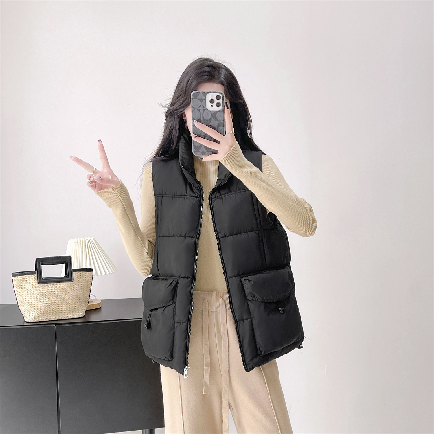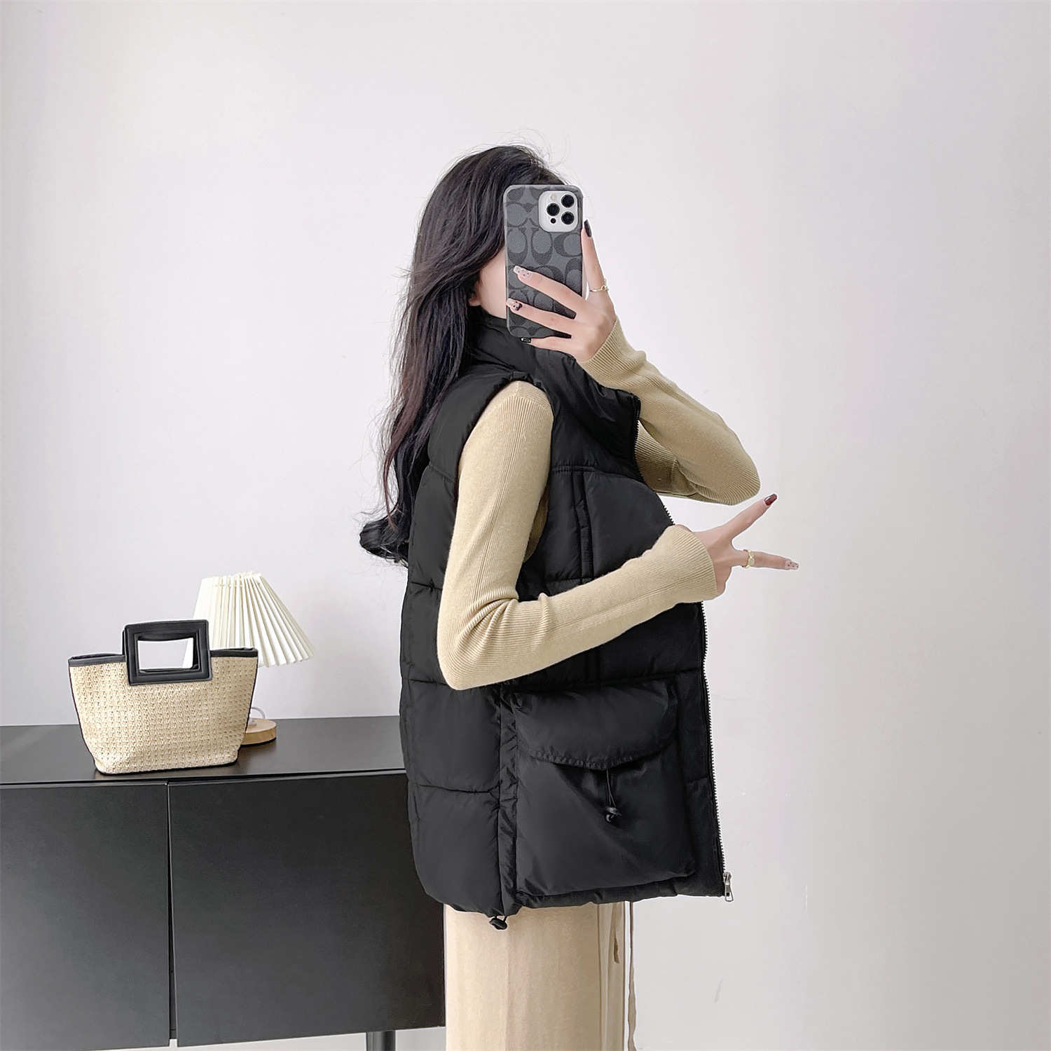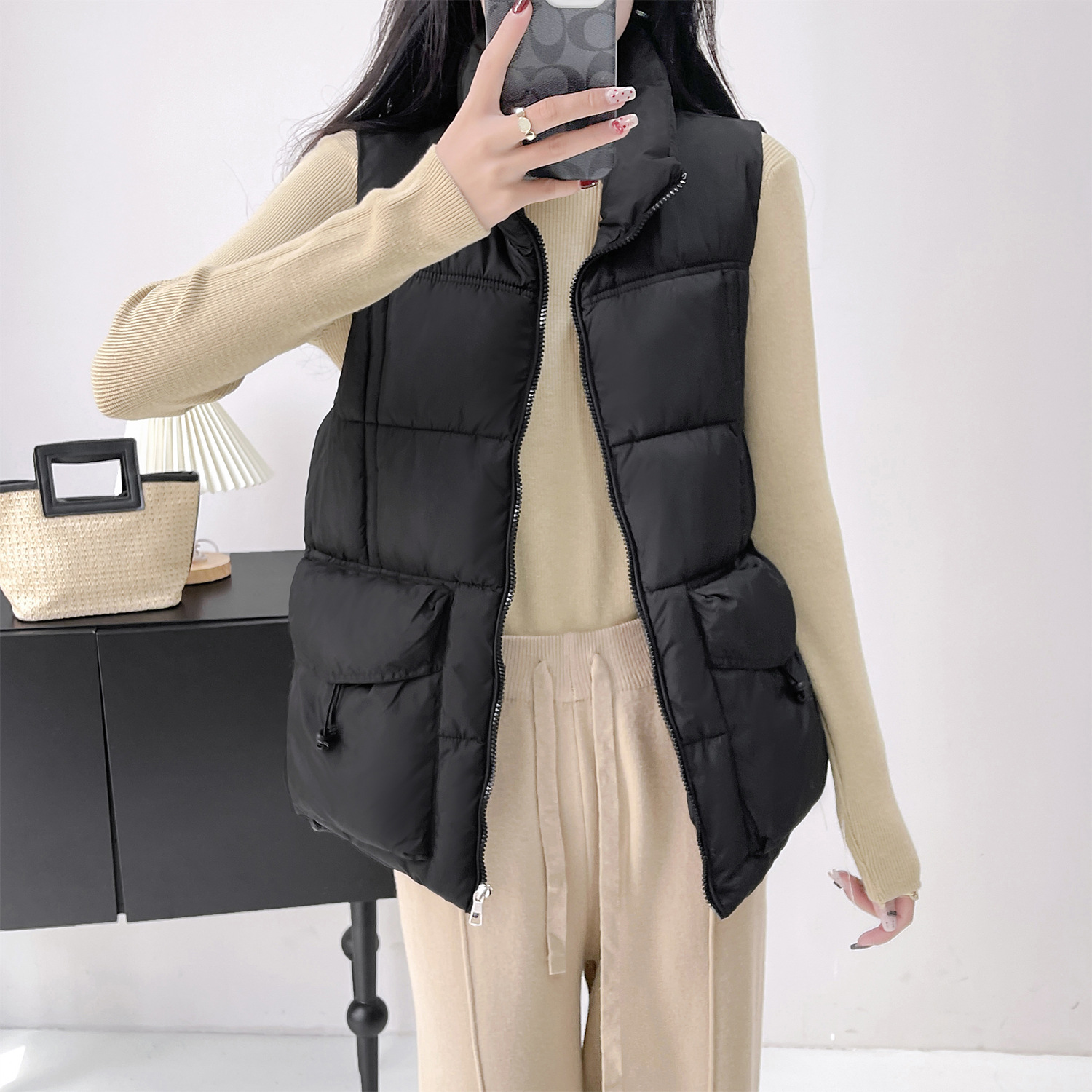 모조 다운 코튼 조끼 여성의 짧은 가을과 겨울 새로운 한국 스타일 느슨한 수직 칼라 조끼 웨이스트 코트 유행 여성 의류스토어 가기