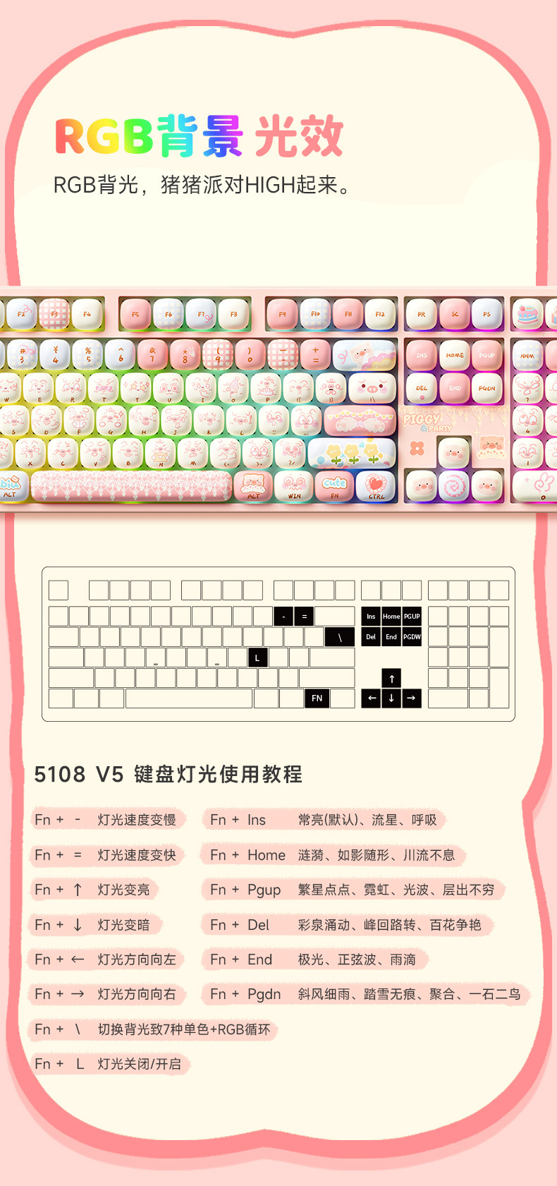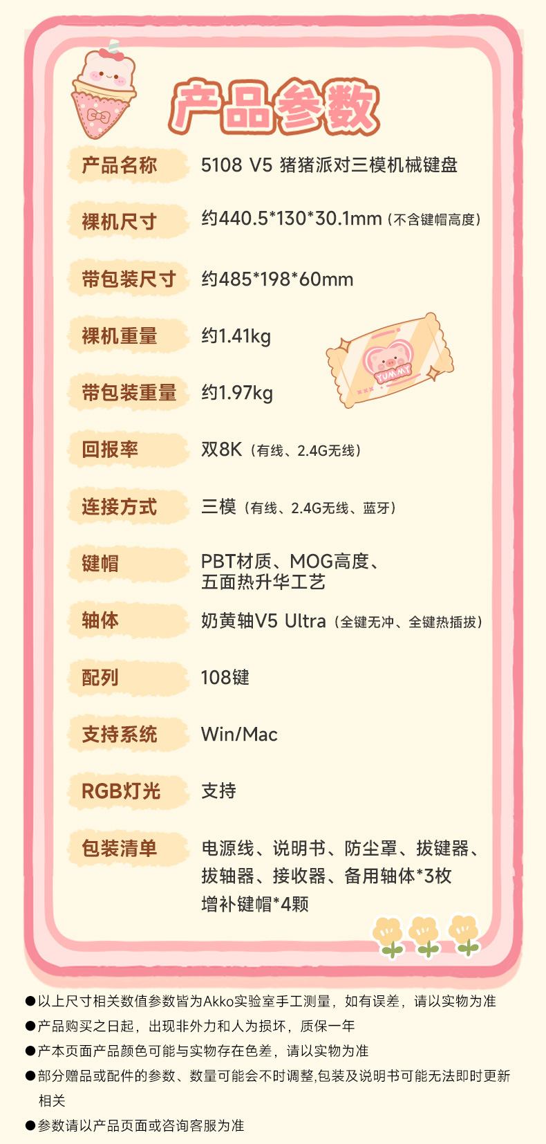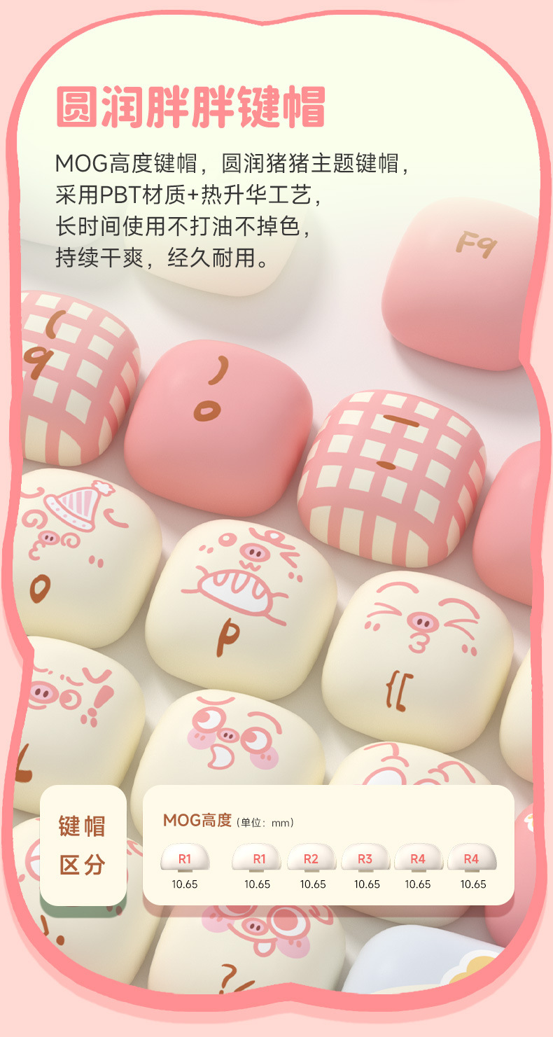 AKKO 돼지 파티 기계 키보드 MOG 승화 3 모드 무선 작은 찐 빵 E-스포츠 사무실 범용 키보드