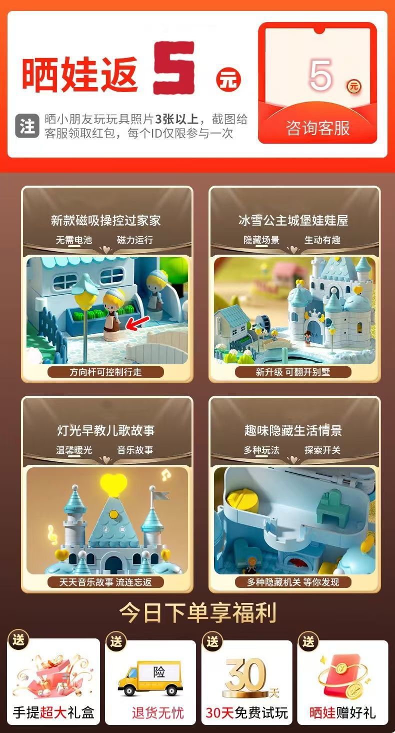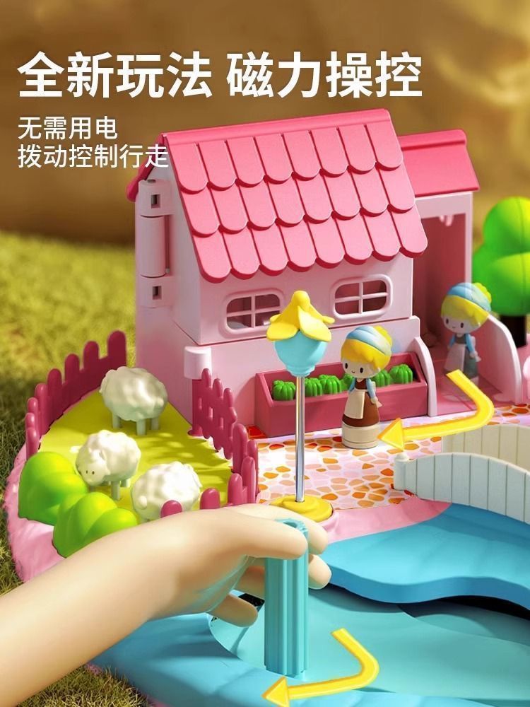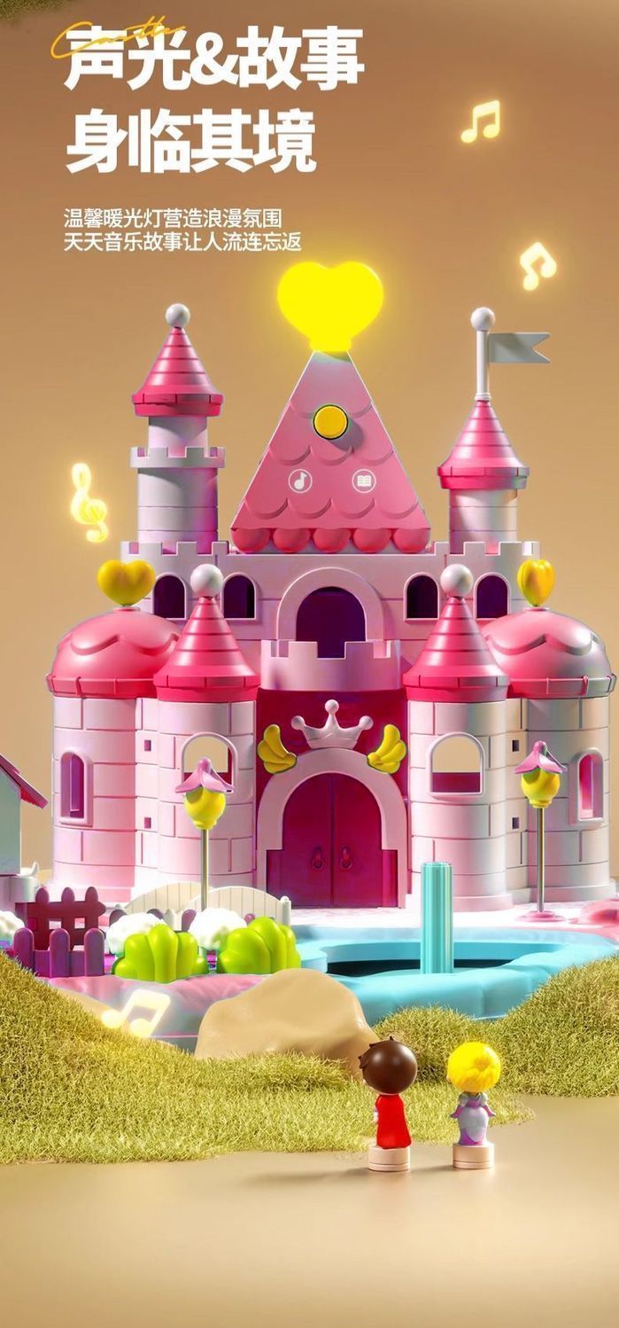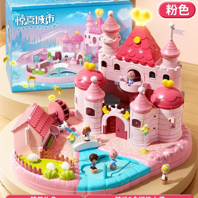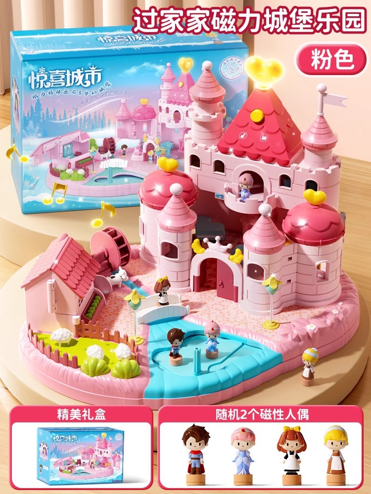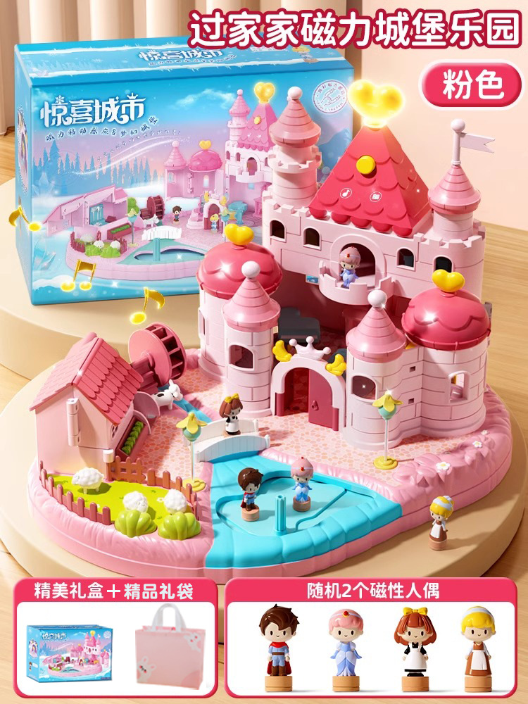 • 핑크색 선물 가방 모델 [소리와 빛의 성 + 자기 센서 + 선물 가방 1개] 인형 2개 포함