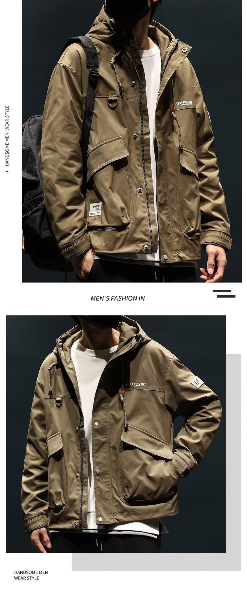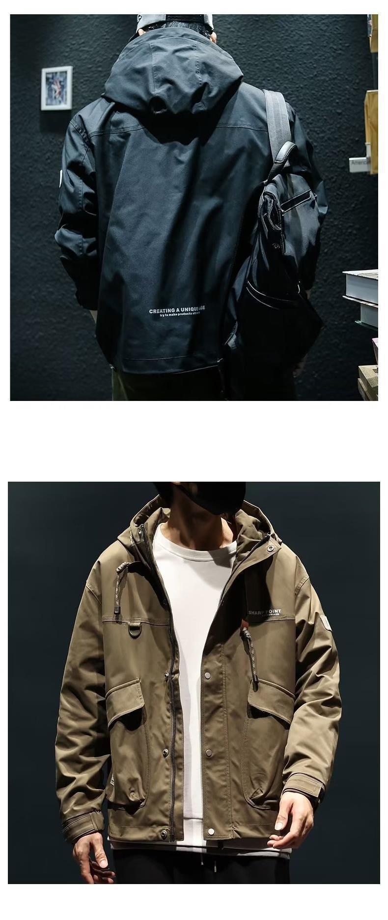 봄과 가을 후드 툴링 재킷 남성 가을 미국 유행 브랜드 플러스 사이즈 봄버 재킷 가을과 겨울 유행 자켓