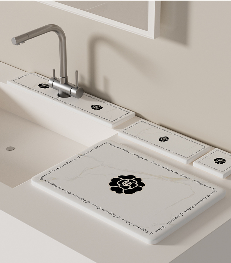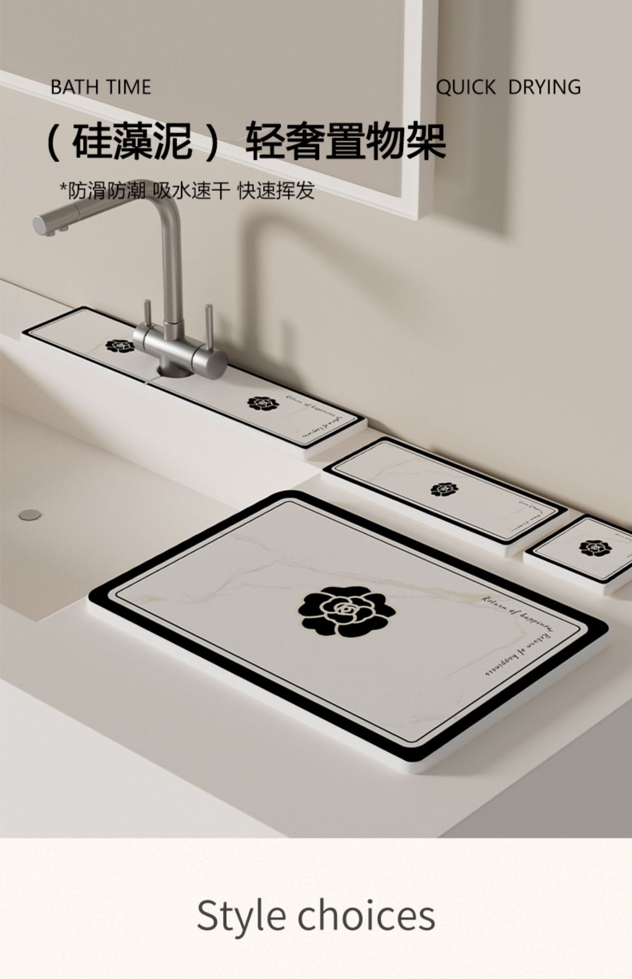 轻奢硬的咖啡机垫子水龙头台面满铺牙刷杯速干厕所中古风沥水垫