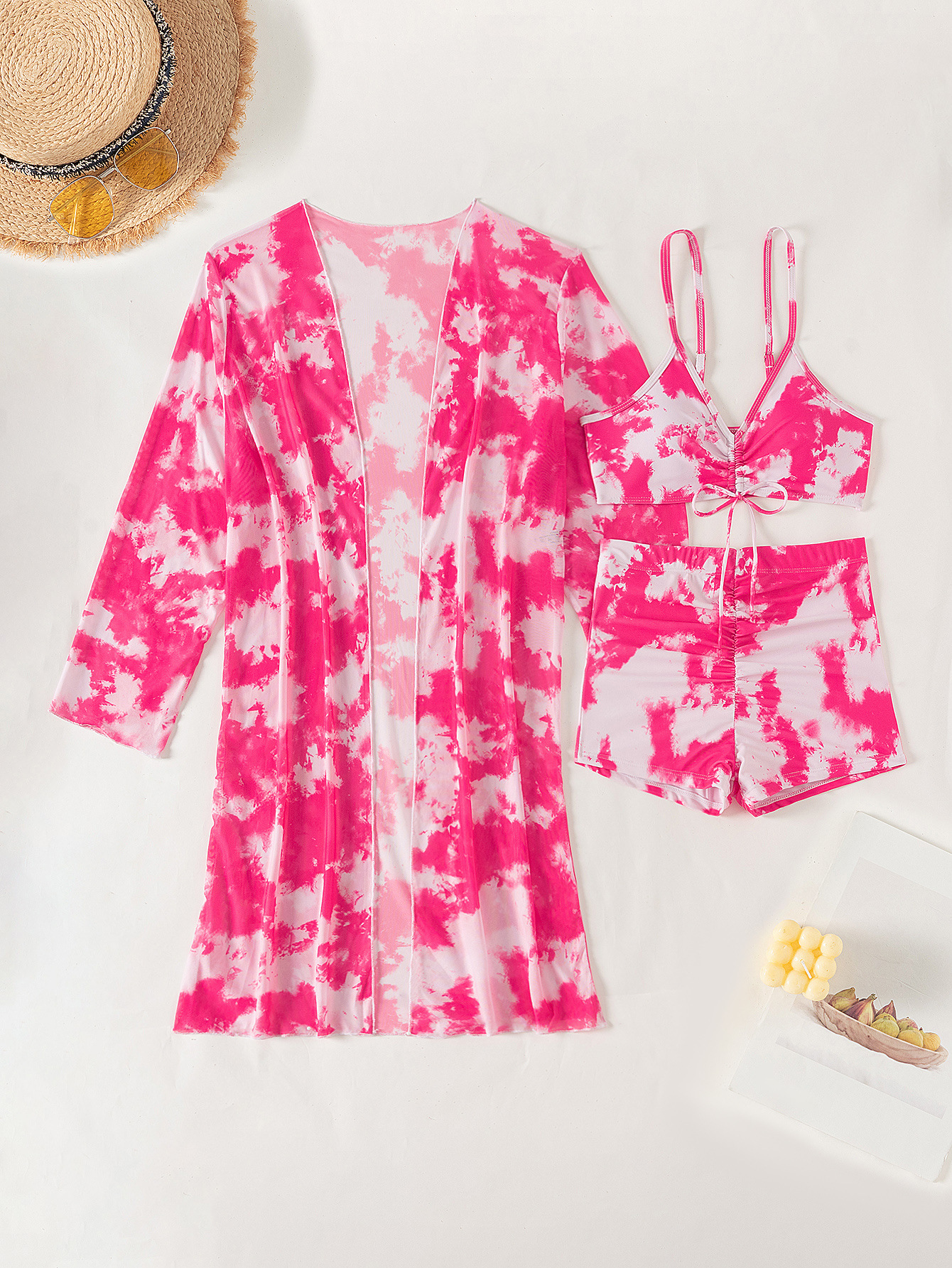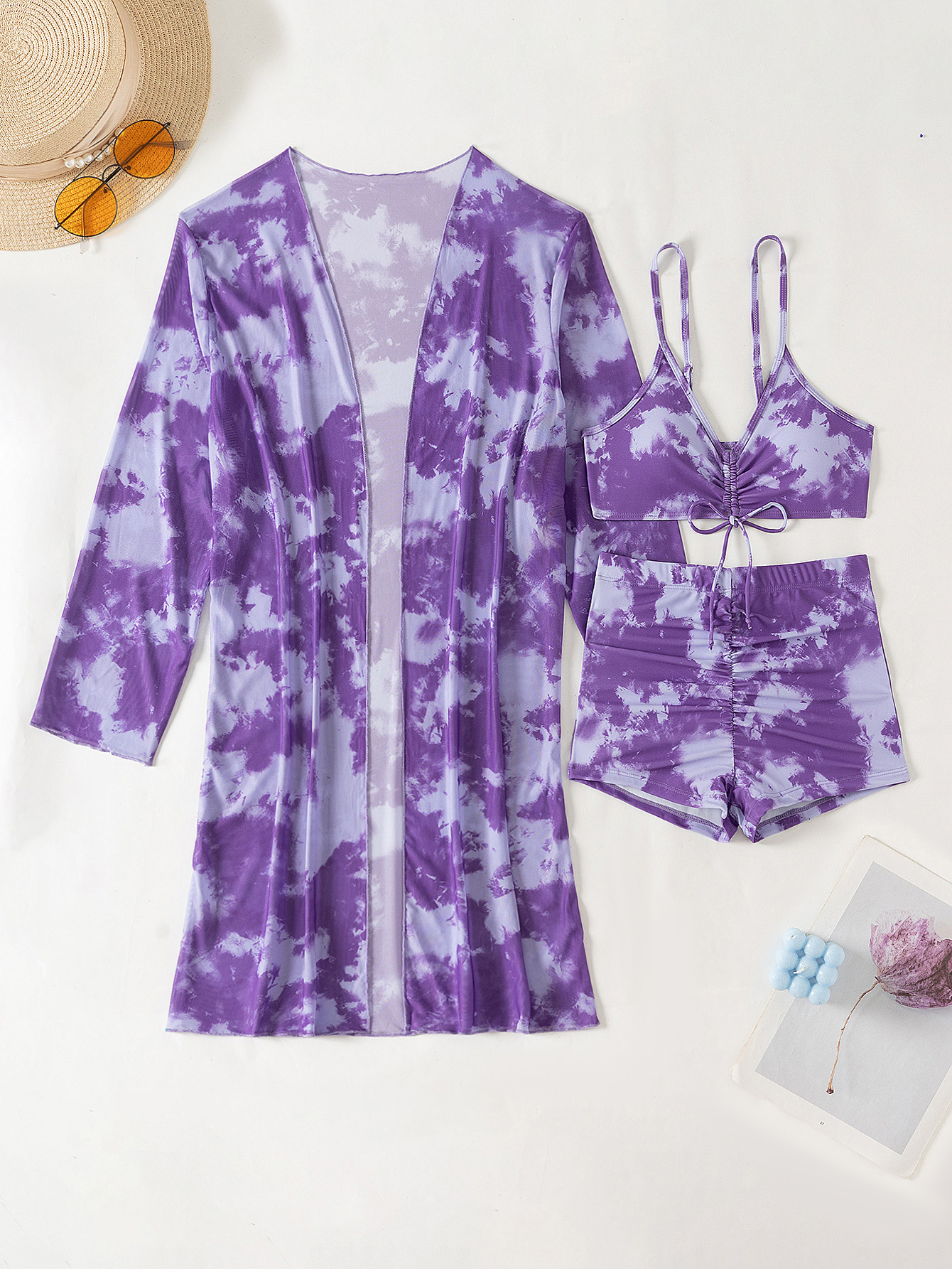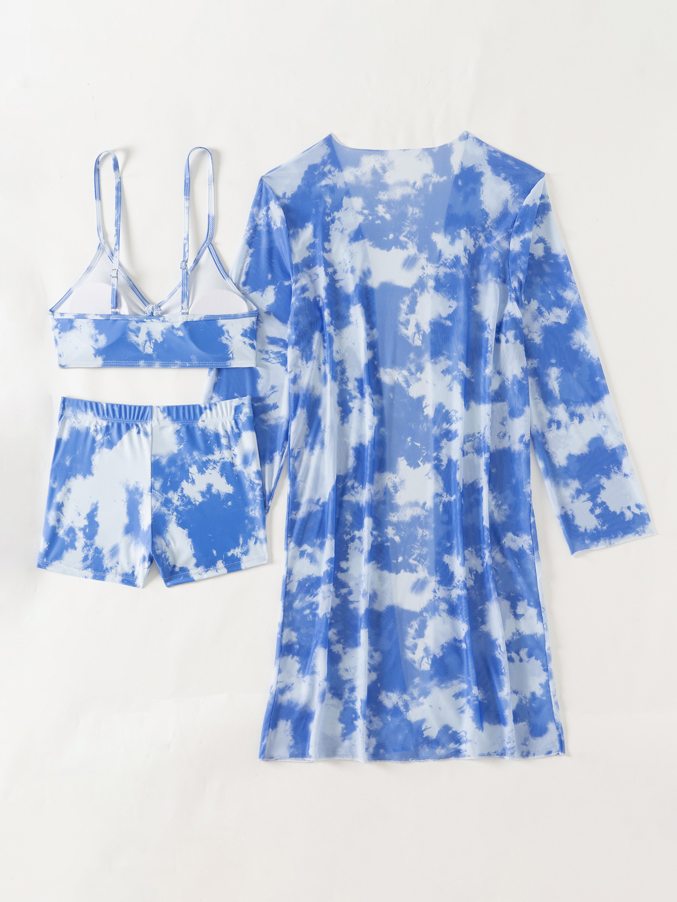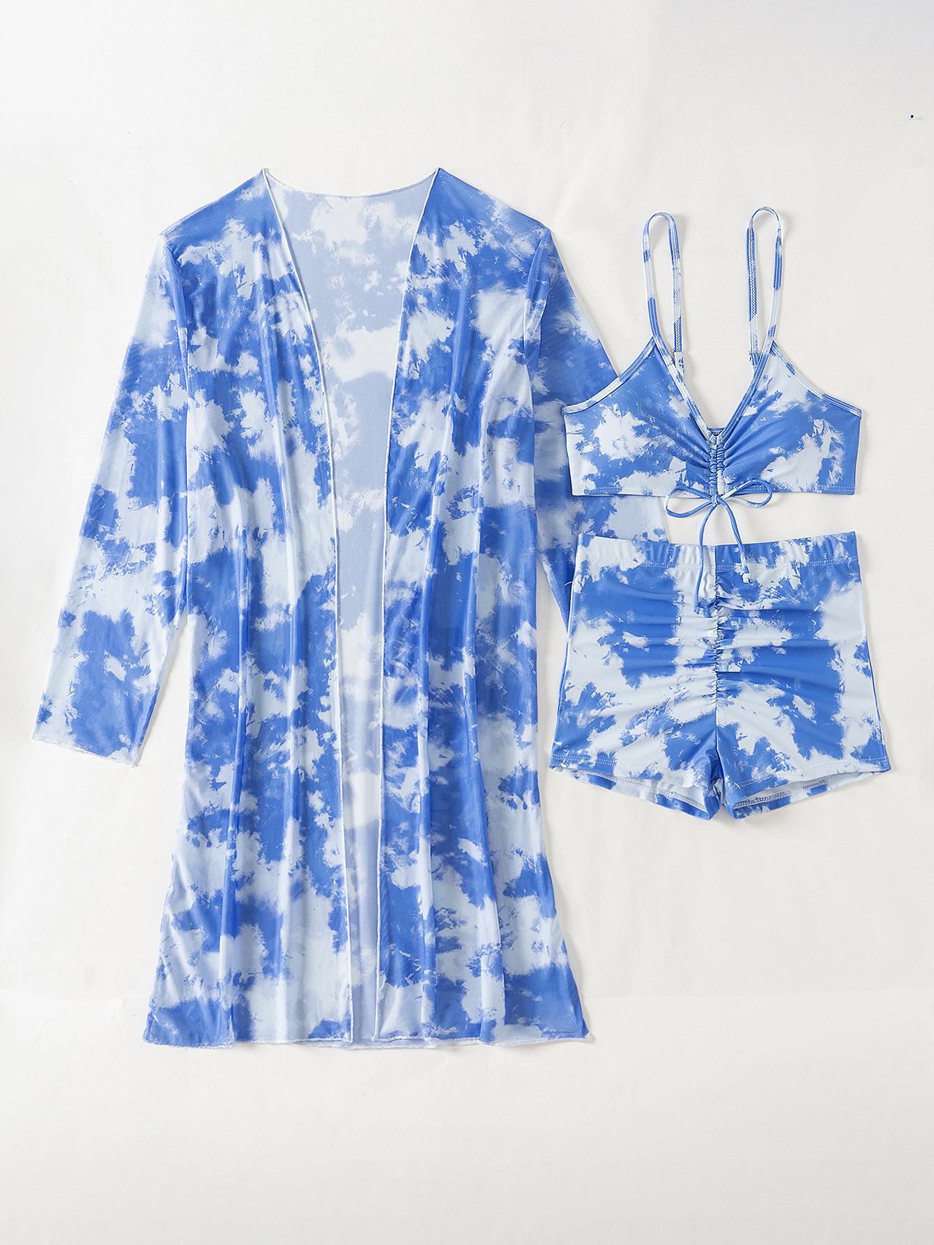 해외 무역 비키니 3종 세트 프린트 배 가리개 긴팔 커버업 타이다이 수영복 여성 온천 배 가리개스토어 가기