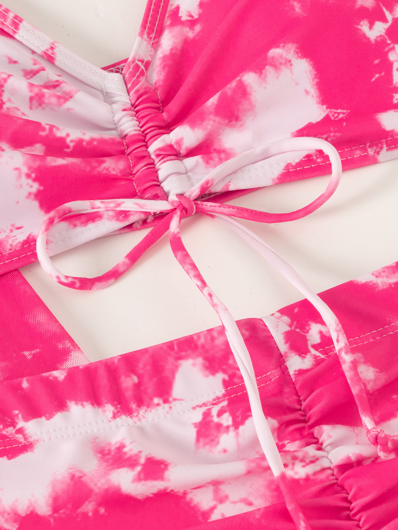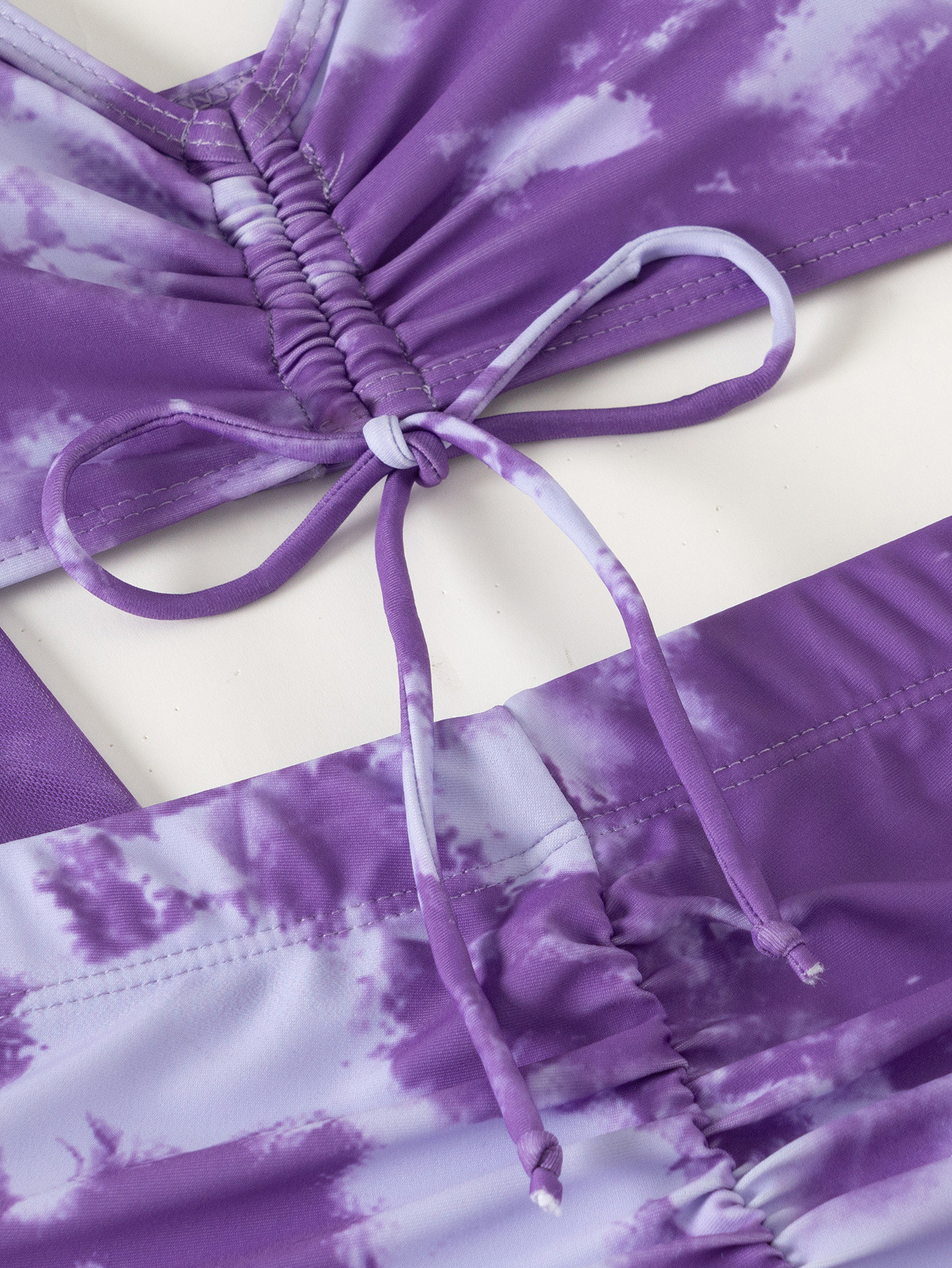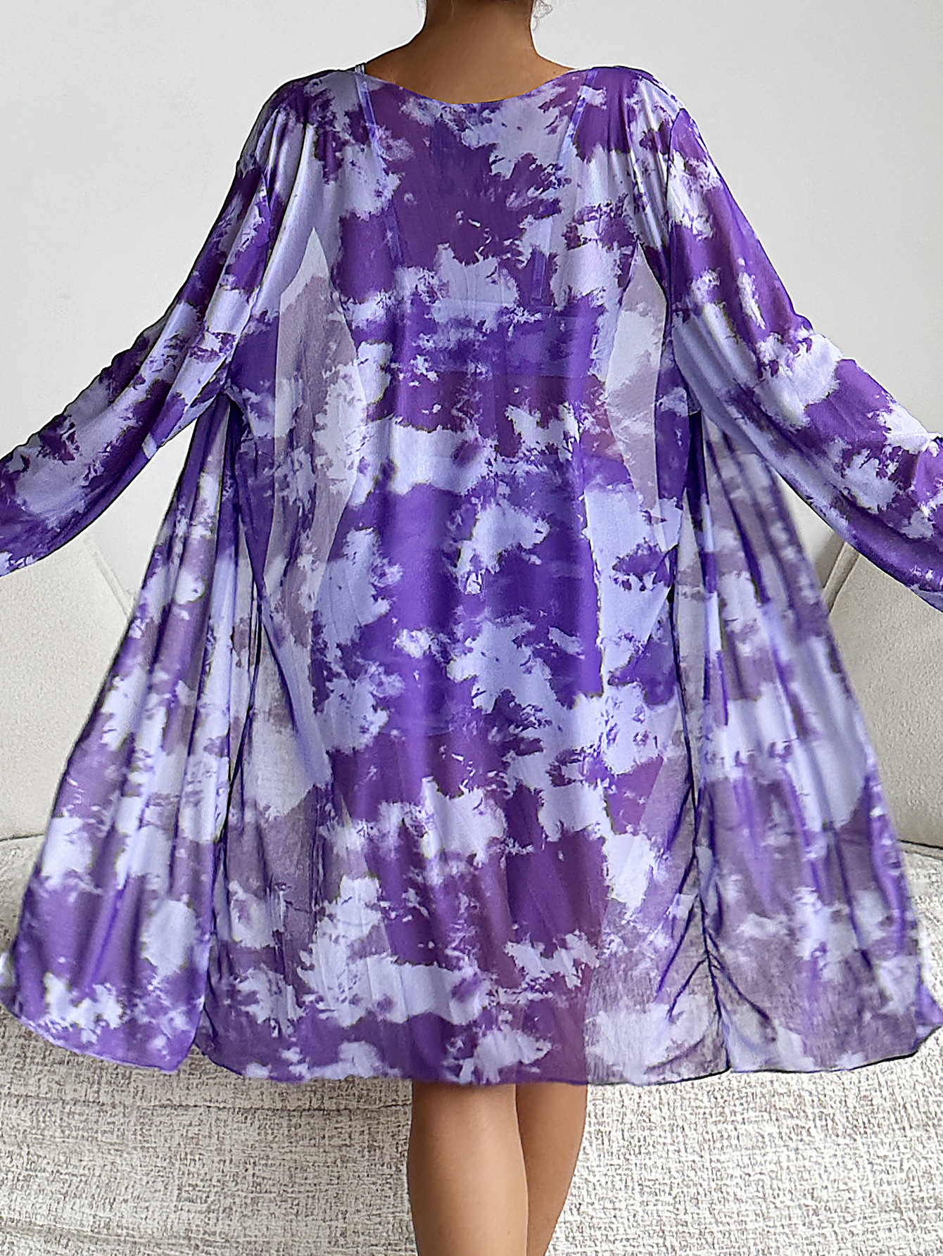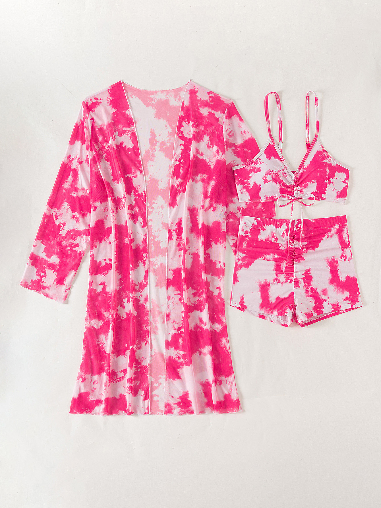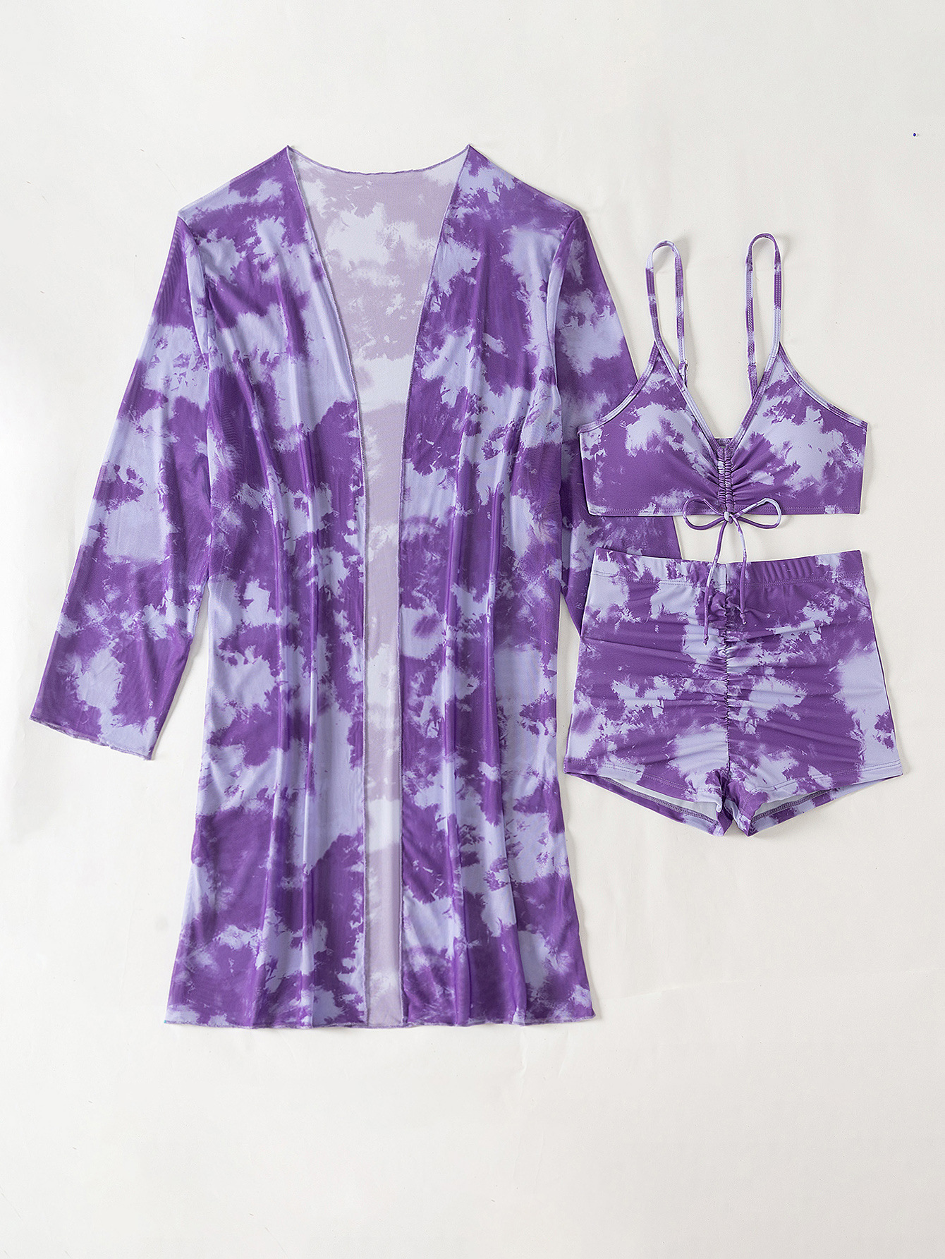 해외 무역 비키니 3종 세트 프린트 배 가리개 긴팔 커버업 타이다이 수영복 여성 온천 배 가리개스토어 가기