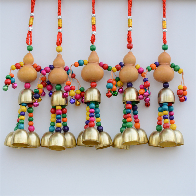 민족 스타일 특징 창조적 인 밀짚 모자 Gourd 인형 가죽 스커트 바람 벨 바 인 교수형 펜던트 홈 액세서리