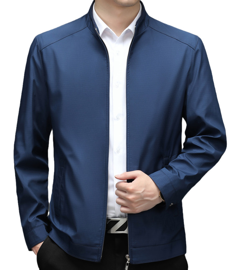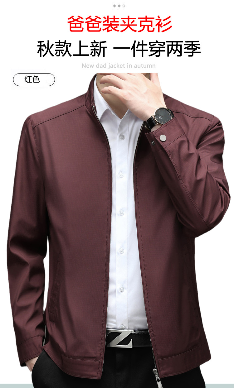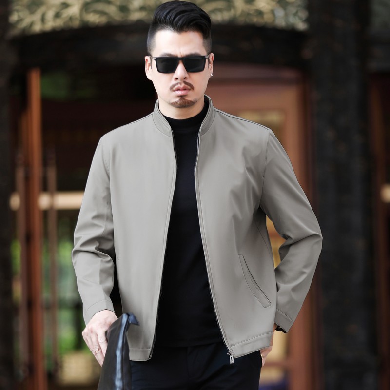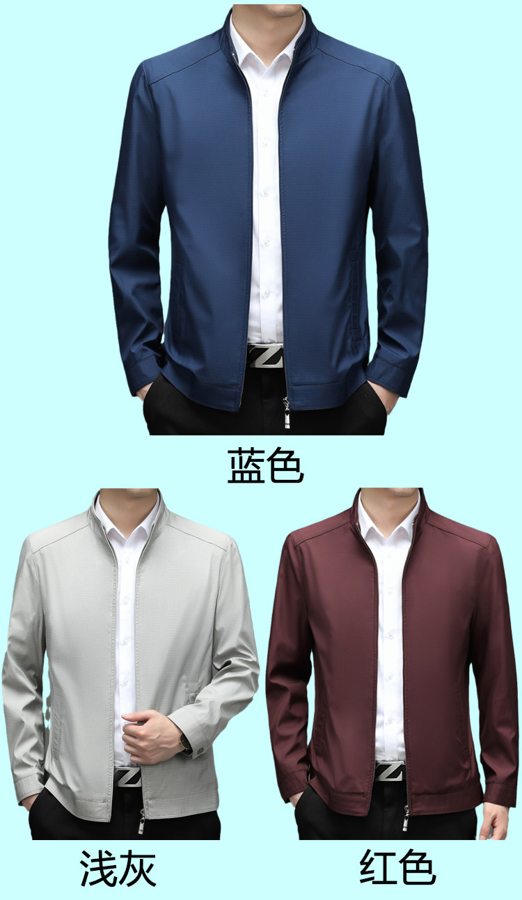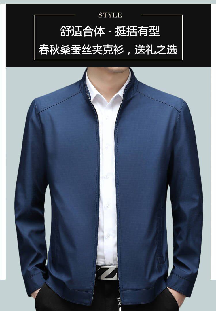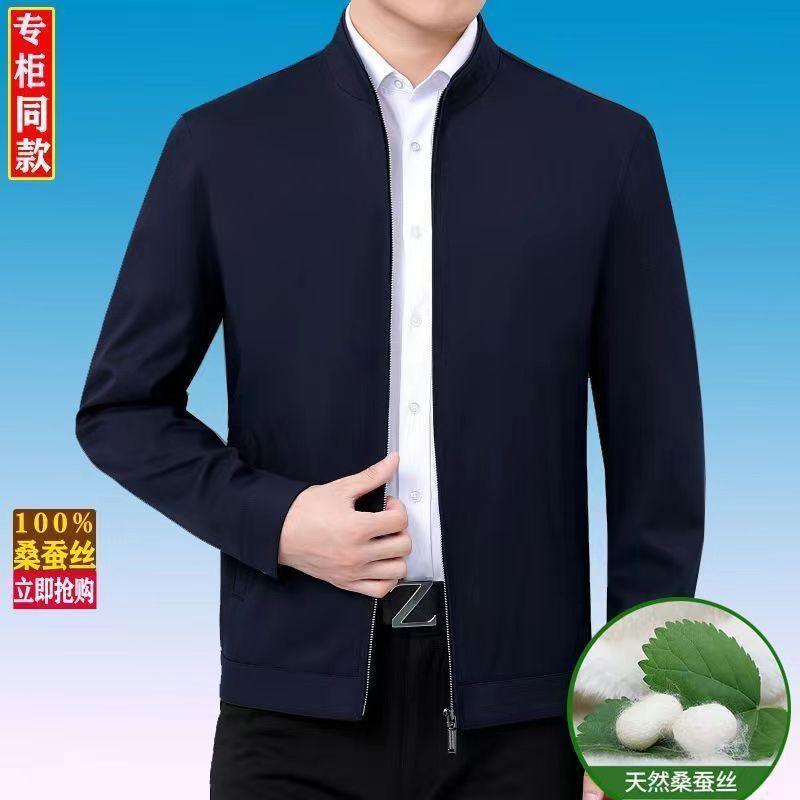 뽕나무 실크 재킷 남자 수직 칼라 재킷 중년 느슨한 아빠의 봄과 가을 새로운 재킷 얇은 싱글 탑스토어 가기