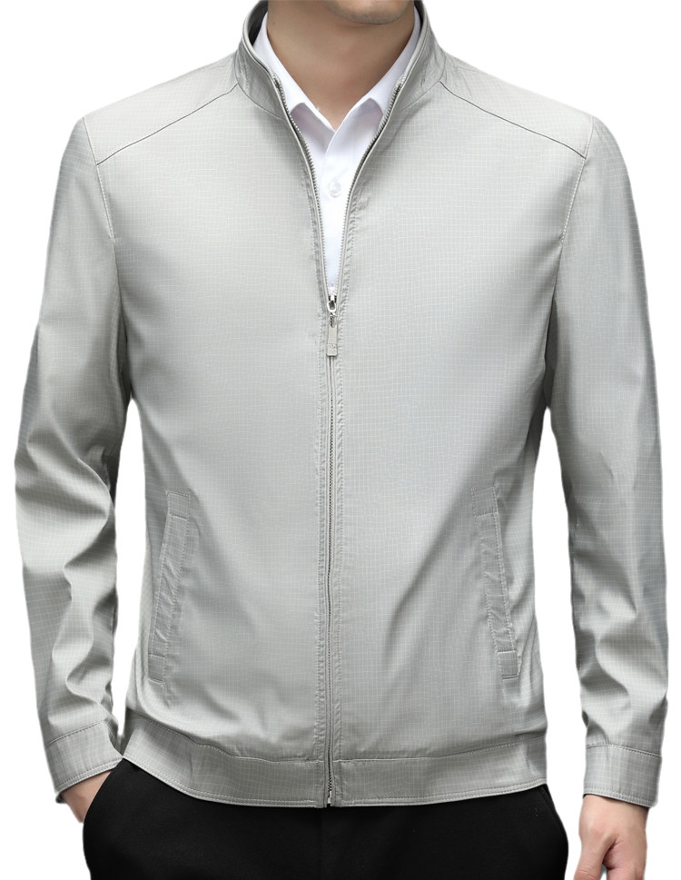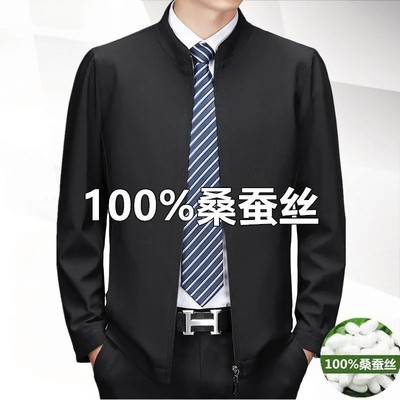 뽕나무 실크 재킷 남자 수직 칼라 재킷 중년 느슨한 아빠의 봄과 가을 새로운 재킷 얇은 싱글 탑