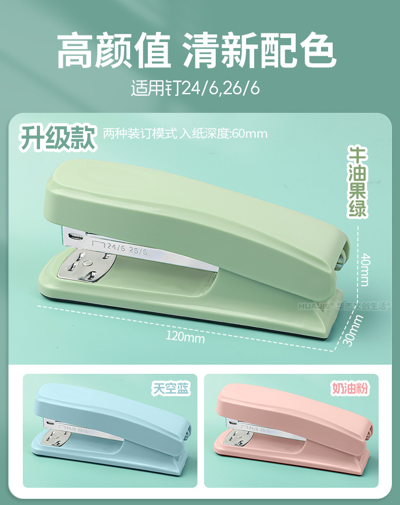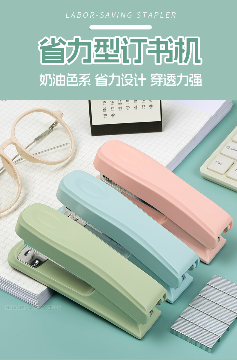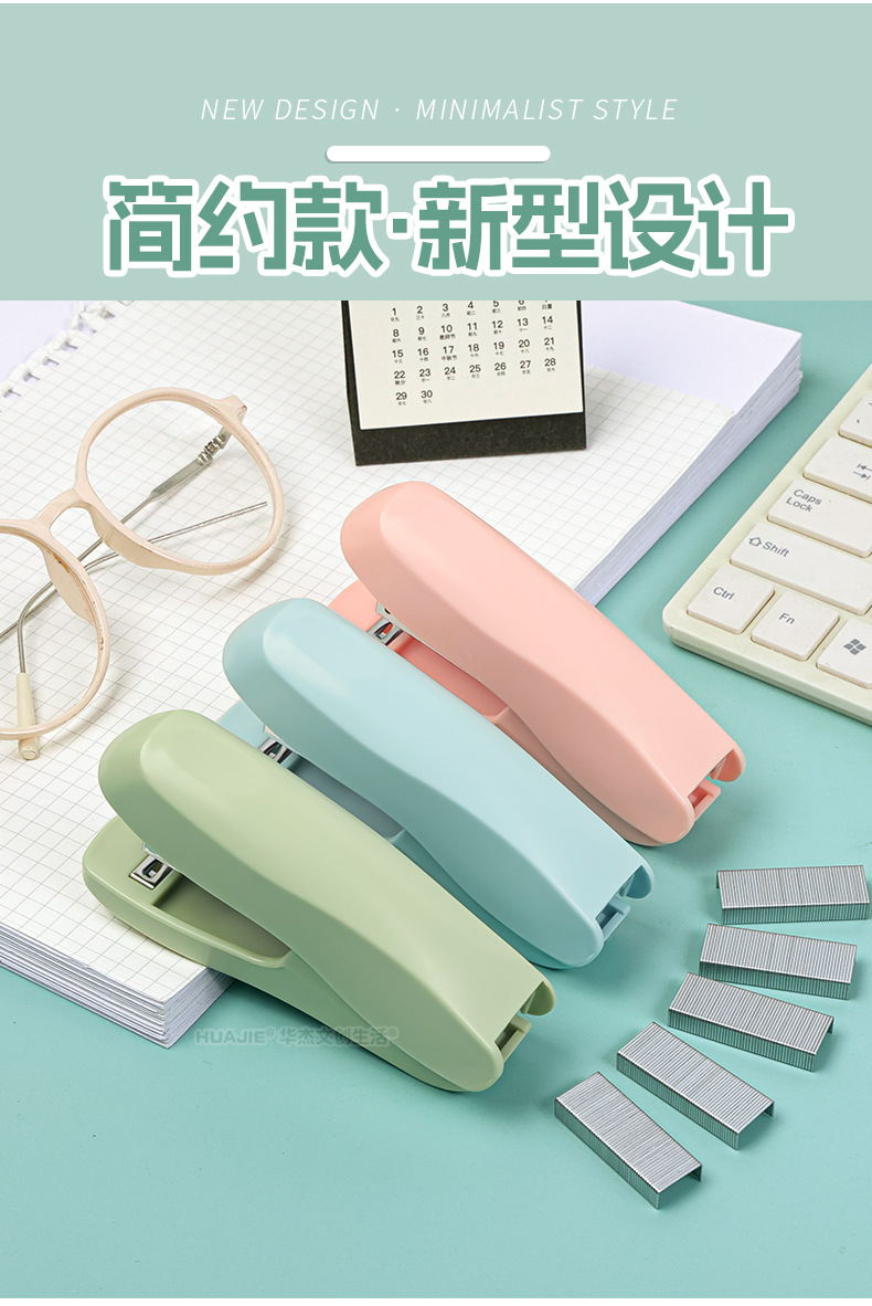 Huajie 공장 도매 Morandi 컬러 노동 절약 스테이플러 작은 휴대용 스테이플러 학생 스테이플러 사무실스토어 가기