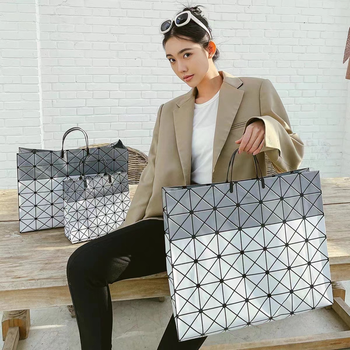 레이저 다이아몬드 격자 토트 백 하이 엔드 방수 의류 쇼핑 가방 밖으로 손 가방 선물 포장 가방 도매