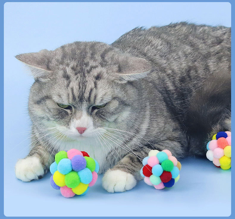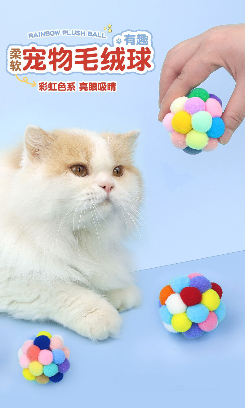고양이 장난감 다채로운 봉제 공 침묵하는 탄성 물린 깨끗한 새끼 고양이 Molar Teeth Tease Ball 애완 동물 용품 6