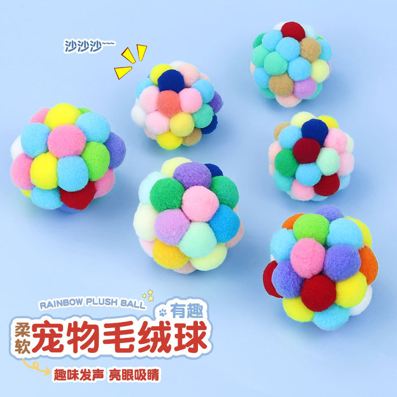 고양이 장난감 다채로운 봉제 공 침묵하는 탄성 물린 깨끗한 새끼 고양이 Molar Teeth Tease Ball 애완 동물 용품 6스토어 가기