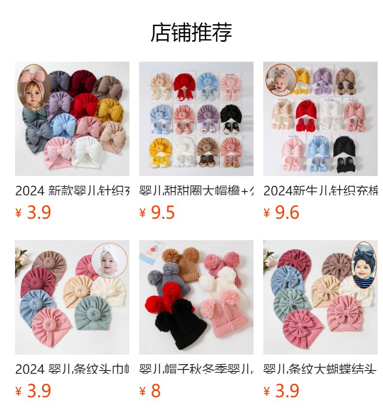 【品名】宝宝纹理蝴蝶结帽【颜色】12色