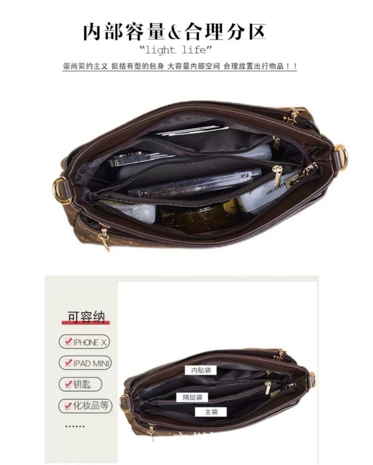 광저우 헝리 여성 핸드백 2024 새로운 대용량 여성 가방 중년 어머니 가방 어깨 크로스 바디 백스토어 가기