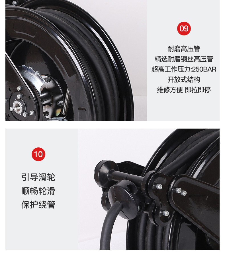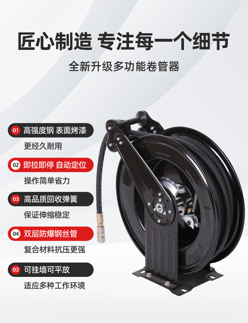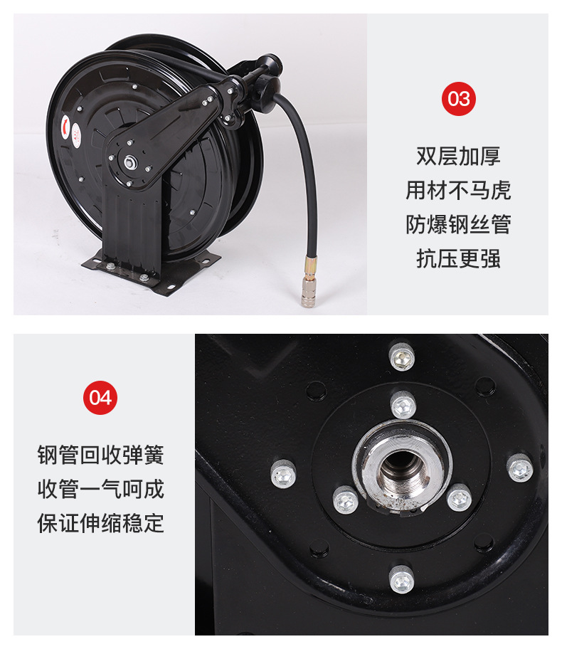 공장 고압 파이프 코일 자동 텔레스코픽 복구 코일 빈 디스크 증기 드럼 청소 기계 바람 총 튜브 폭발 방지 호스