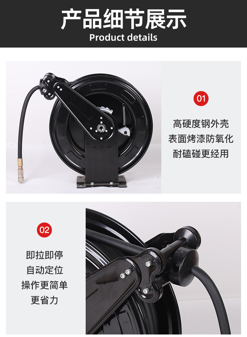 공장 고압 파이프 코일 자동 텔레스코픽 복구 코일 빈 디스크 증기 드럼 청소 기계 바람 총 튜브 폭발 방지 호스스토어 가기