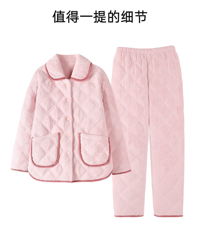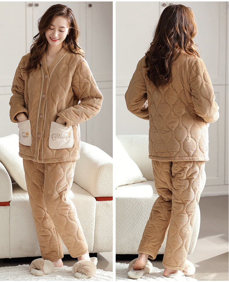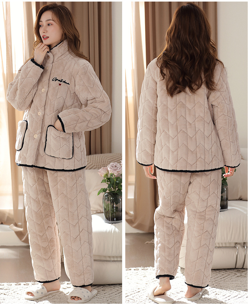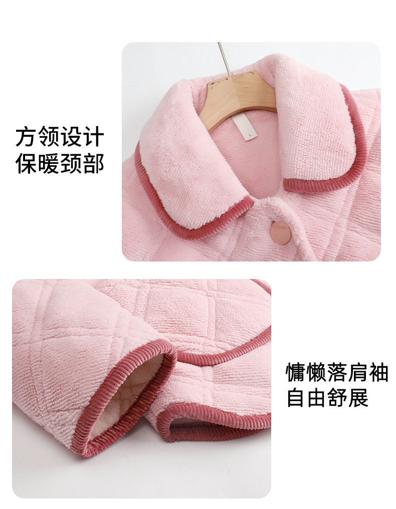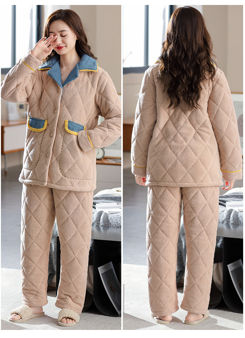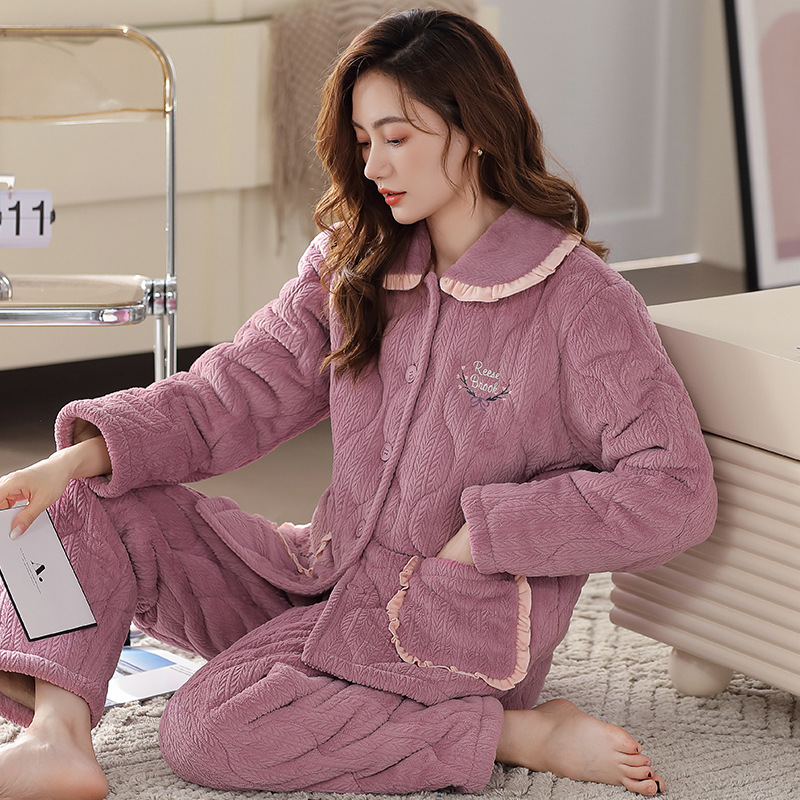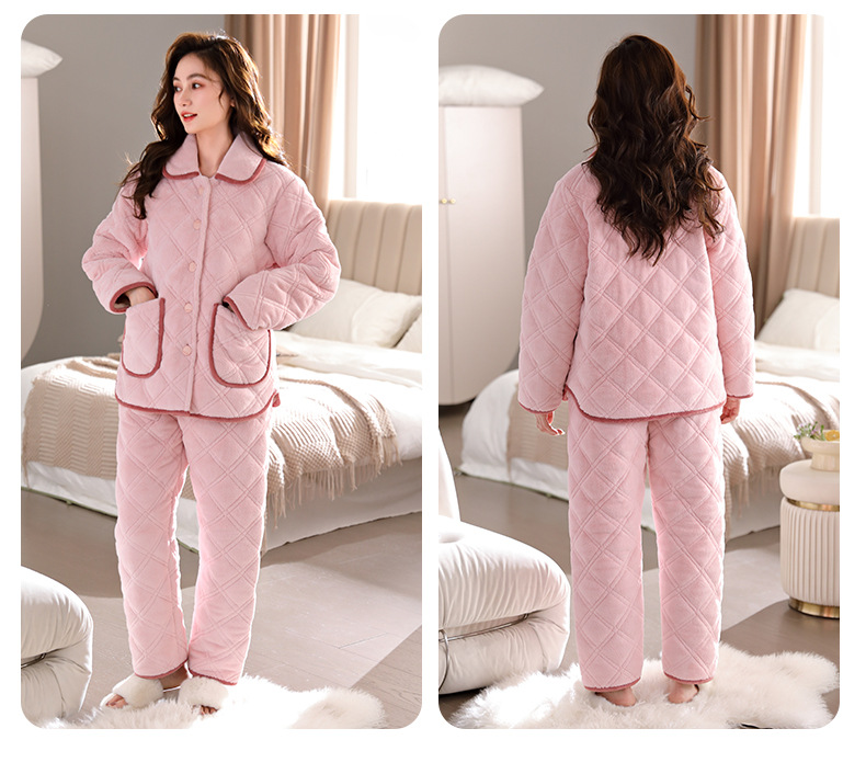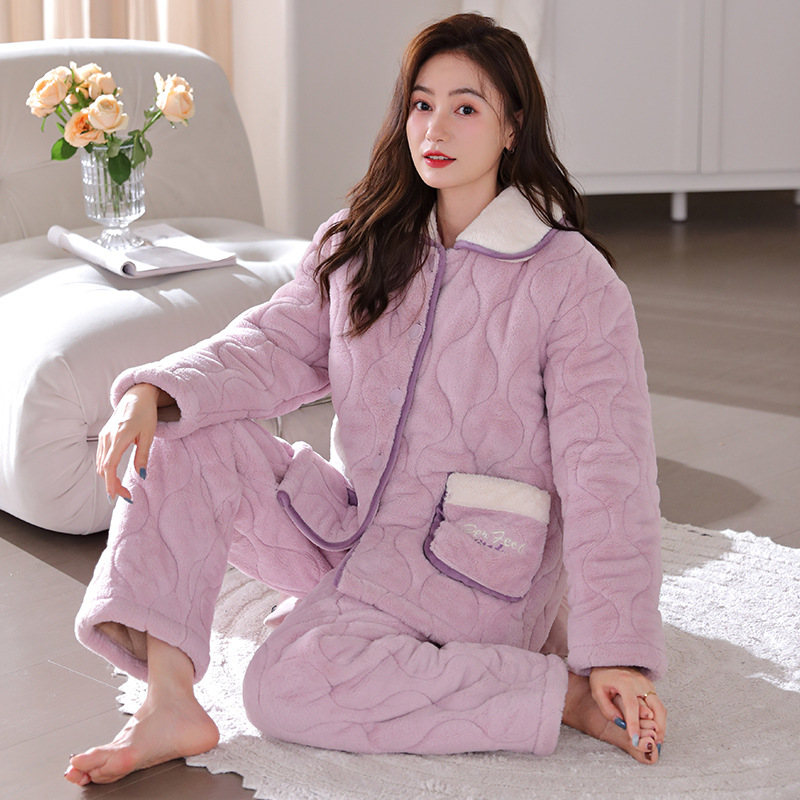 새로운 스타일 잠옷 여성의 겨울 산호 양털 3 층 면화 패딩 재킷 기모 따뜻한 플란넬 홈 옷 세트