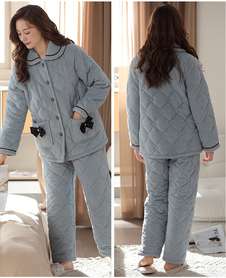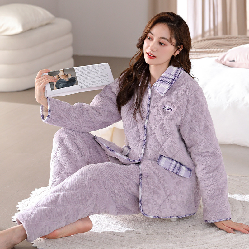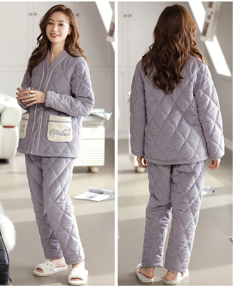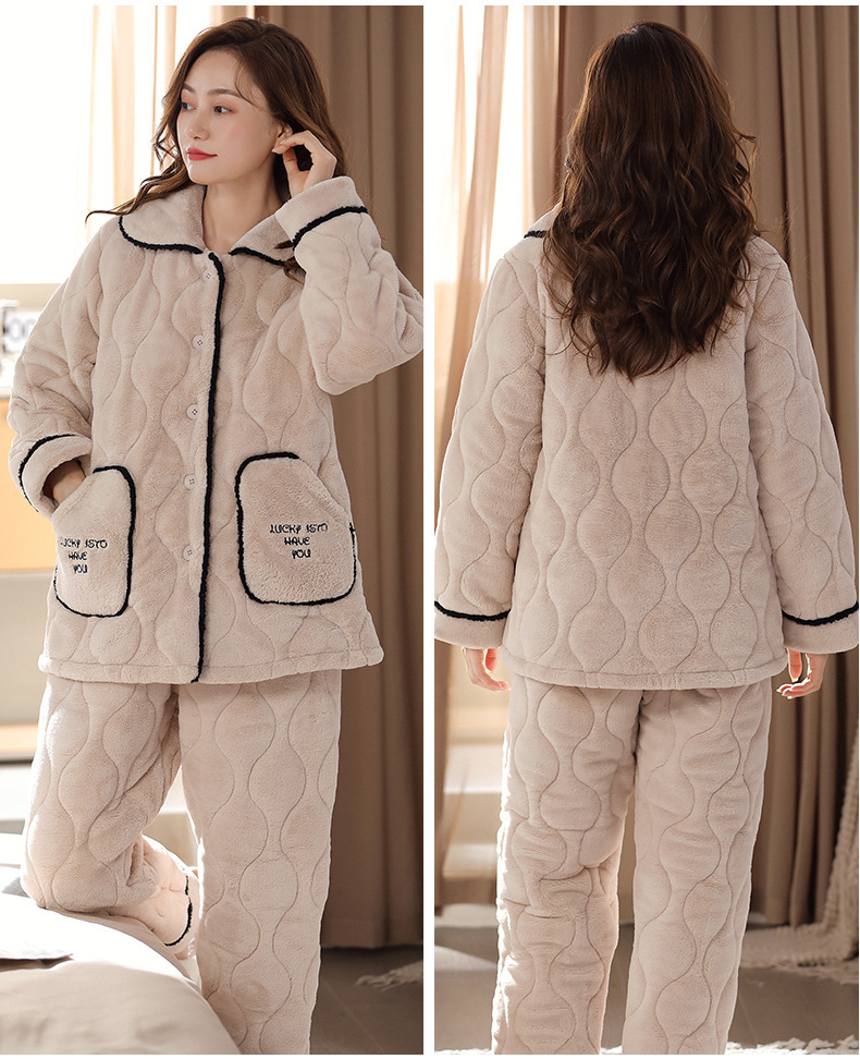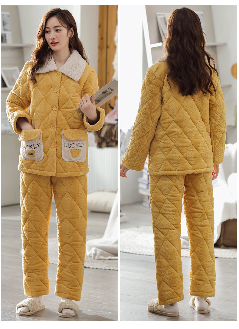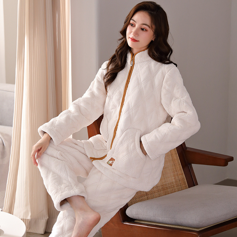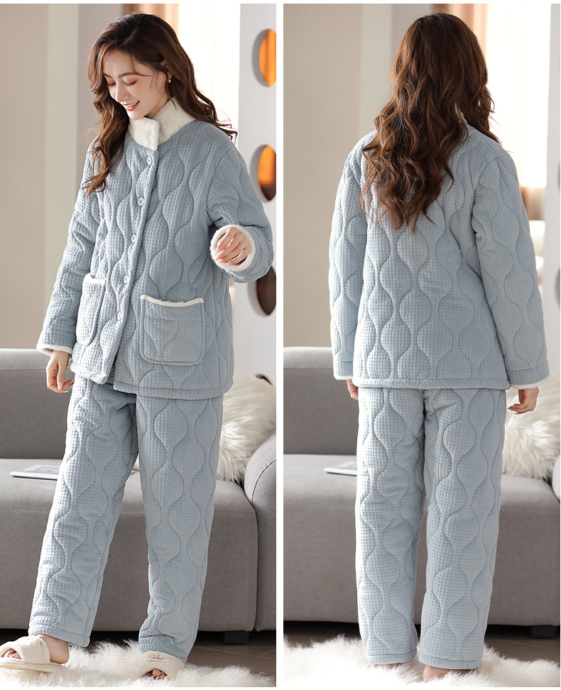 새로운 스타일 잠옷 여성의 겨울 산호 양털 3 층 면화 패딩 재킷 기모 따뜻한 플란넬 홈 옷 세트