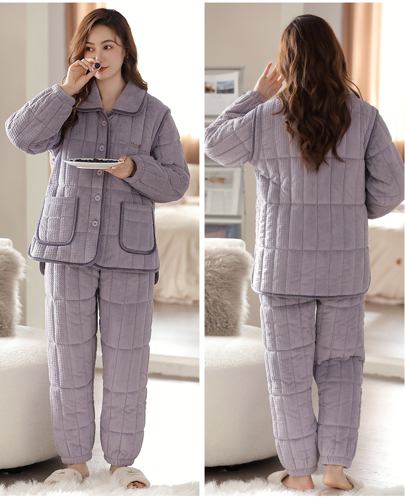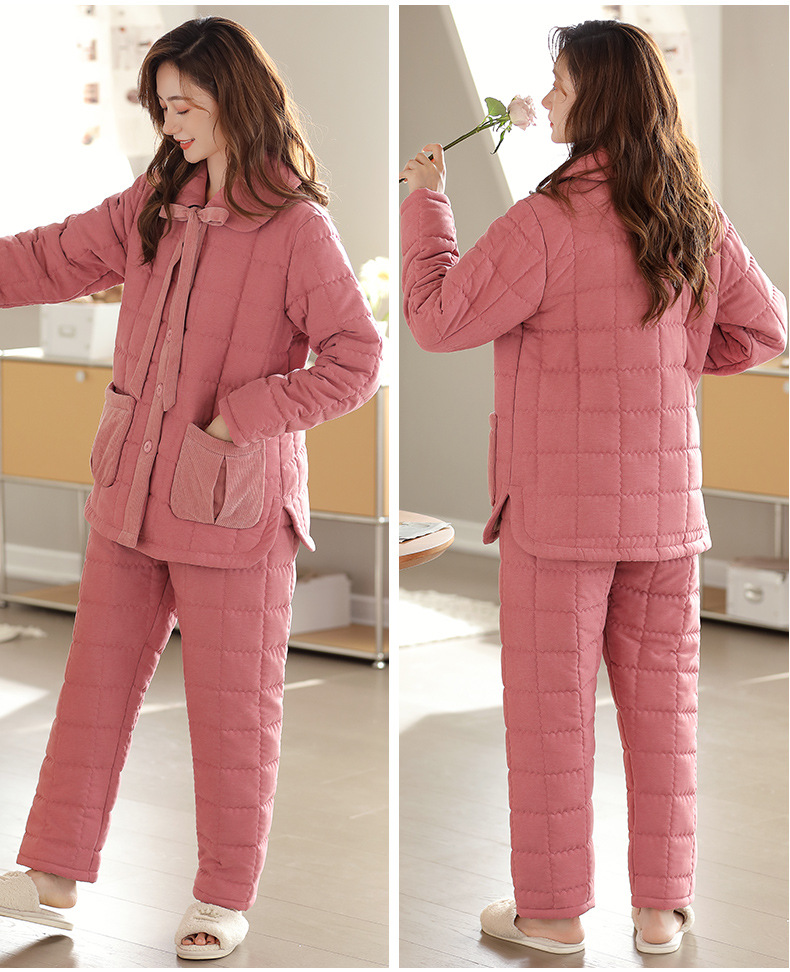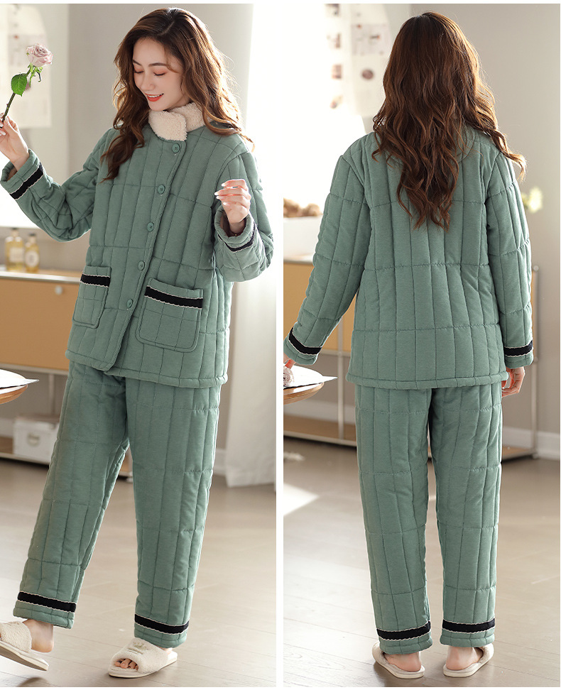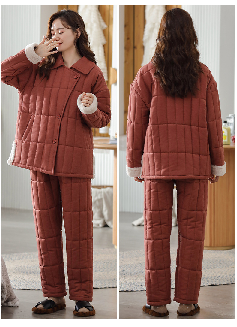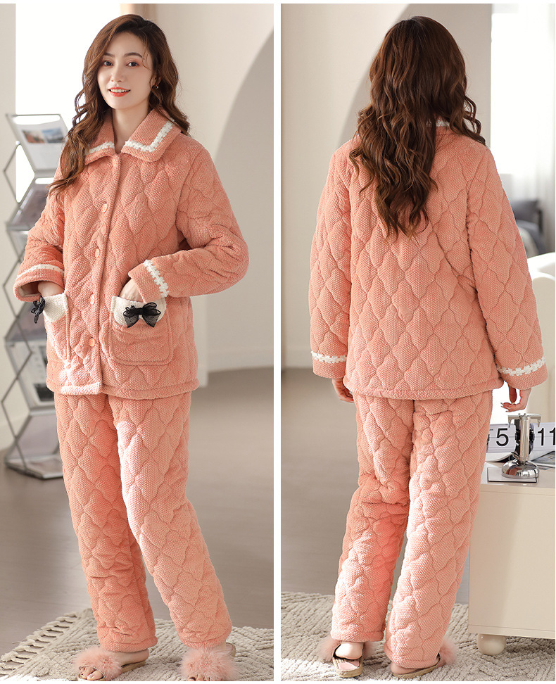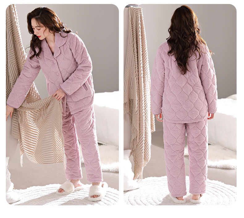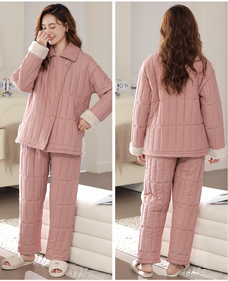 새로운 스타일 잠옷 여성의 겨울 산호 양털 3 층 면화 패딩 재킷 기모 따뜻한 플란넬 홈 옷 세트