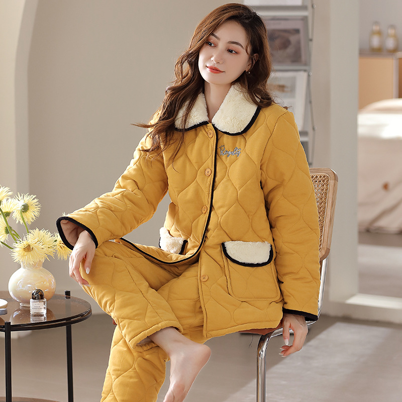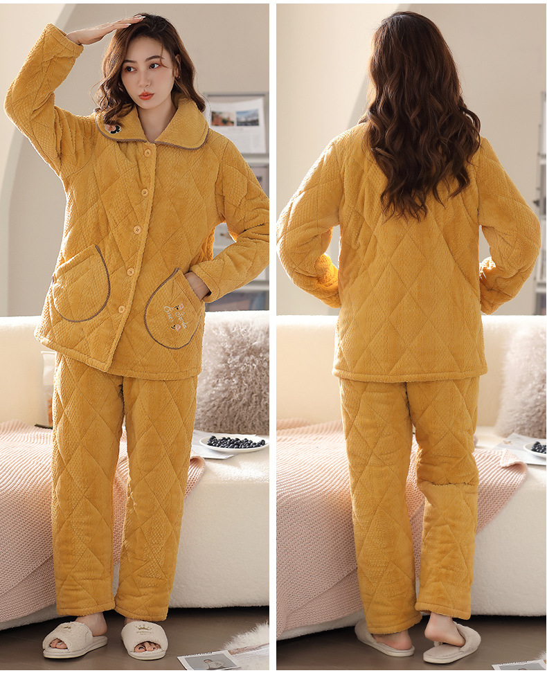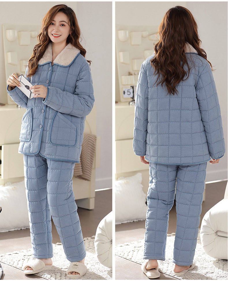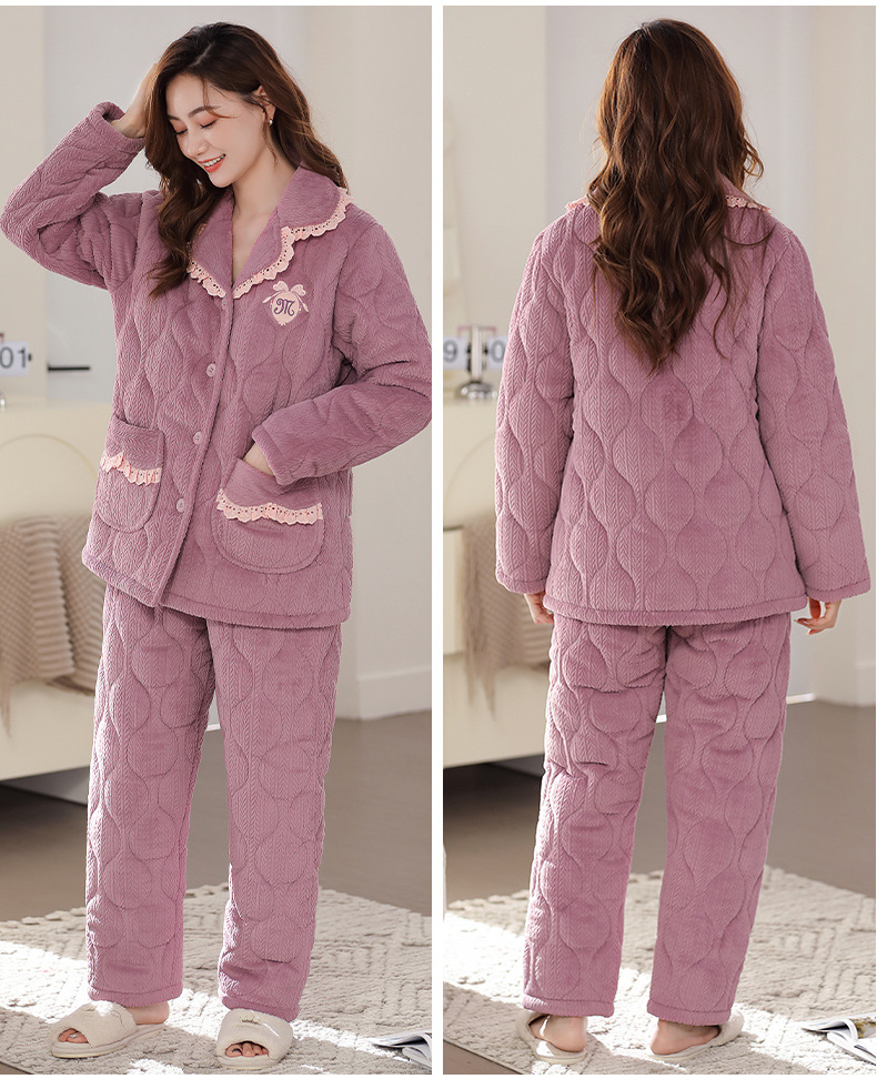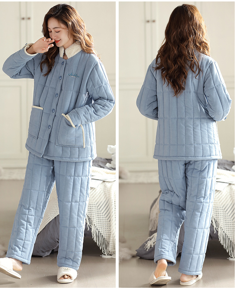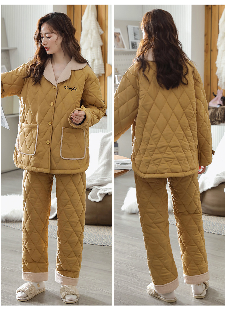새로운 스타일 잠옷 여성의 겨울 산호 양털 3 층 면화 패딩 재킷 기모 따뜻한 플란넬 홈 옷 세트
