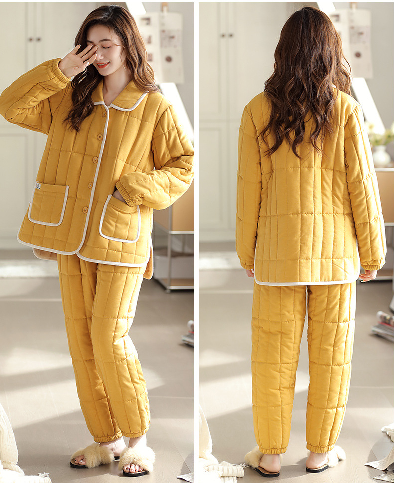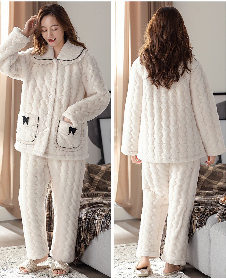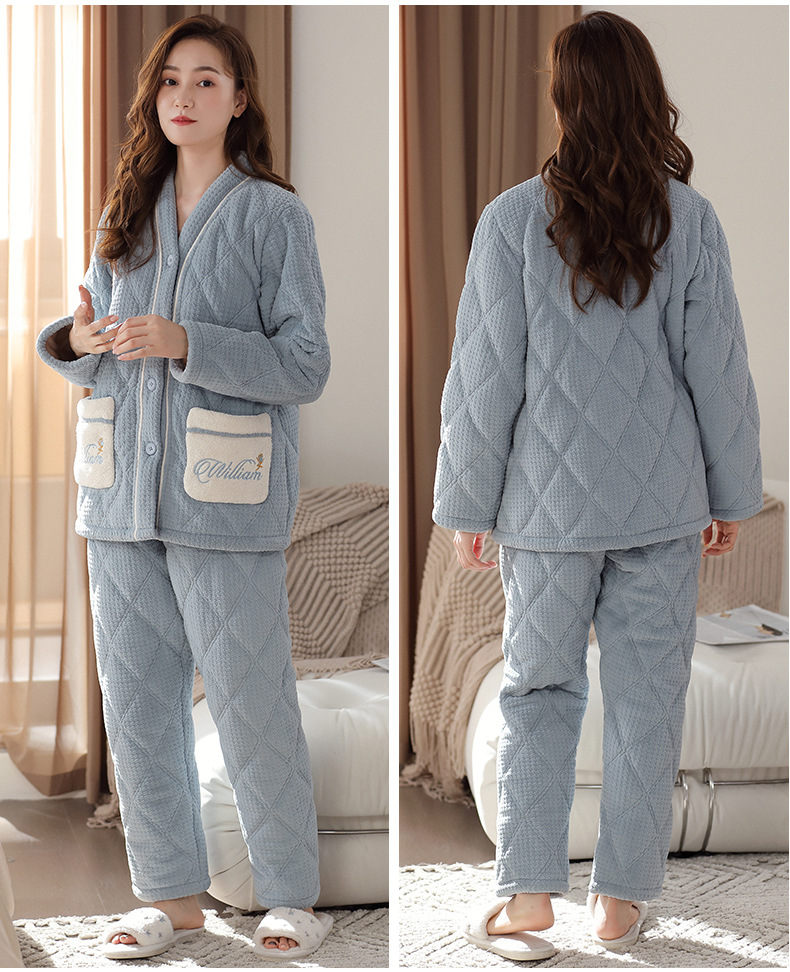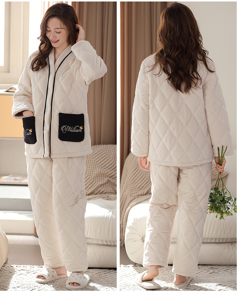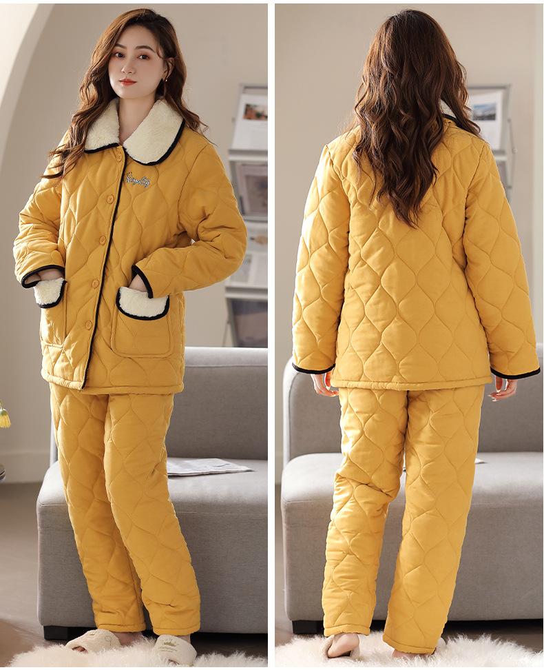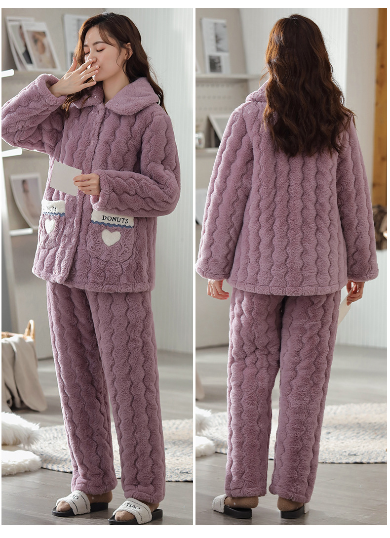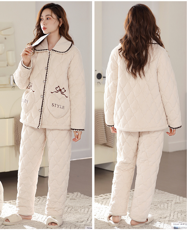 새로운 스타일 잠옷 여성의 겨울 산호 양털 3 층 면화 패딩 재킷 기모 따뜻한 플란넬 홈 옷 세트