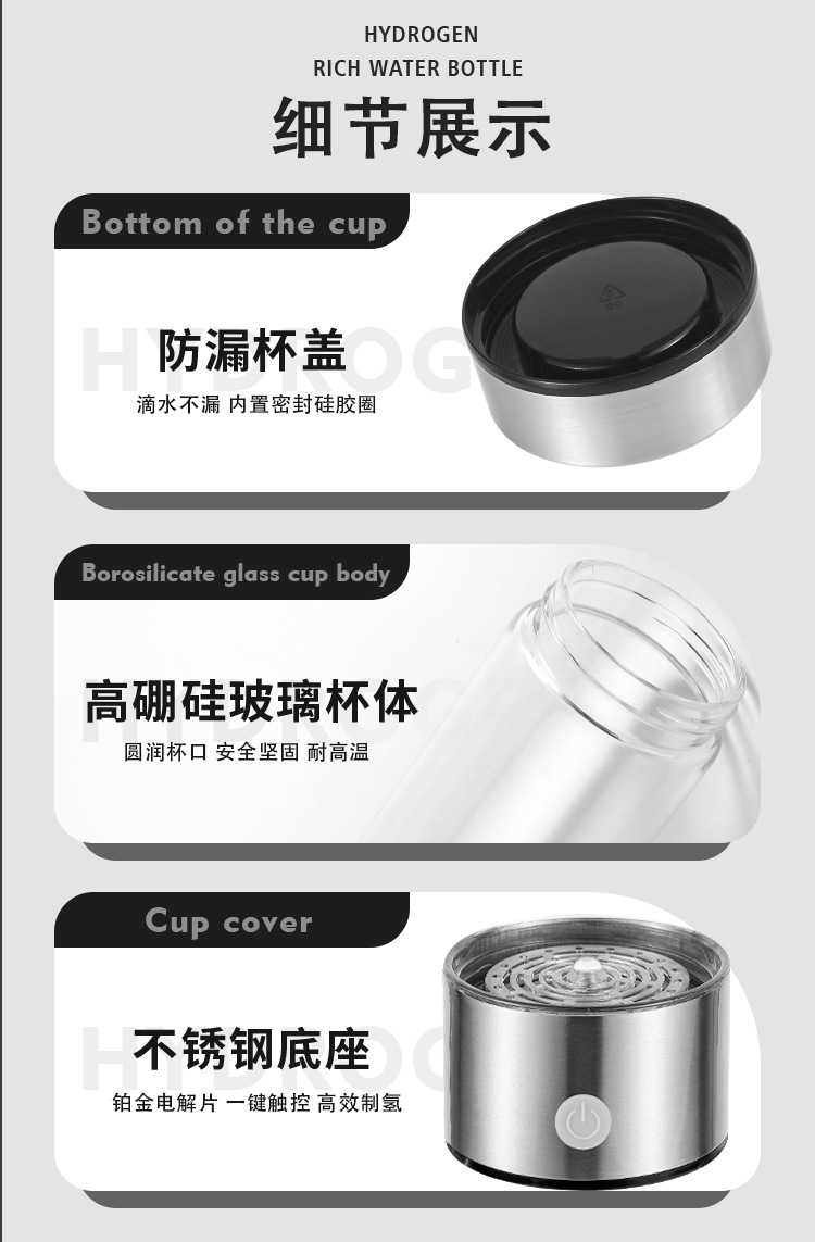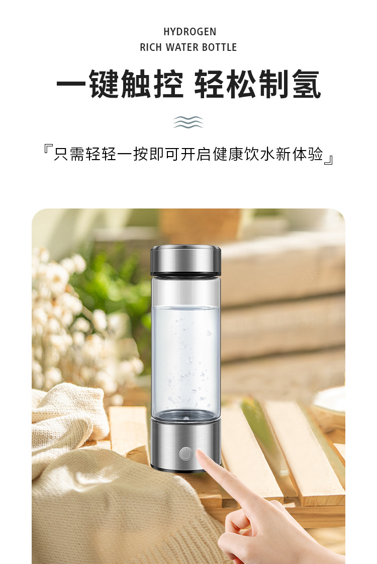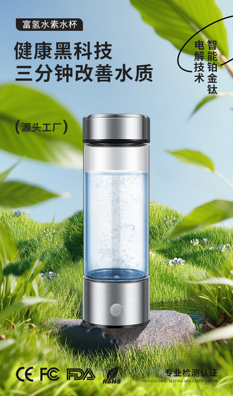 我们是一家专注于富氢水杯研发生产的源头厂家,拥有十余年制造生产经验,自主模具,现货充足,量大价优,品质放心,资质齐全,产品通过CE、ROHS、FDA、FCC等认证。款式多样,有质子膜分离款、吸氢款等,专注高性价比高质量货品,支持OEM贴牌定制,跨境供货,欢迎莅临工厂参观考察。开票需另加税点,详细请咨询客服!