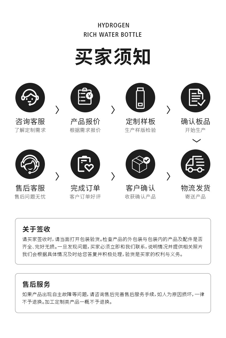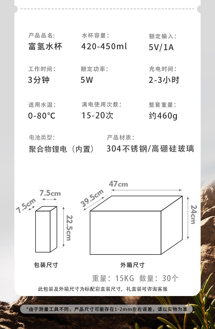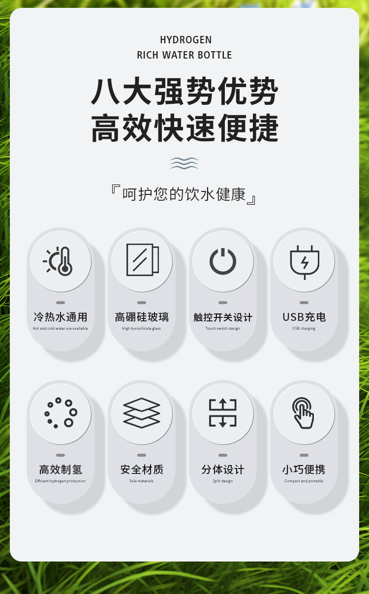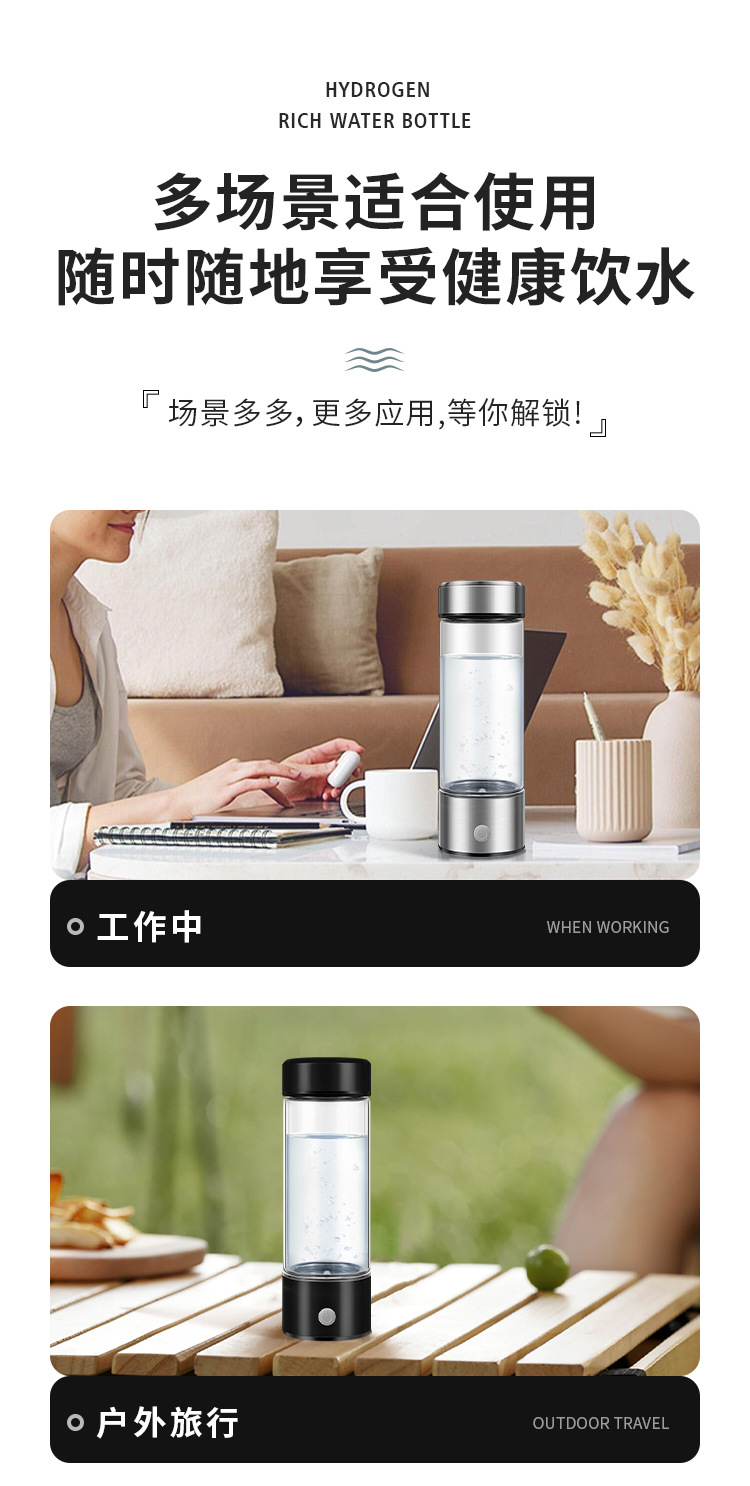 我们是一家专注于富氢水杯研发生产的源头厂家,拥有十余年制造生产经验,自主模具,现货充足,量大价优,品质放心,资质齐全,产品通过CE、ROHS、FDA、FCC等认证。款式多样,有质子膜分离款、吸氢款等,专注高性价比高质量货品,支持OEM贴牌定制,跨境供货,欢迎莅临工厂参观考察。开票需另加税点,详细请咨询客服!