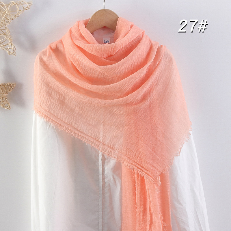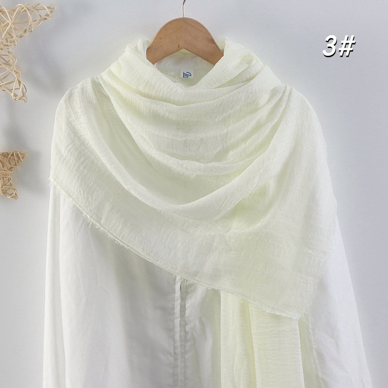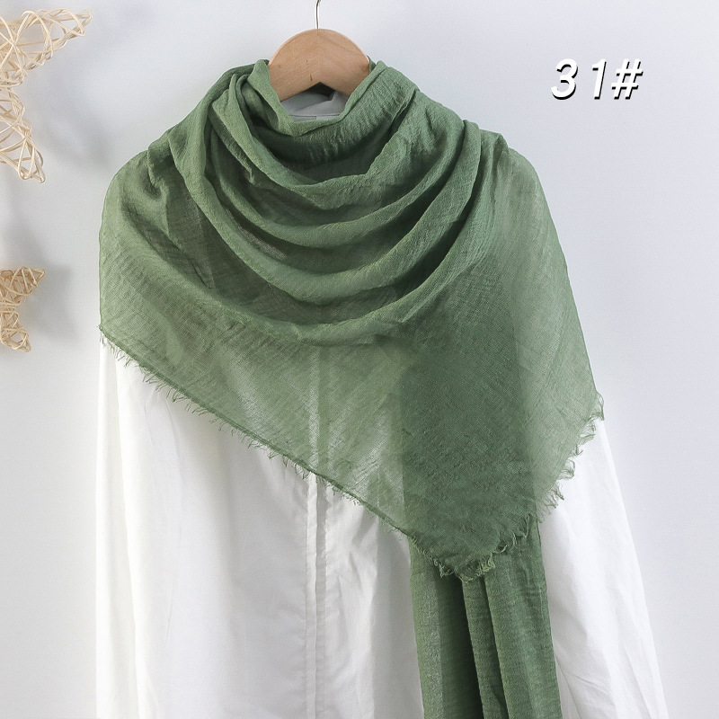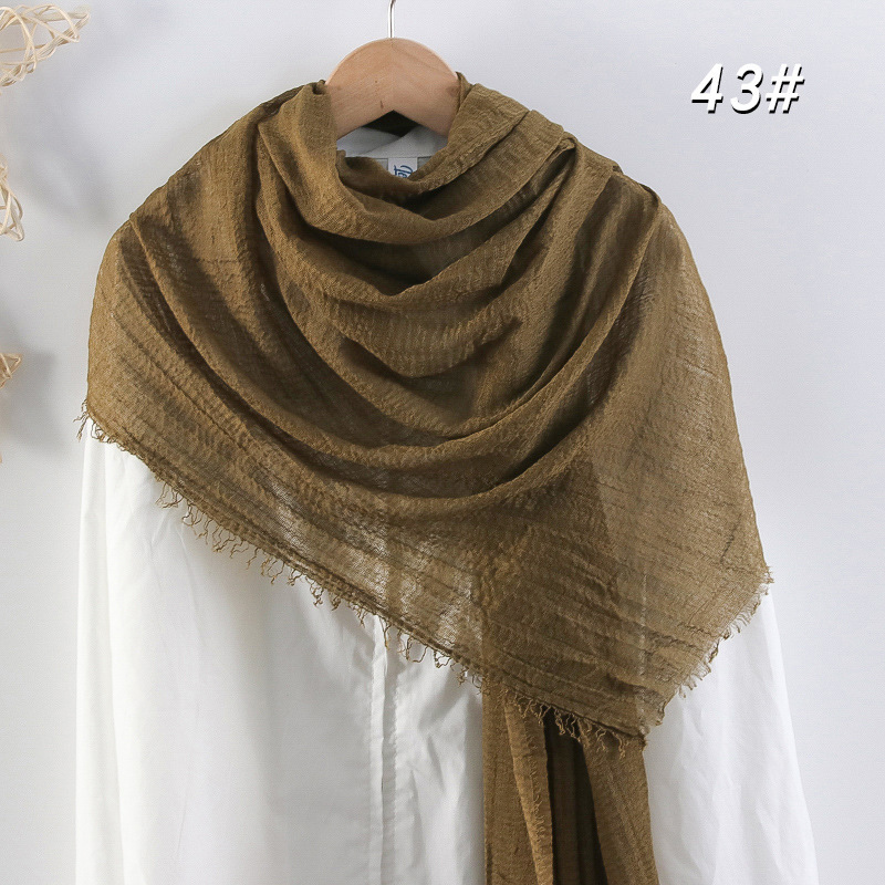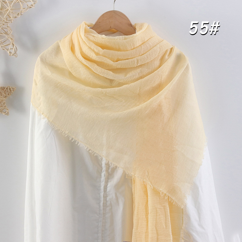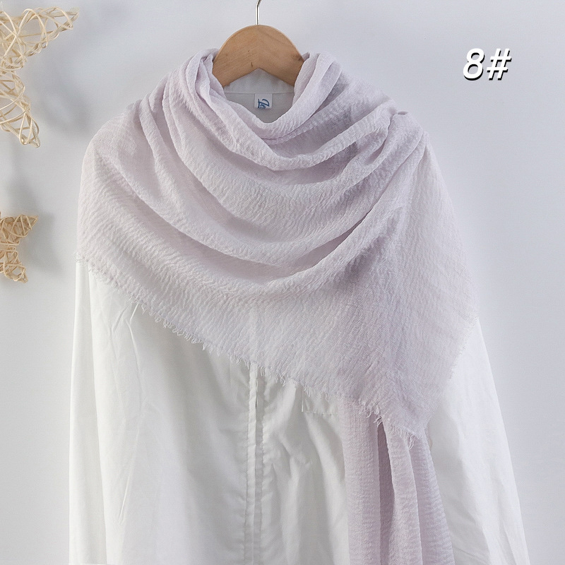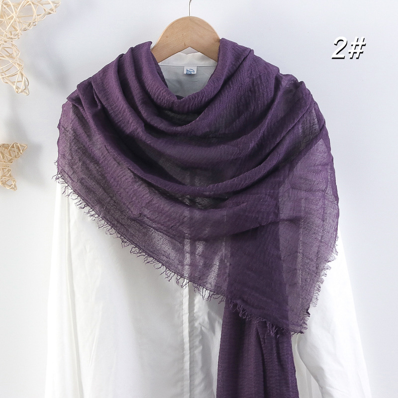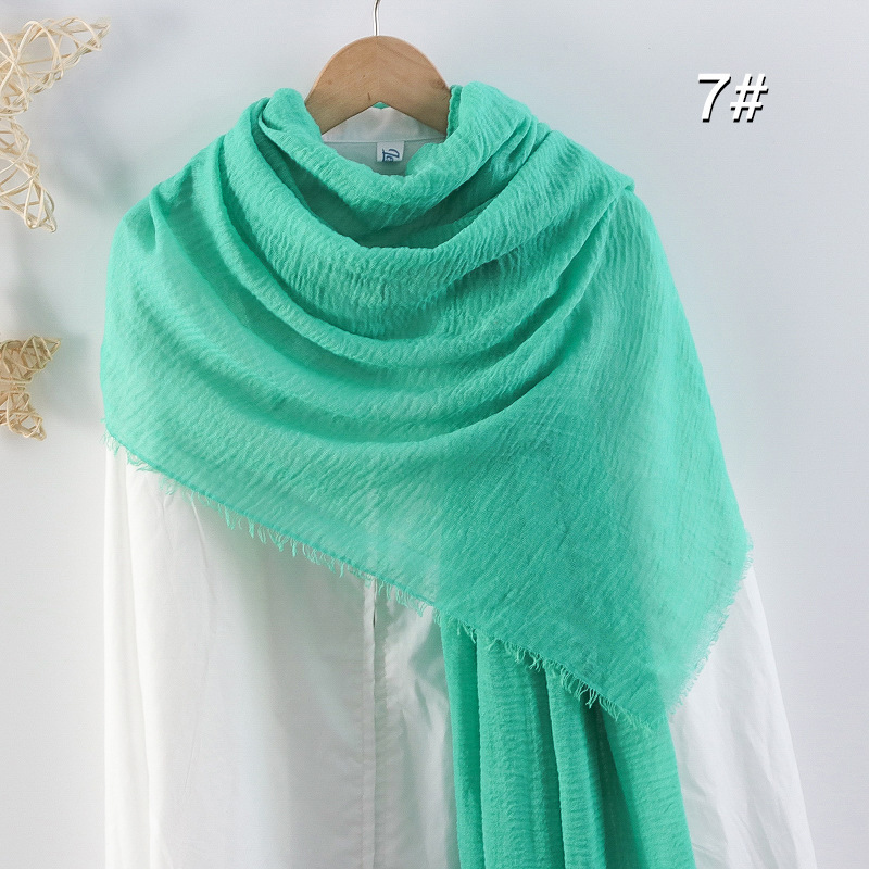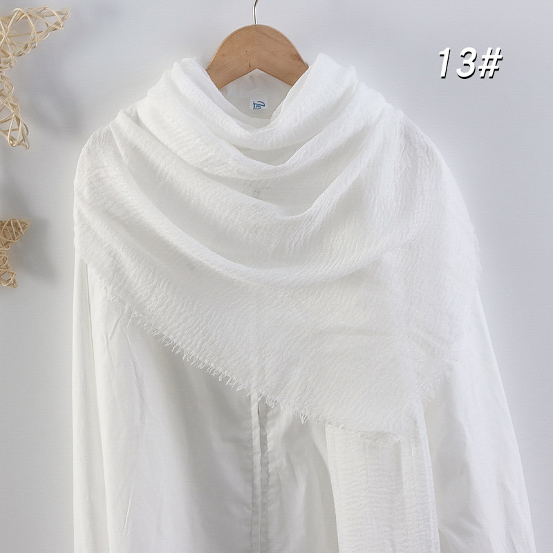 2024 버블 코튼 및 리넨 스카프 대형 실크 스카프 솔리드 컬러 얇은 분할 콧수염 스카프 비치 타월 에어컨 목도리 크로스 테두리스토어 가기