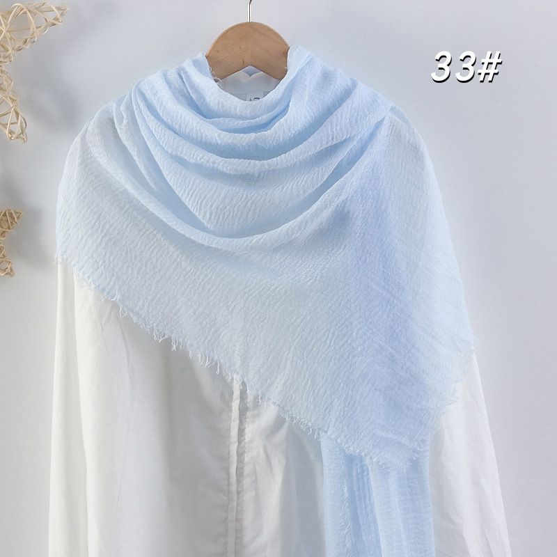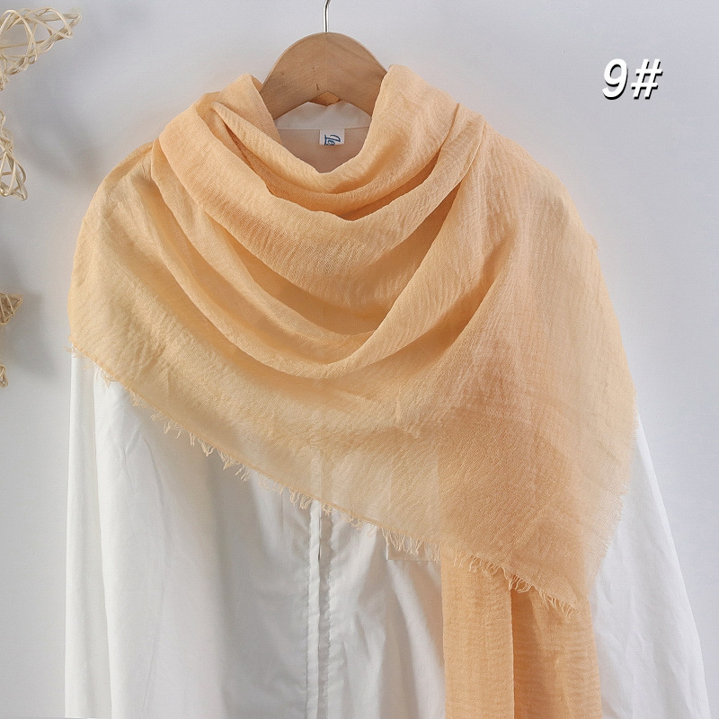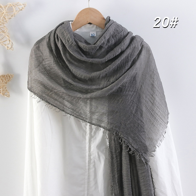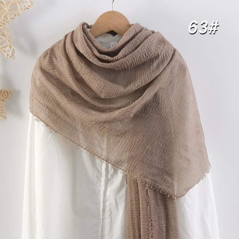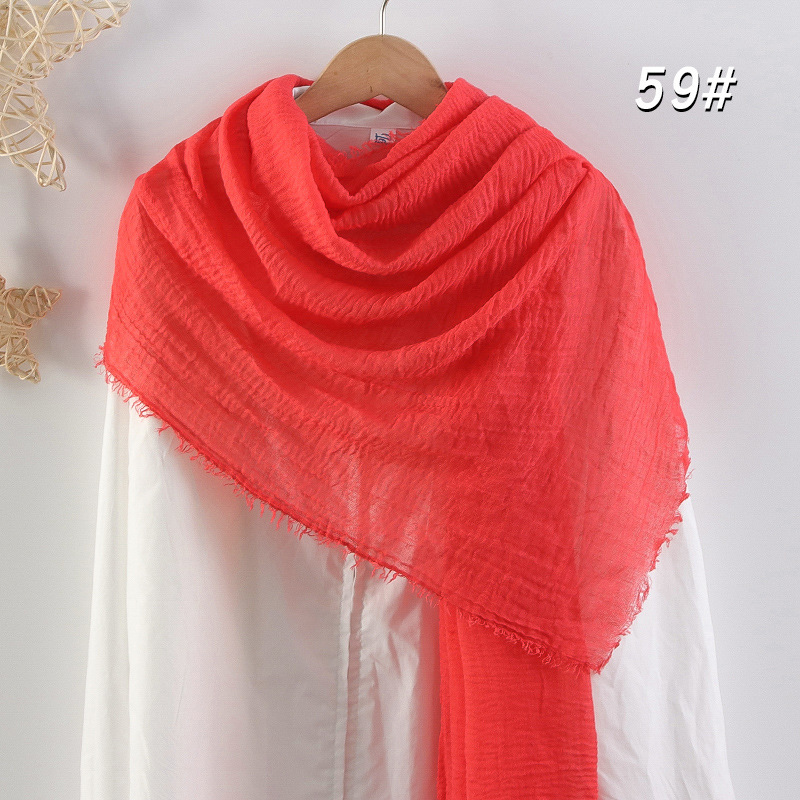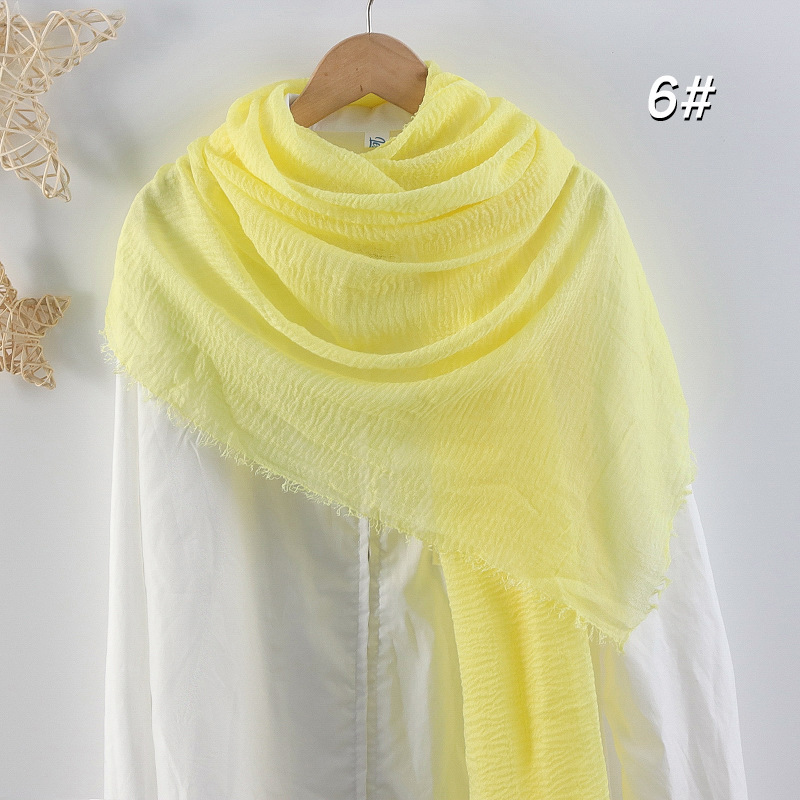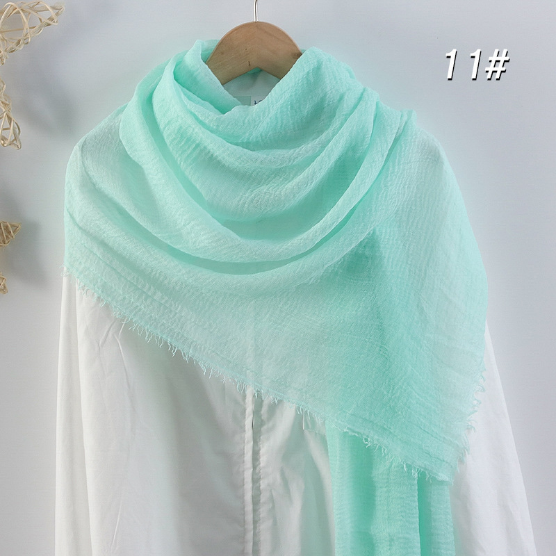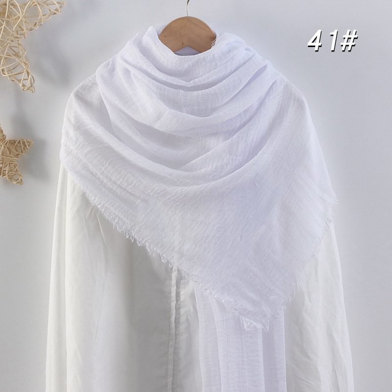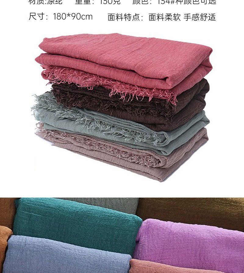 2024 버블 코튼 및 리넨 스카프 대형 실크 스카프 솔리드 컬러 얇은 분할 콧수염 스카프 비치 타월 에어컨 목도리 크로스 테두리스토어 가기