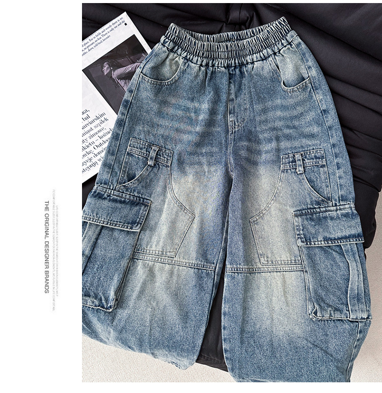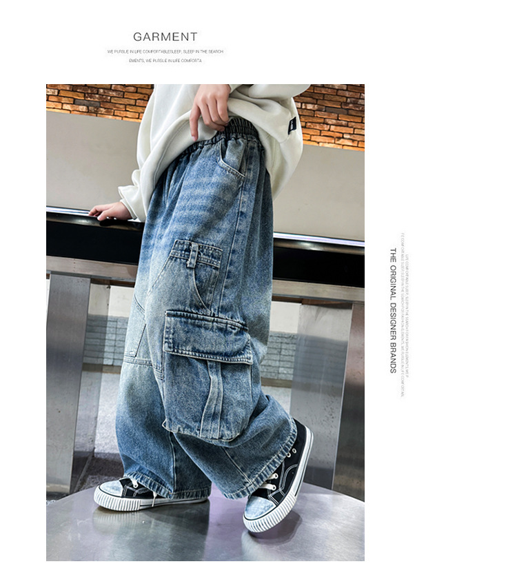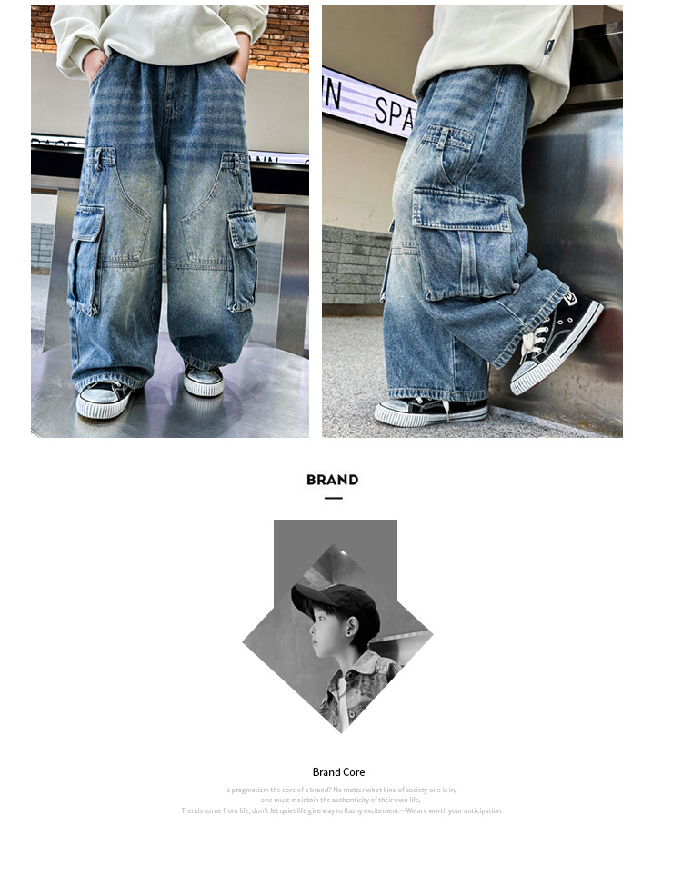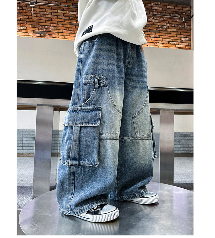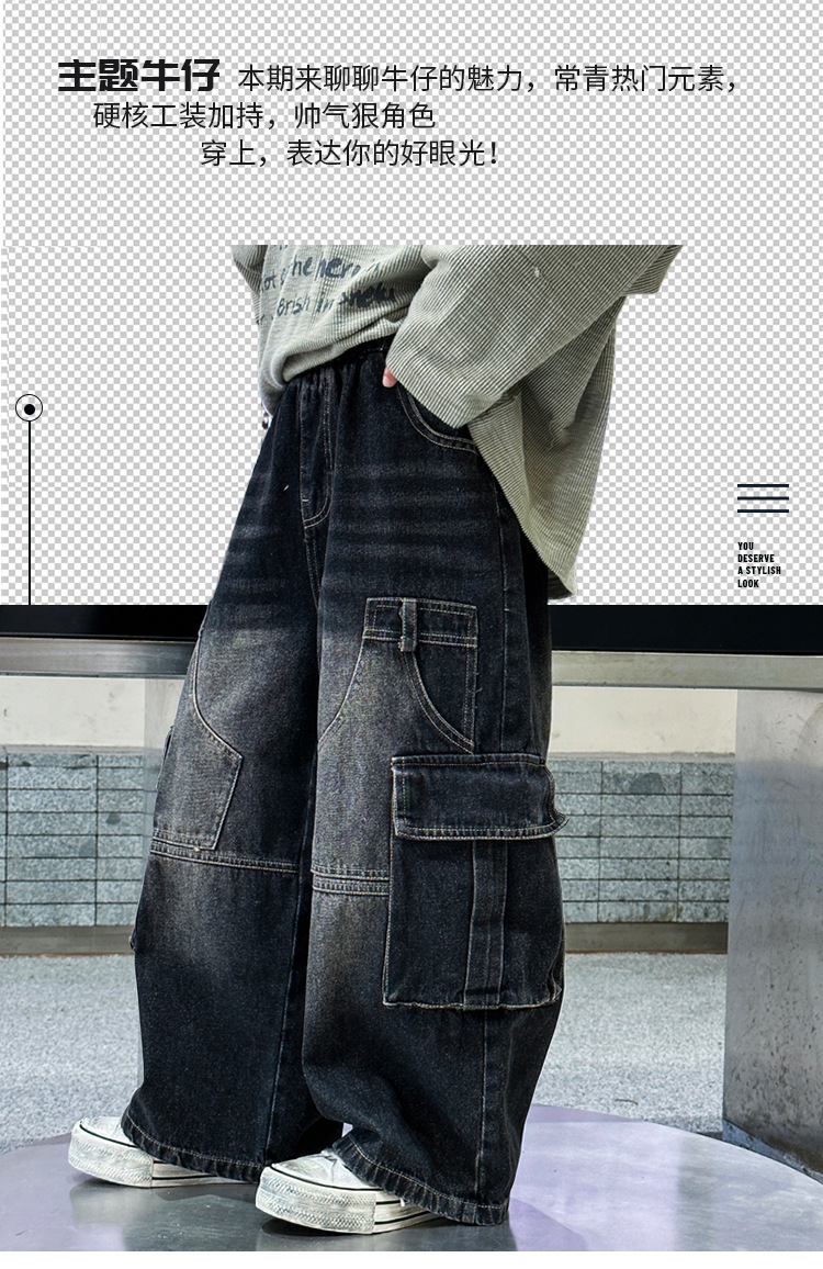 소년 복고풍 청바지 봄, 가을 2025 새로운 스타일 중대형 어린이 스트리트 핸섬 스트레이트 루즈 와이드 팬츠스토어 가기