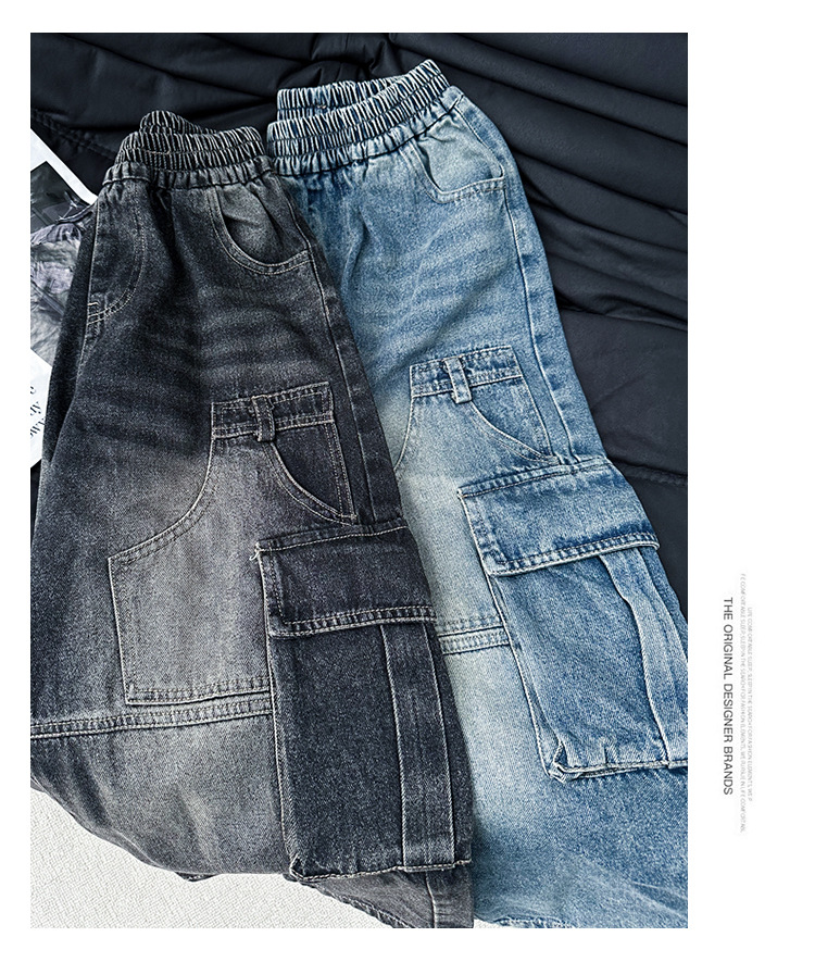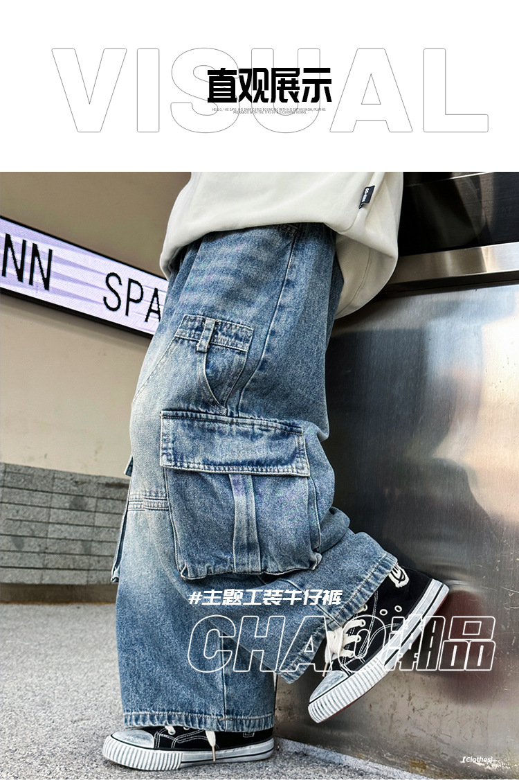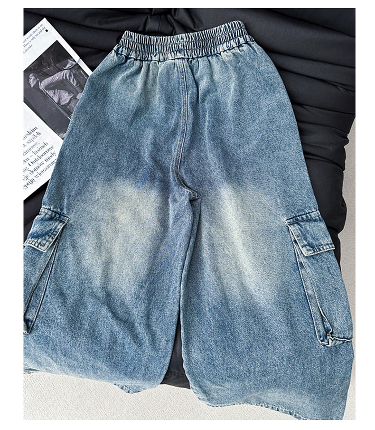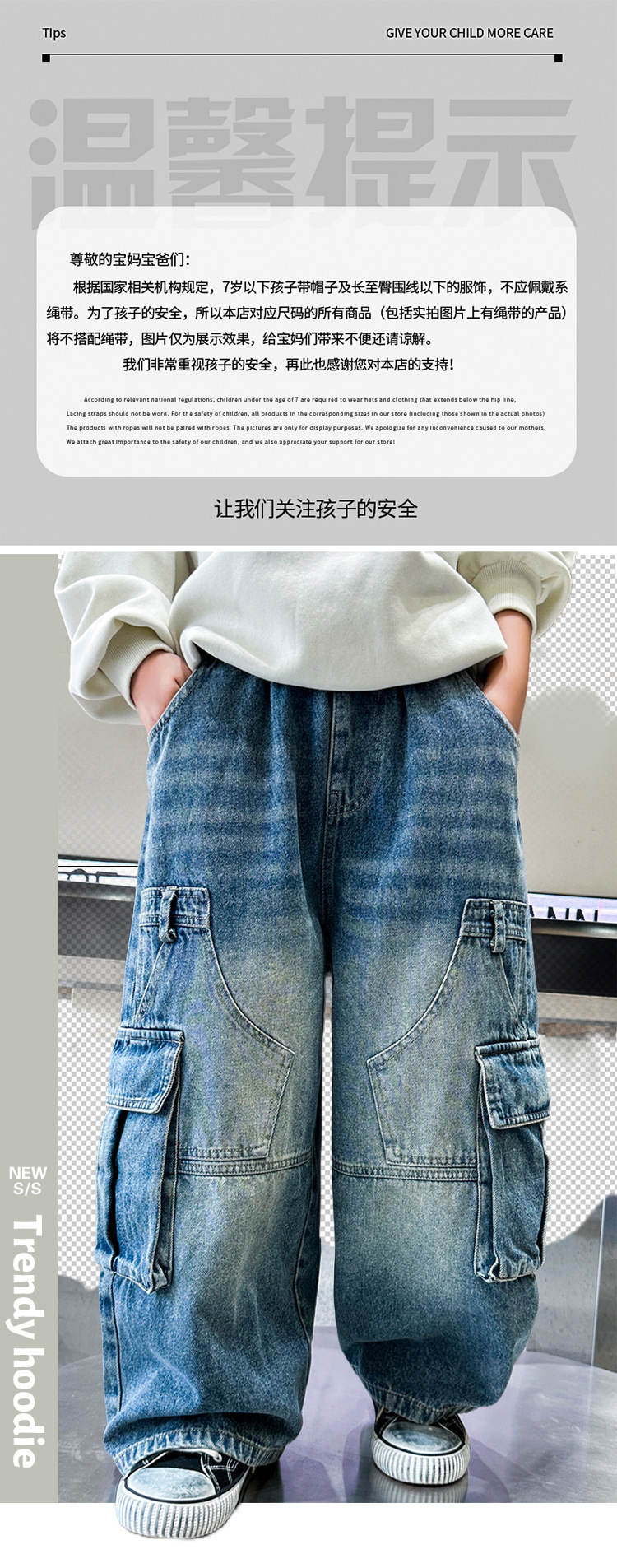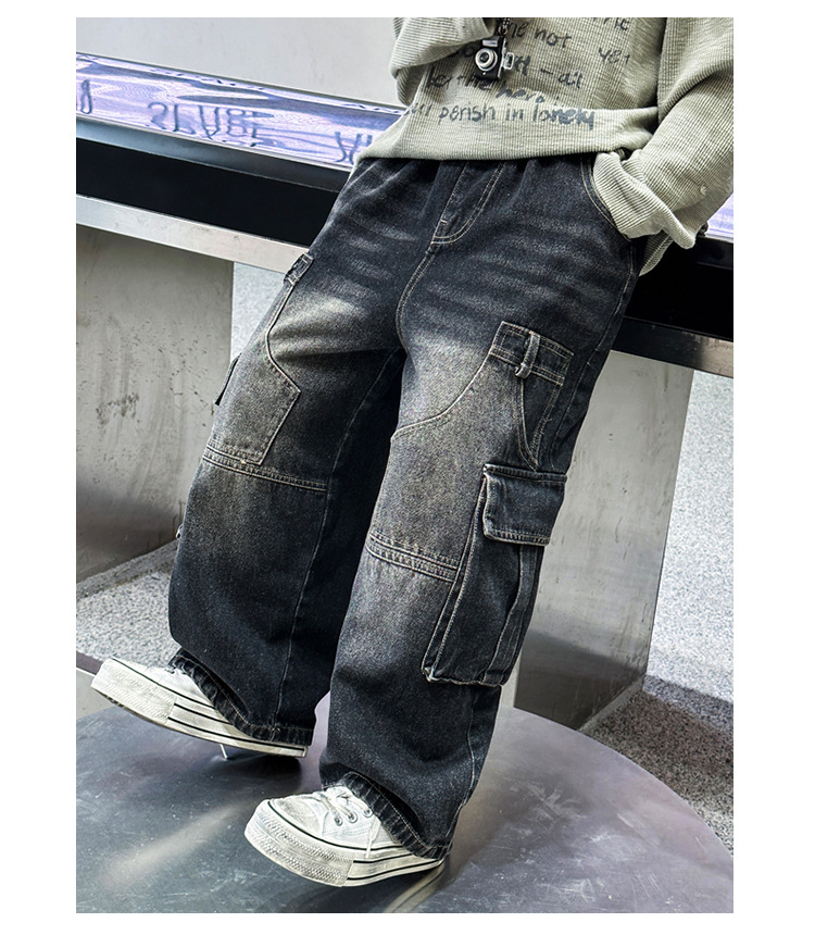 소년 복고풍 청바지 봄, 가을 2025 새로운 스타일 중대형 어린이 스트리트 핸섬 스트레이트 루즈 와이드 팬츠스토어 가기