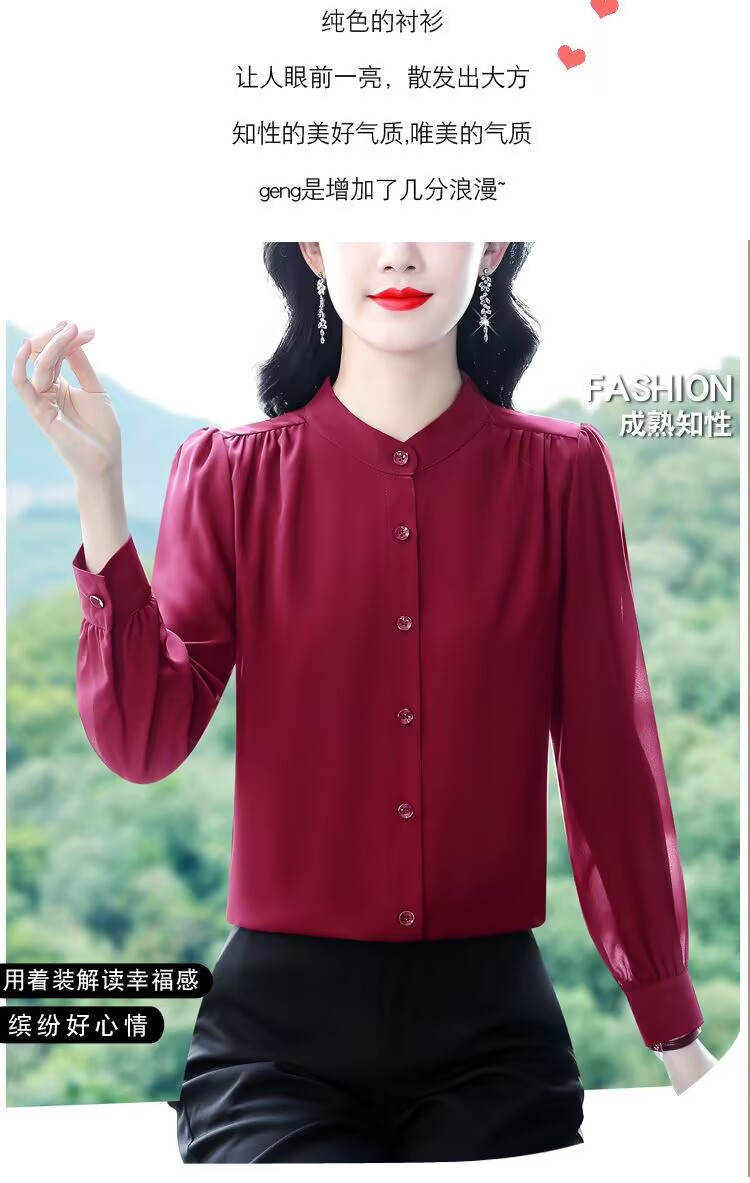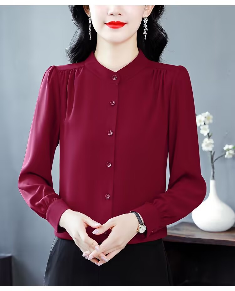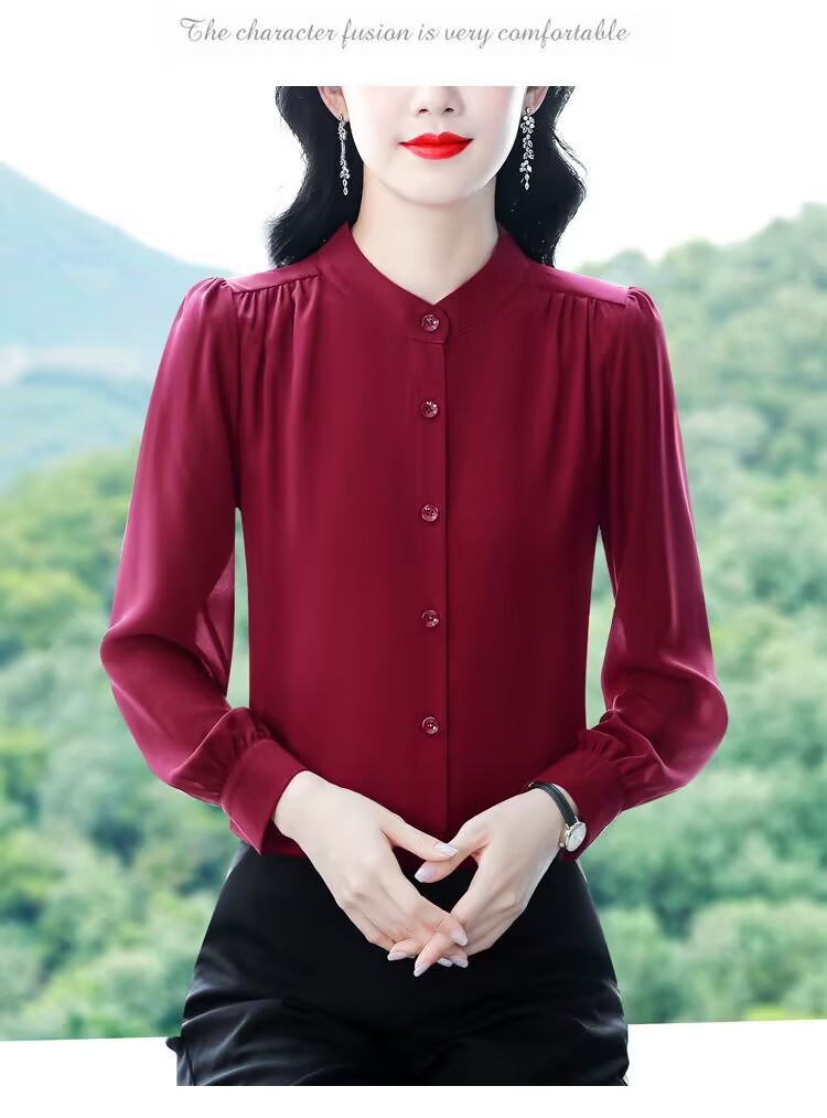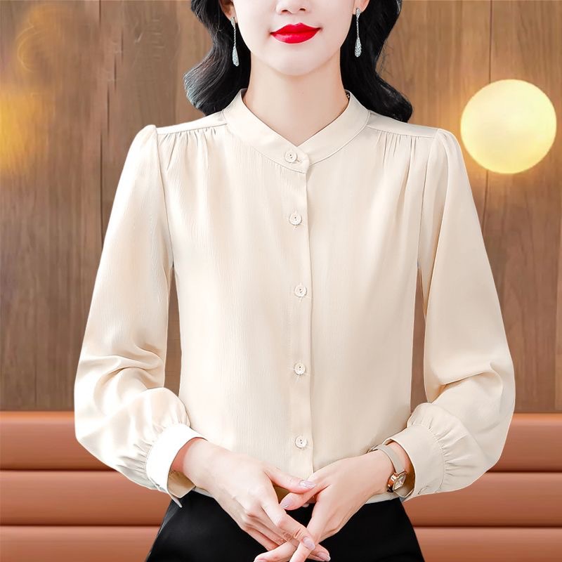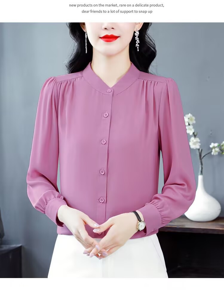 여성용 긴팔 셔츠 2025 봄 가을 신상품 큰 사이즈 블라우스 우아한 랜턴 퍼프 소매 출퇴근룩스토어 가기
