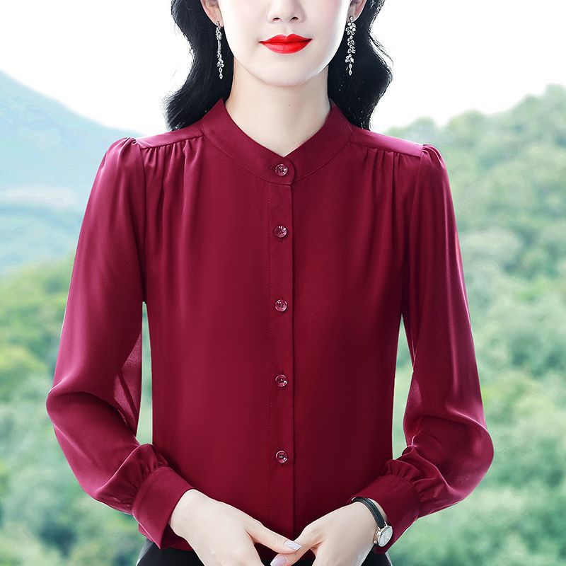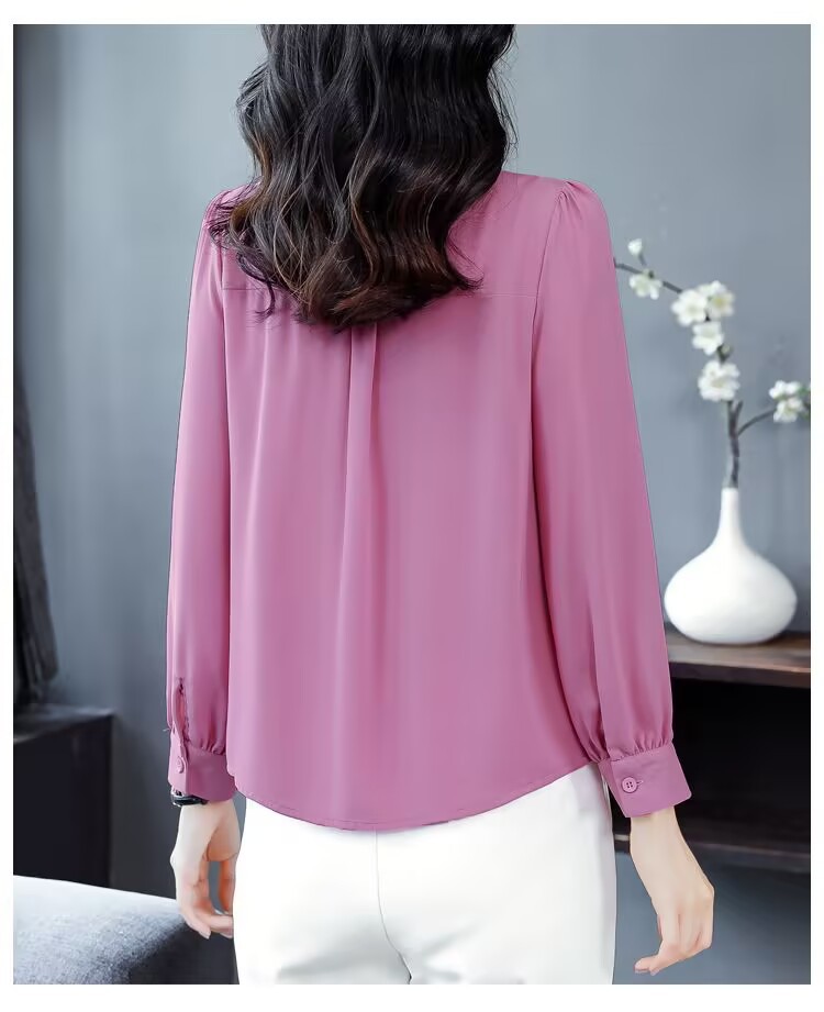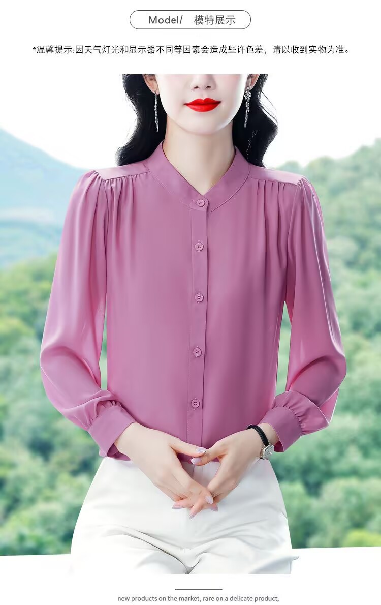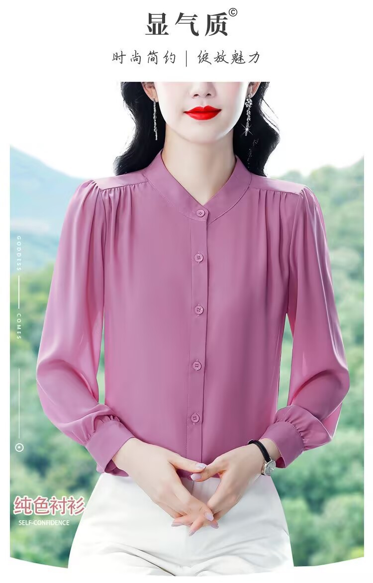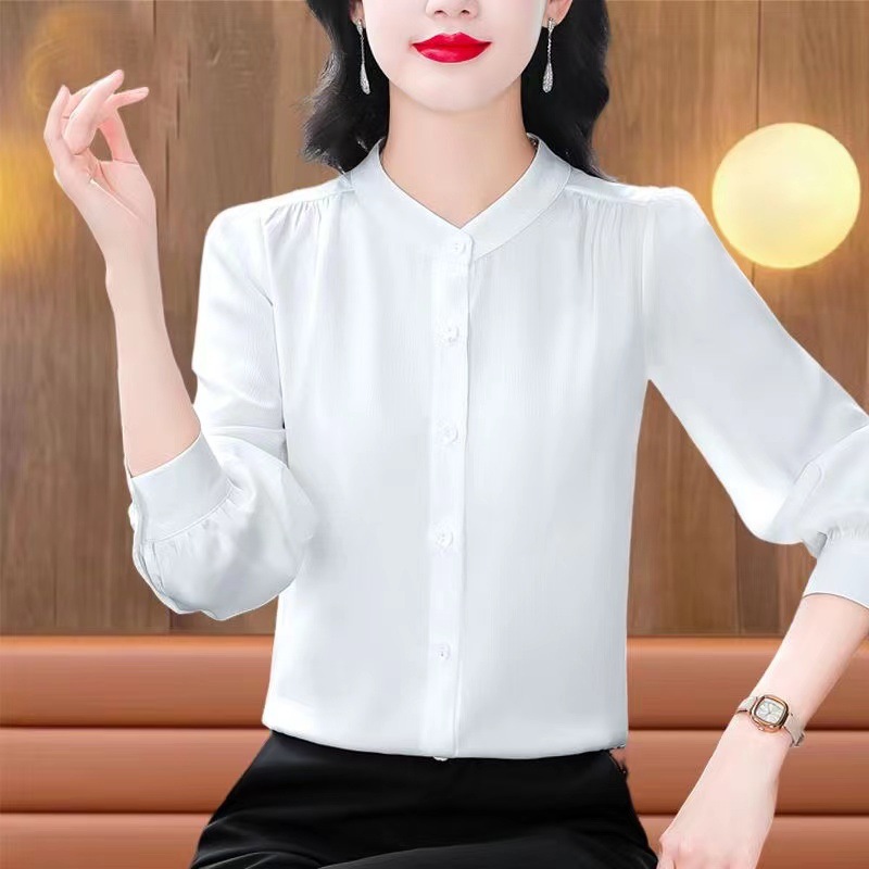 여성용 긴팔 셔츠 2025 봄 가을 신상품 큰 사이즈 블라우스 우아한 랜턴 퍼프 소매 출퇴근룩스토어 가기