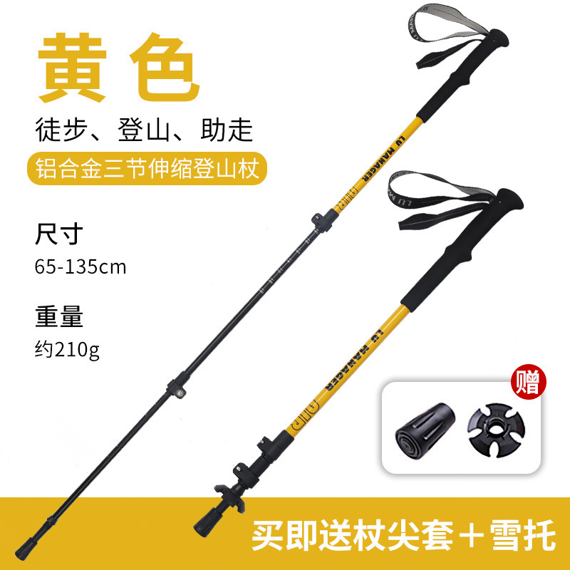 야외 알루미늄 합금 전문 트레킹 폴, 다기능 3 섹션 외부 잠금 텔레스코픽 트레킹 폴, 야외 트레킹 폴