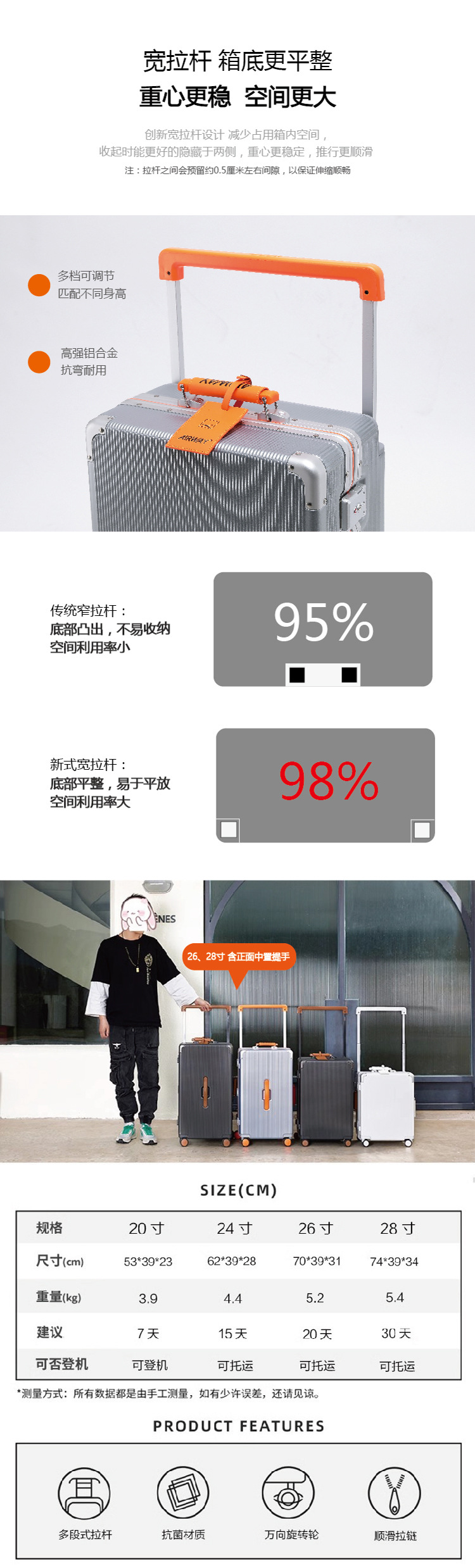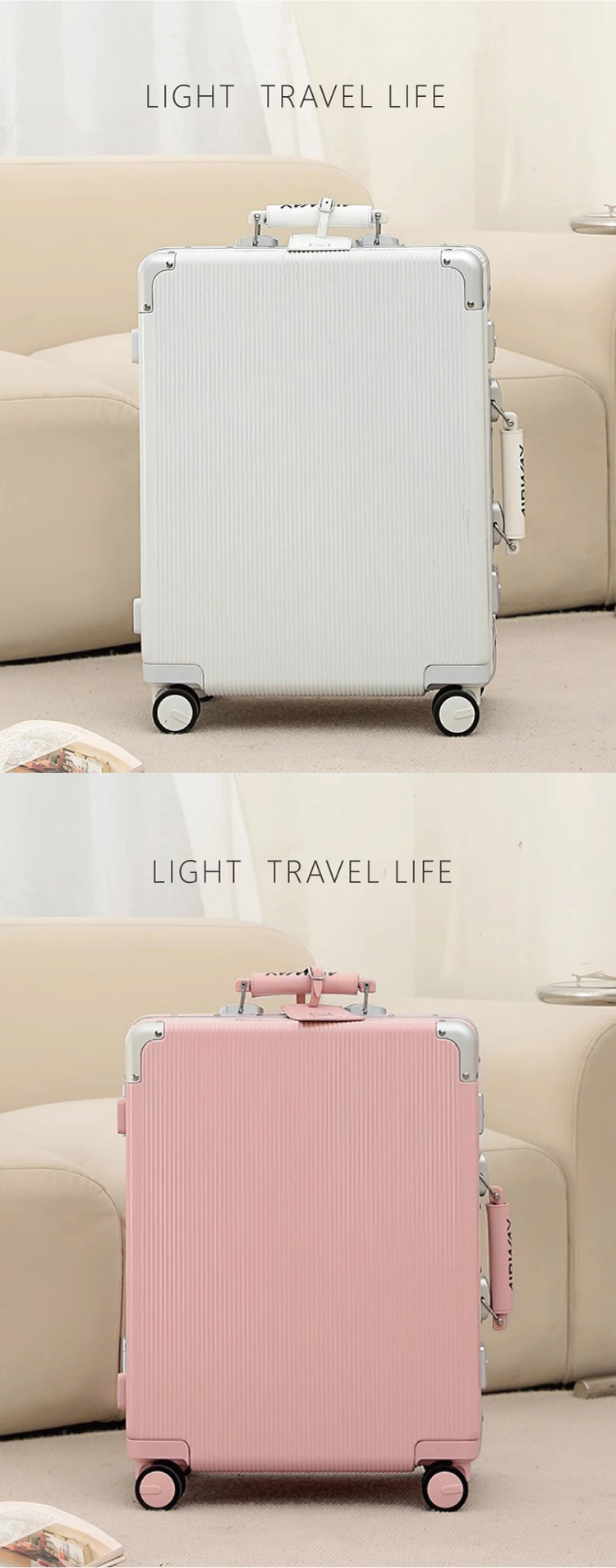 여성용 에어웨이 여행가방 트롤리 케이스 20inch 학생용 알루미늄 프레임 여행가방 범용 휠 대용량 탑승가방 순수 PC스토어 가기