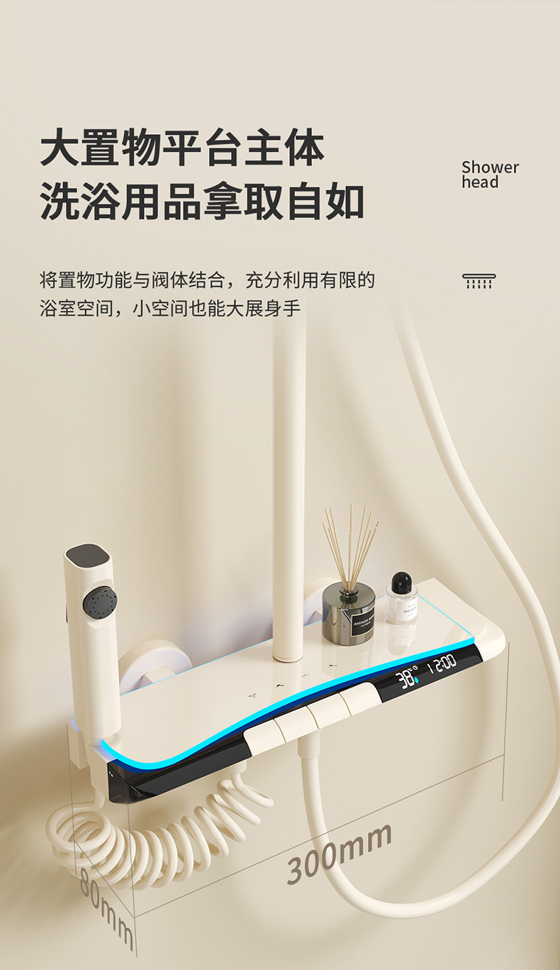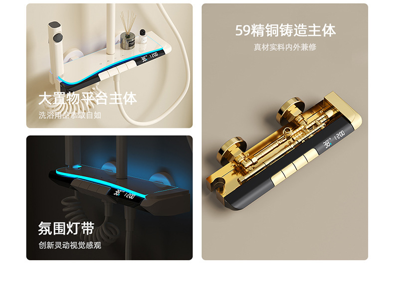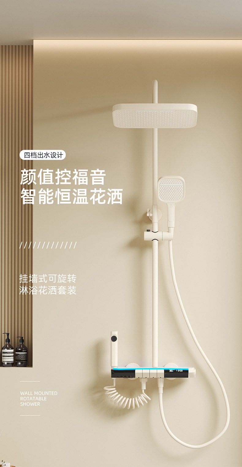 크림 스타일 화이트 일정한 온도 샤워 세트 욕실 가정용 샤워 헤드 피아노 키 비 샤워 바디스토어 가기