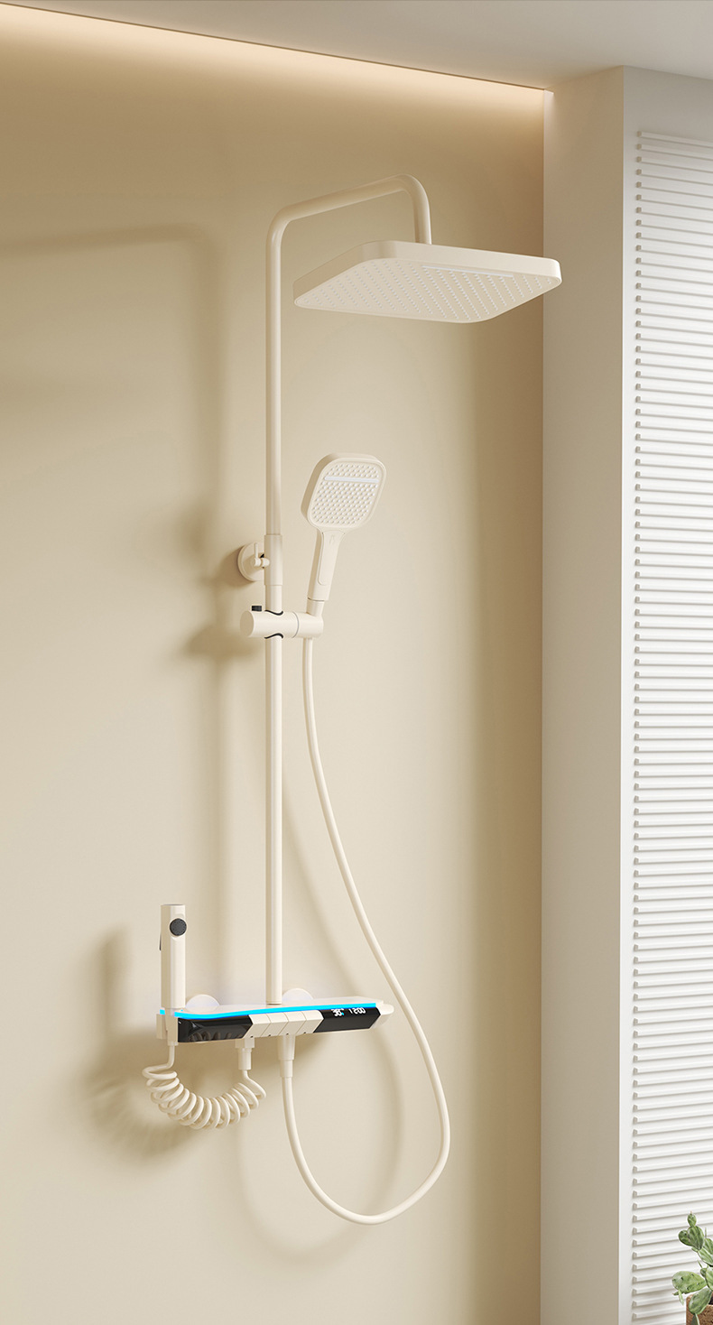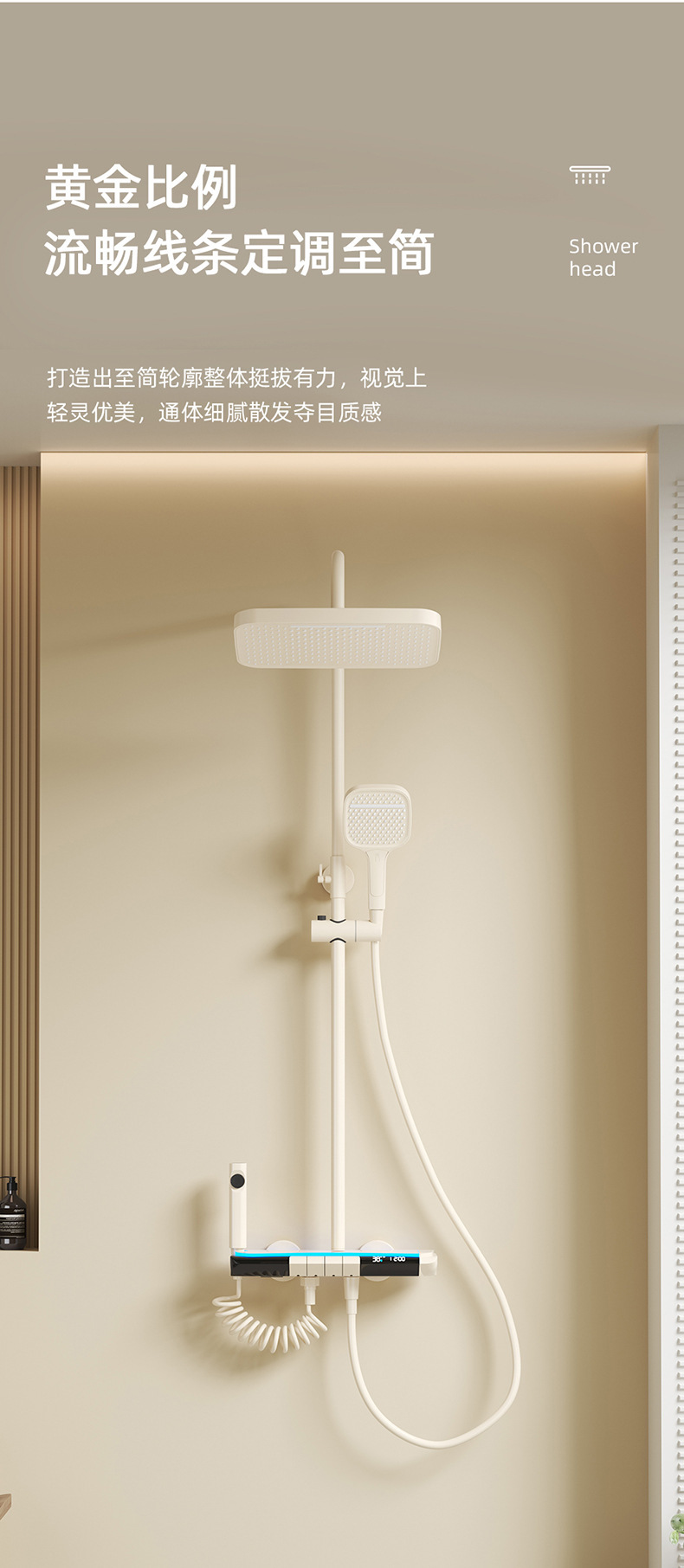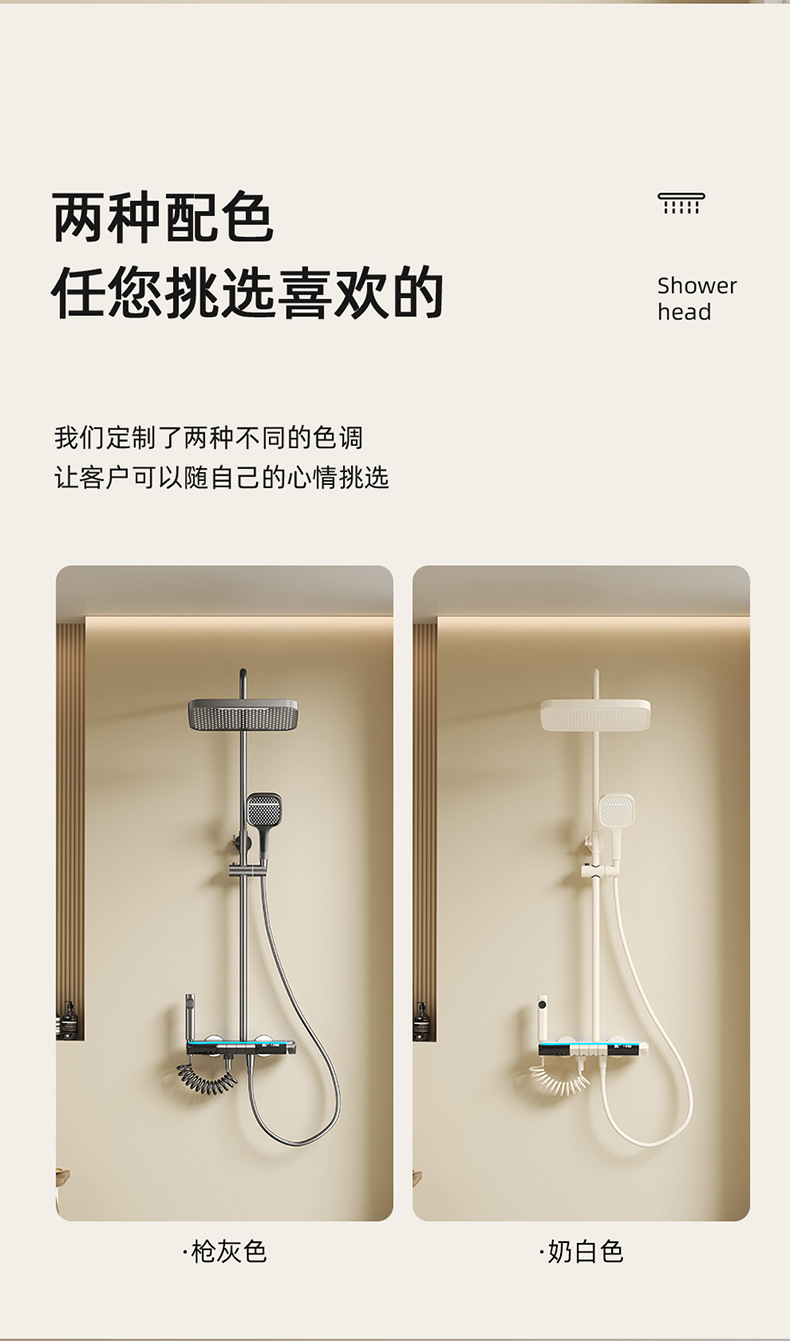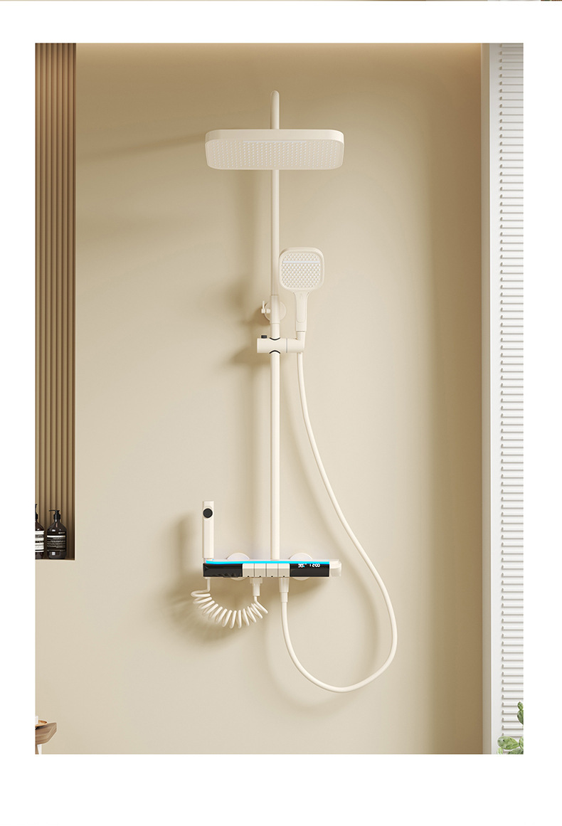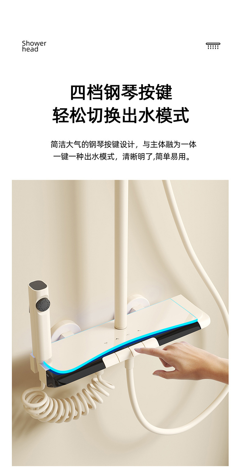 크림 스타일 화이트 일정한 온도 샤워 세트 욕실 가정용 샤워 헤드 피아노 키 비 샤워 바디