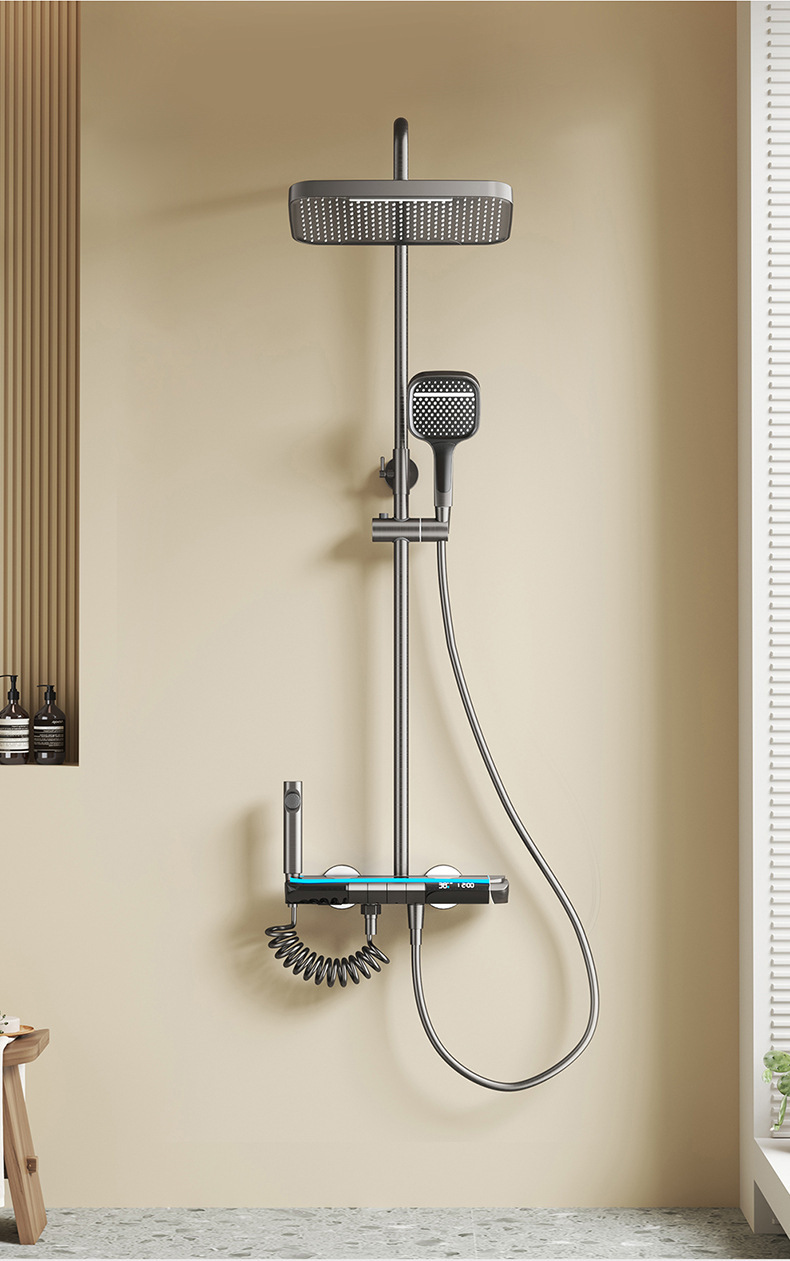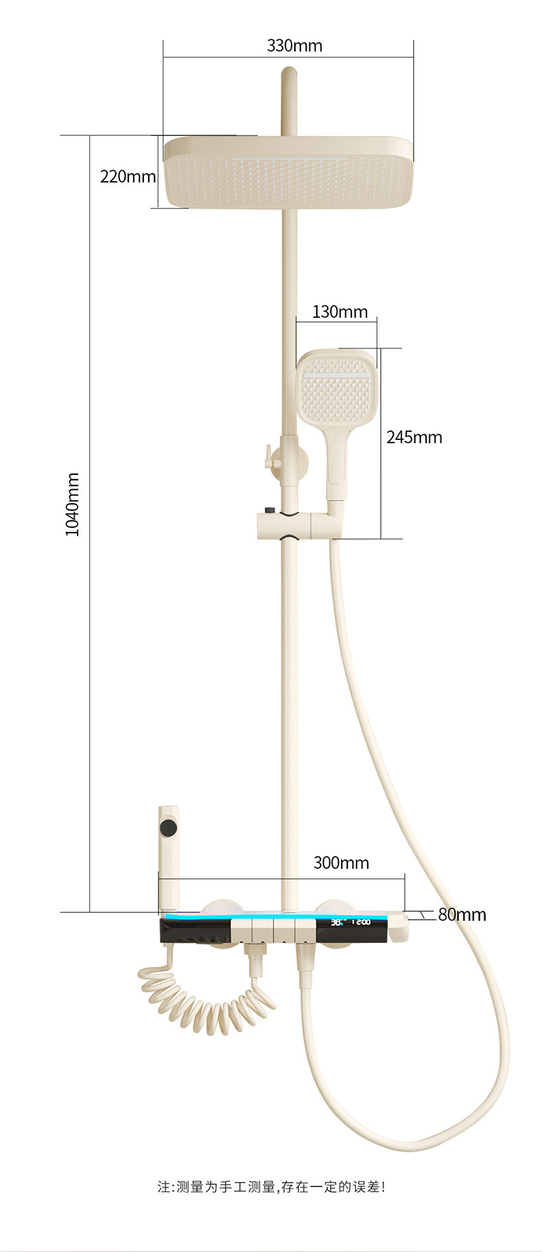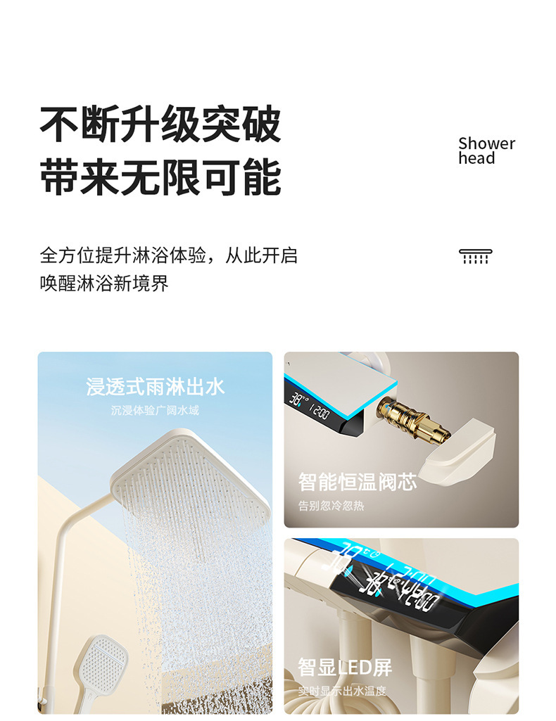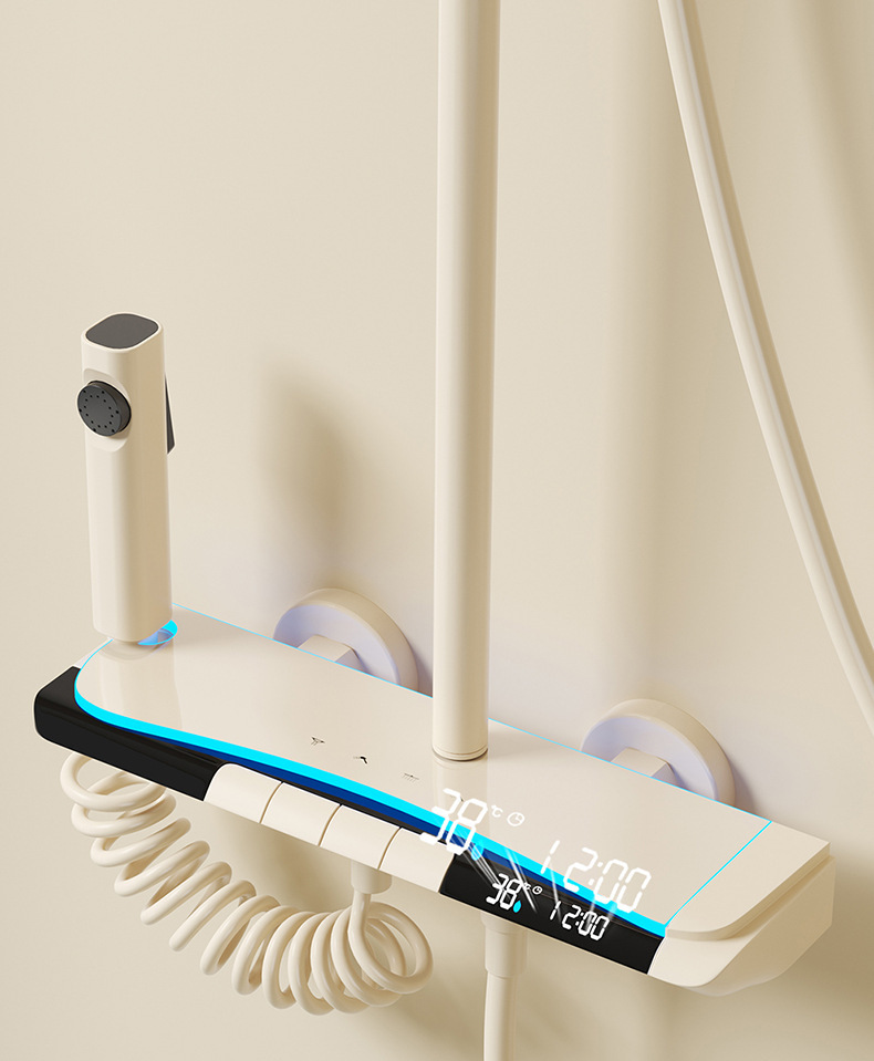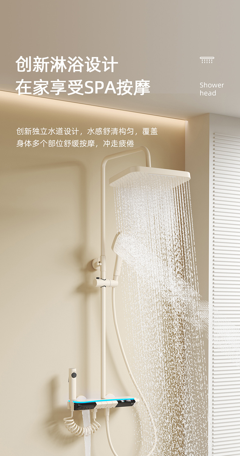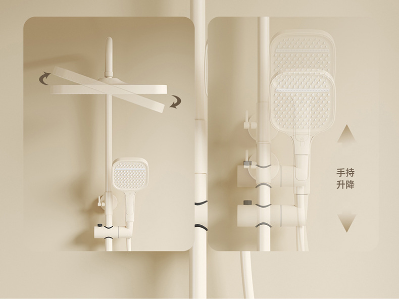 크림 스타일 화이트 일정한 온도 샤워 세트 욕실 가정용 샤워 헤드 피아노 키 비 샤워 바디