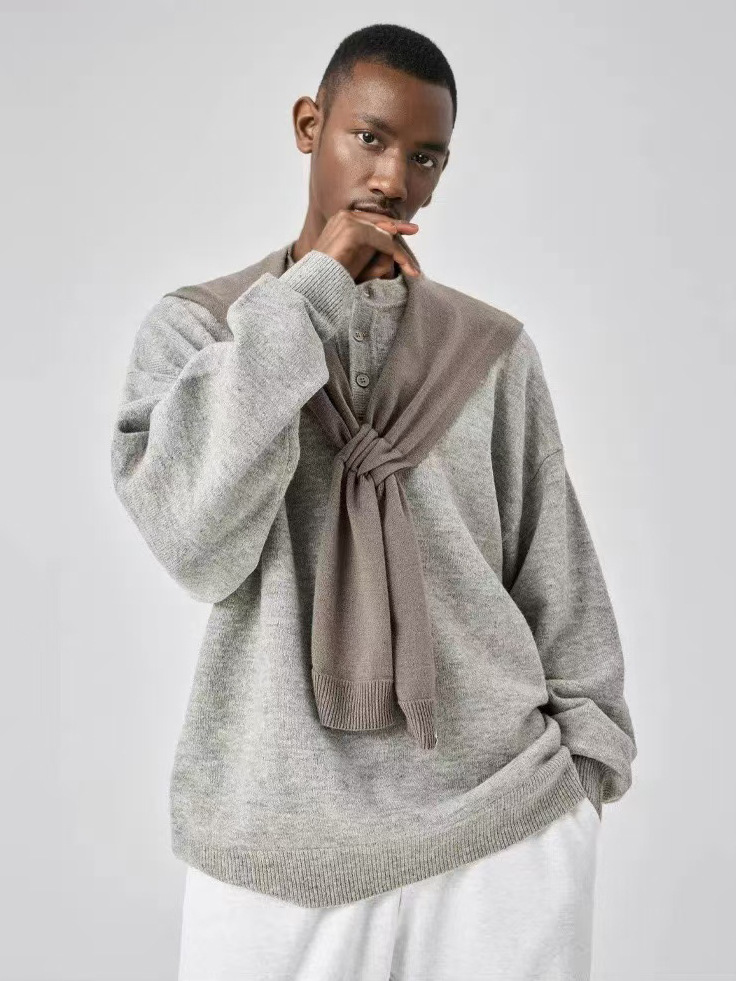 유럽과 미국의 중립 스타일 POLO 칼라 스웨터 남성용 겨울 기계 빨 수있는 블랙 스웨터 게으른 고급 바닥 스웨터스토어 가기