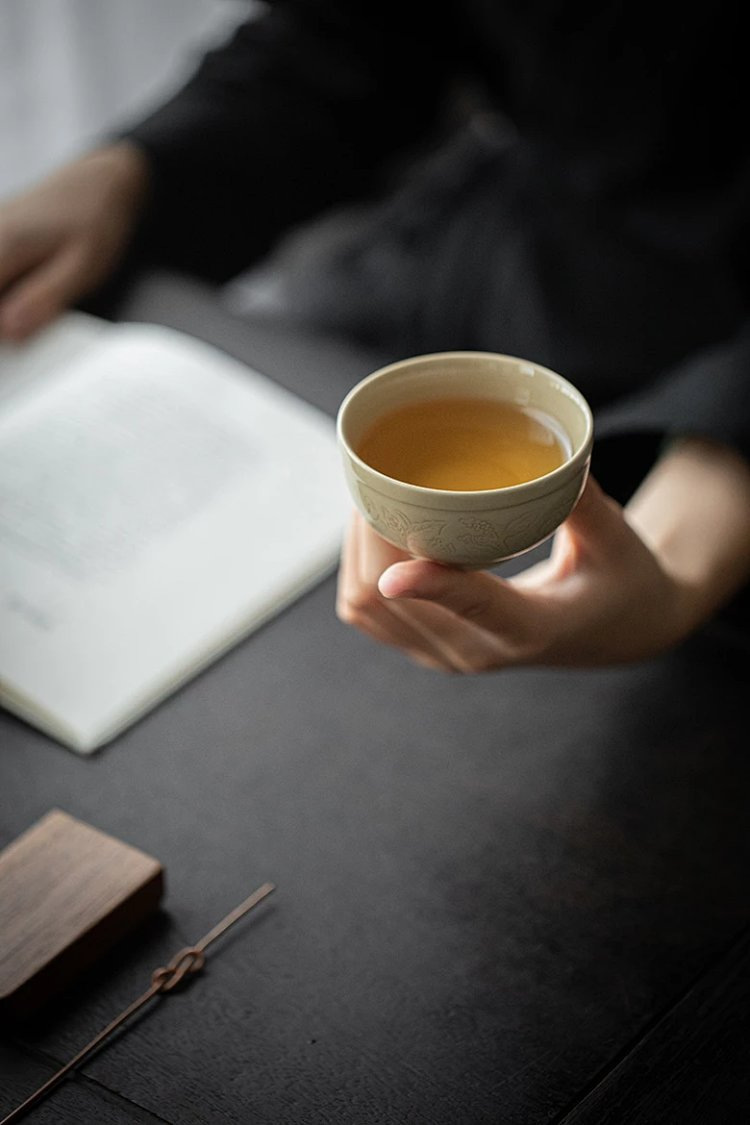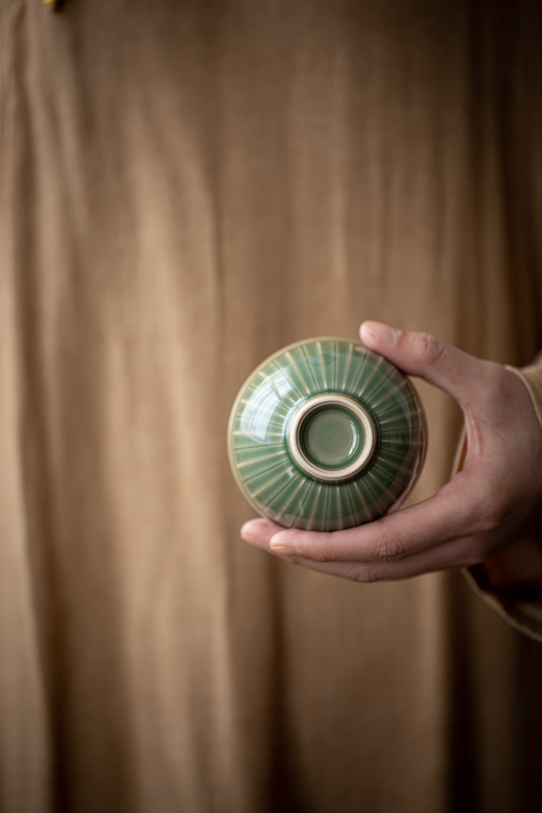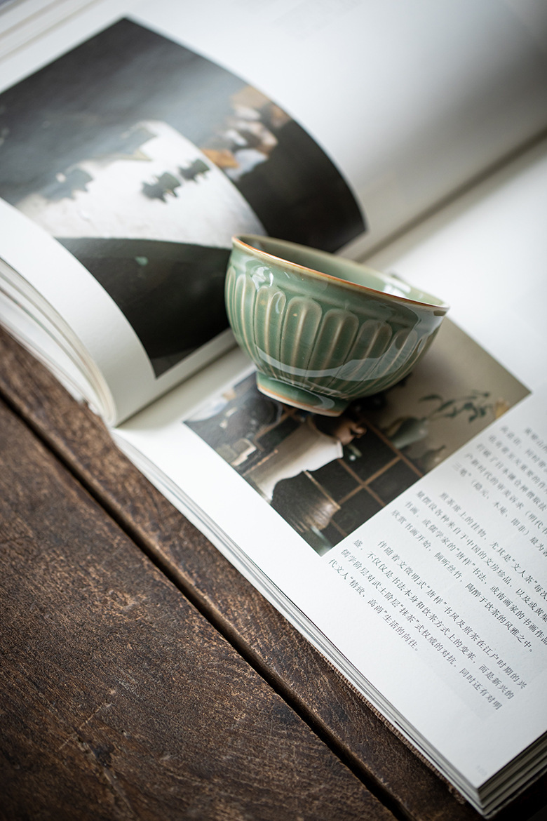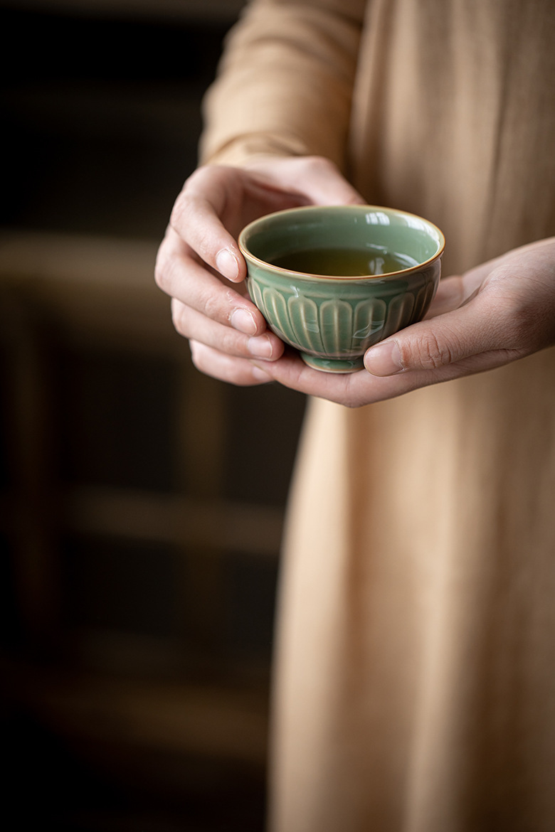 Moji Yue Kiln 청자 조각 마스터 컵 전통 Yaozhou Kiln 가정용 티 컵 차 시음 컵 Dingyao 골동품 싱글 컵