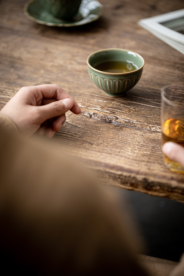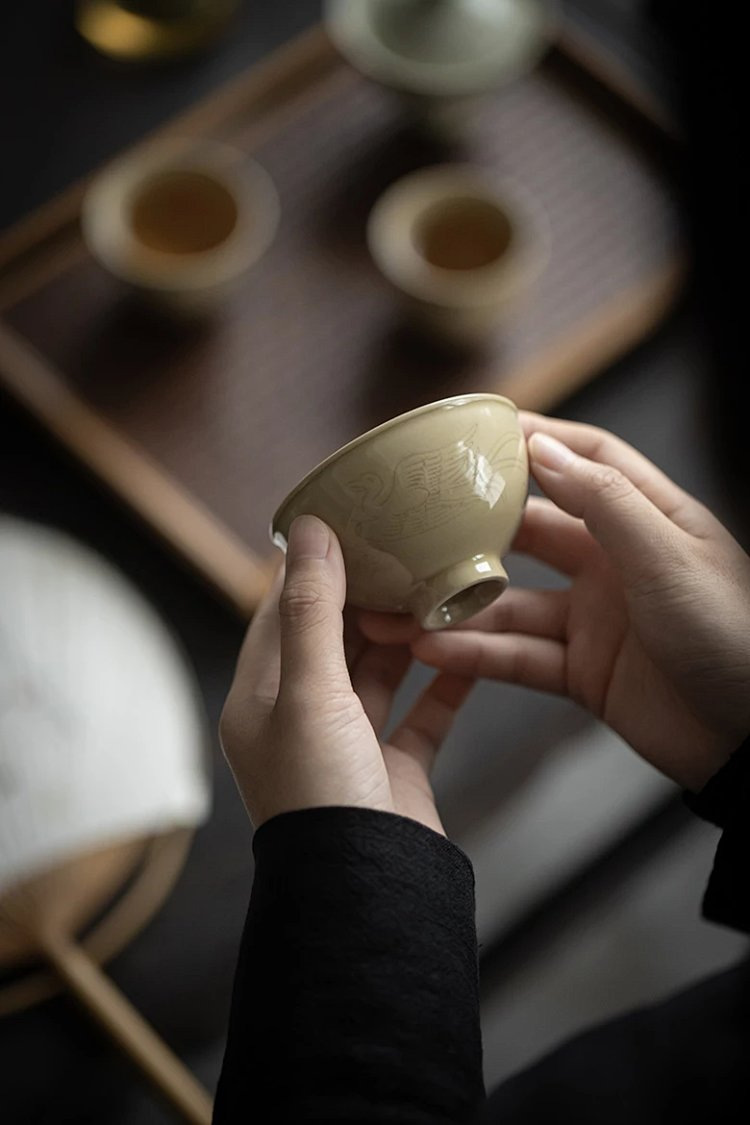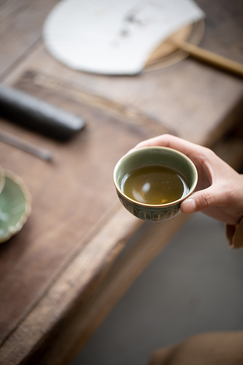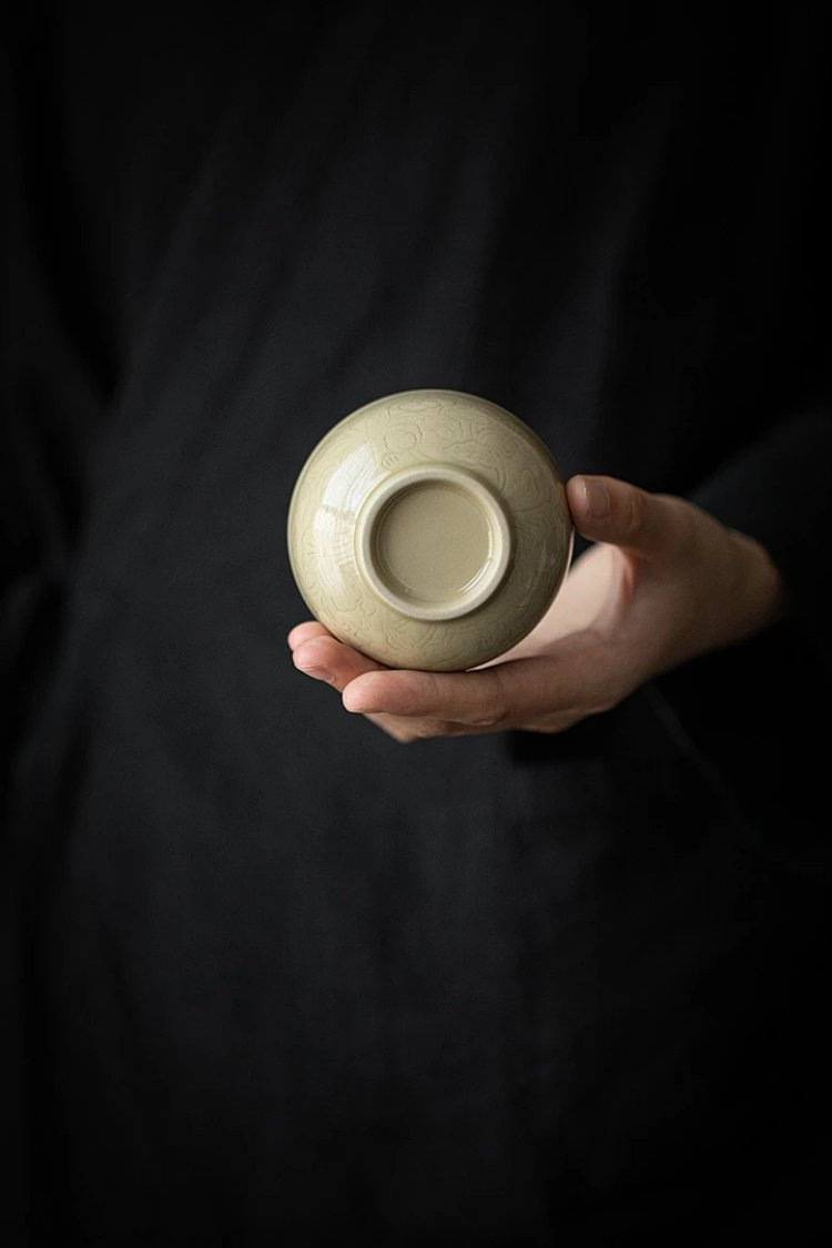 Moji Yue Kiln 청자 조각 마스터 컵 전통 Yaozhou Kiln 가정용 티 컵 차 시음 컵 Dingyao 골동품 싱글 컵