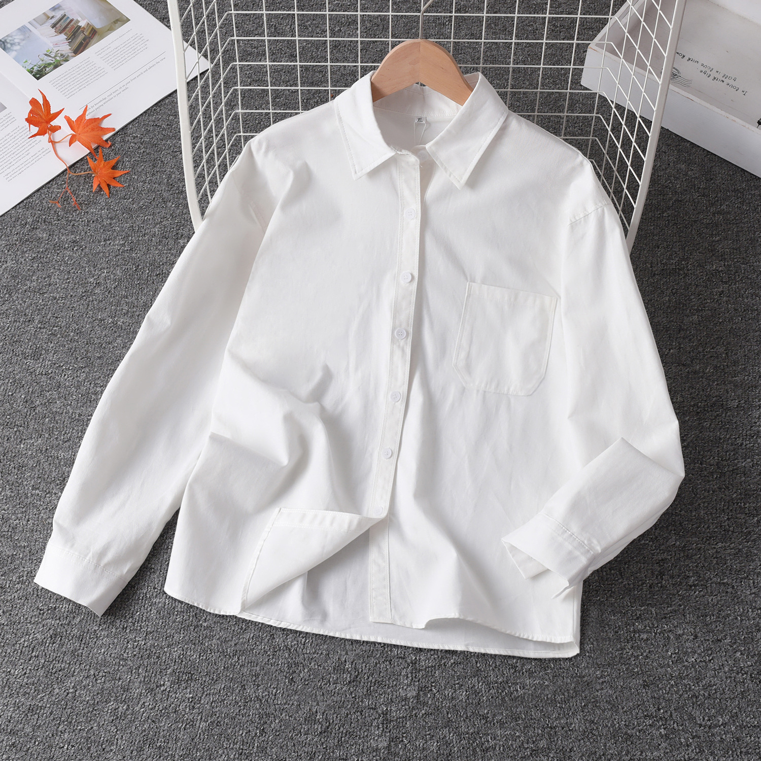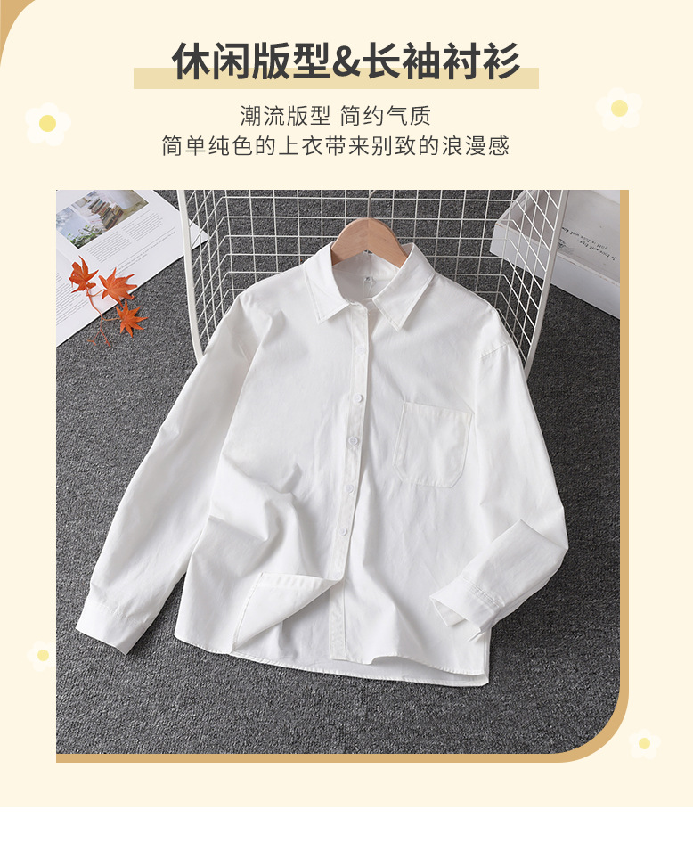 여성을위한 흰색 면 셔츠 2025 새로운 가을 디자인 다목적 솔리드 컬러 간단한 포켓 긴팔 레이어드 탑