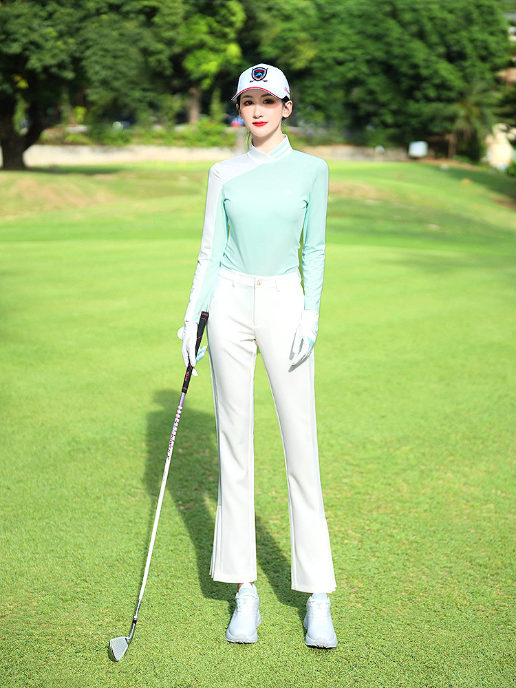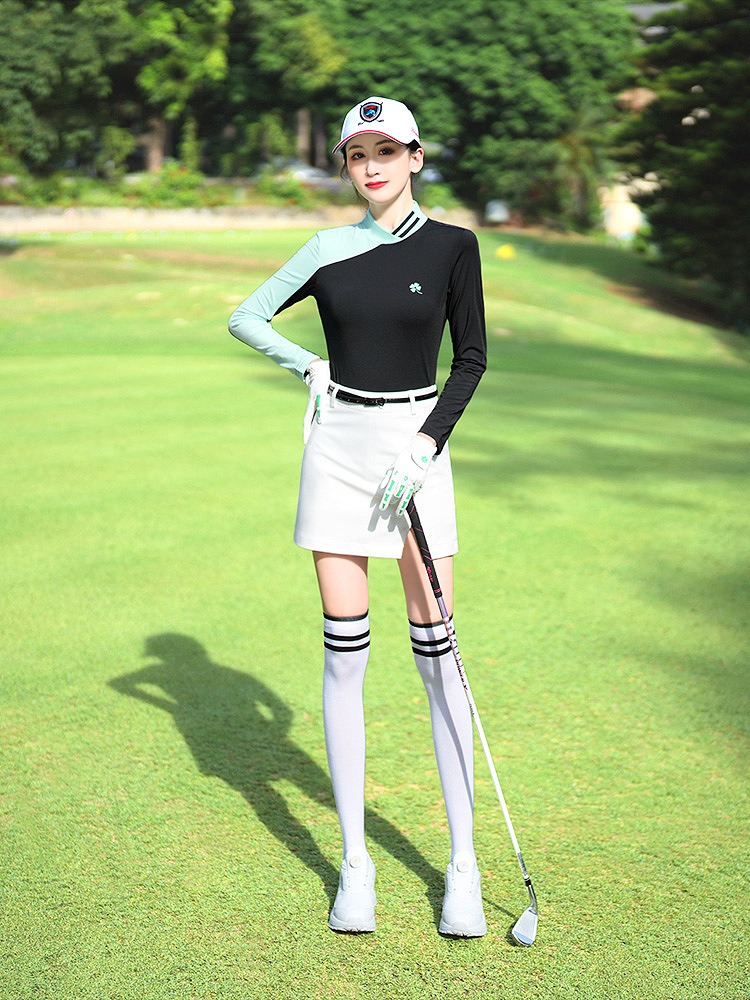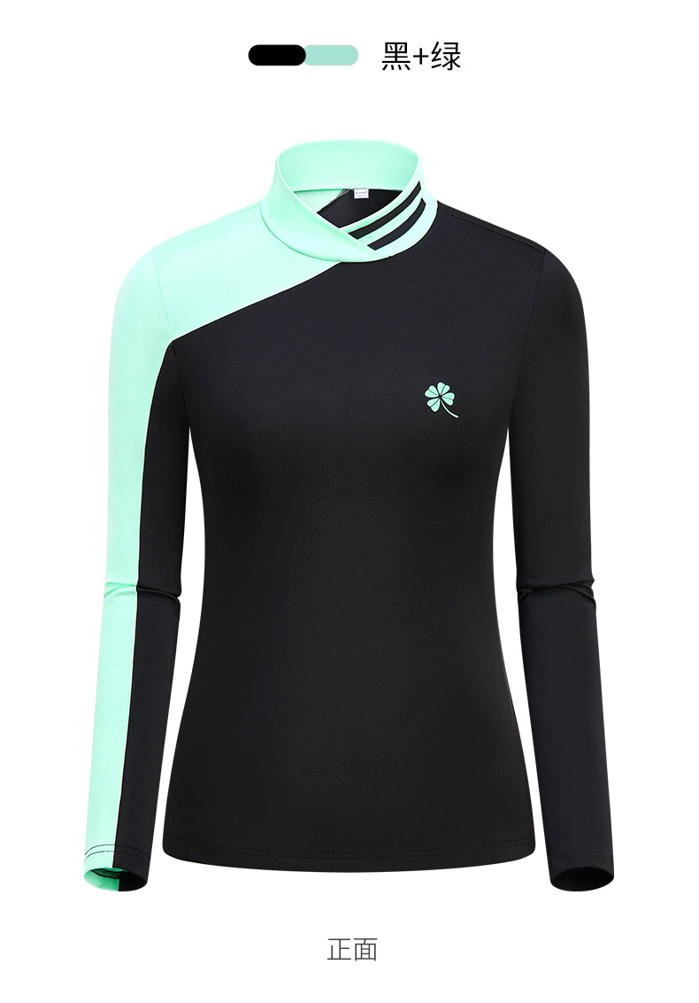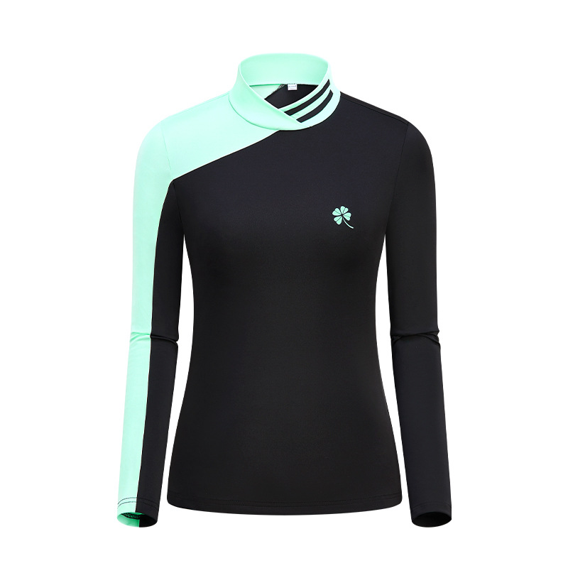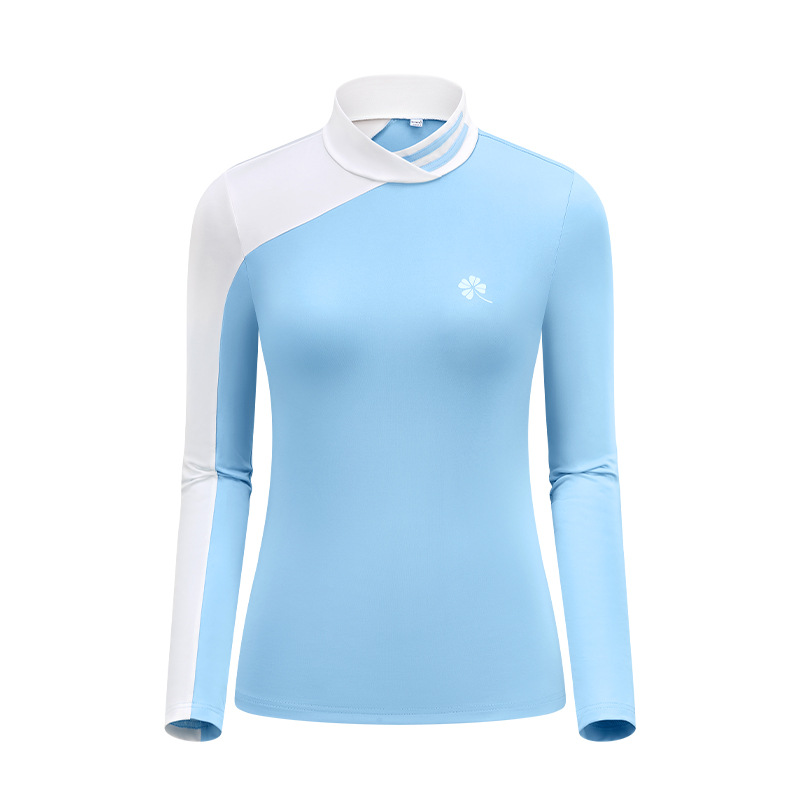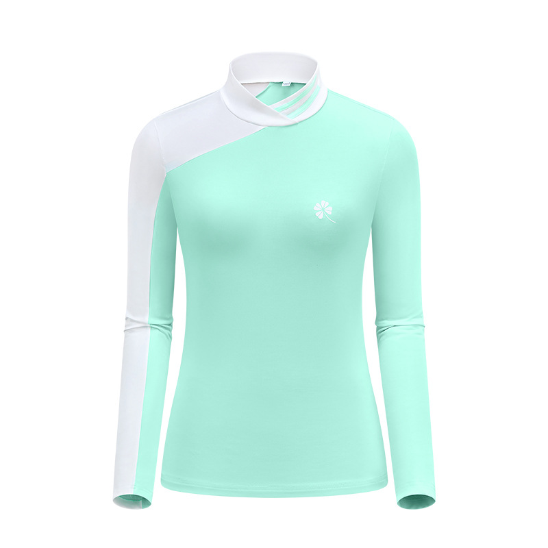골프 의류 여성용 긴팔 티셔츠 한국 스타일 스탠드 칼라 슬림핏 여성 골프복 속건성 자외선 차단 상의