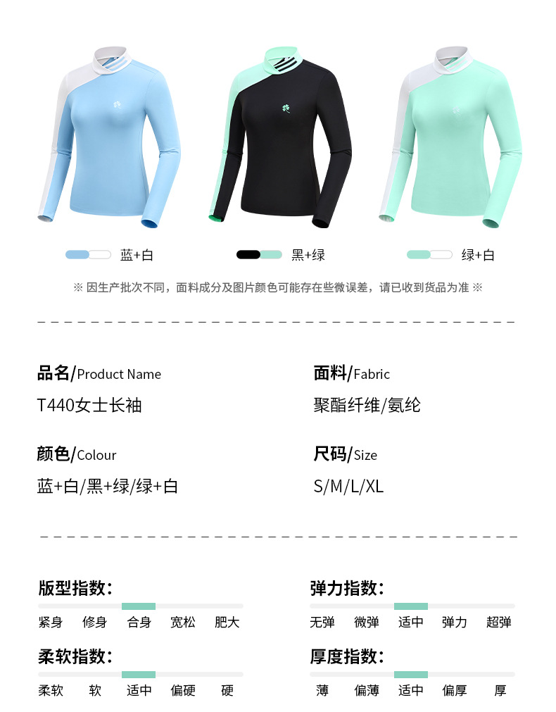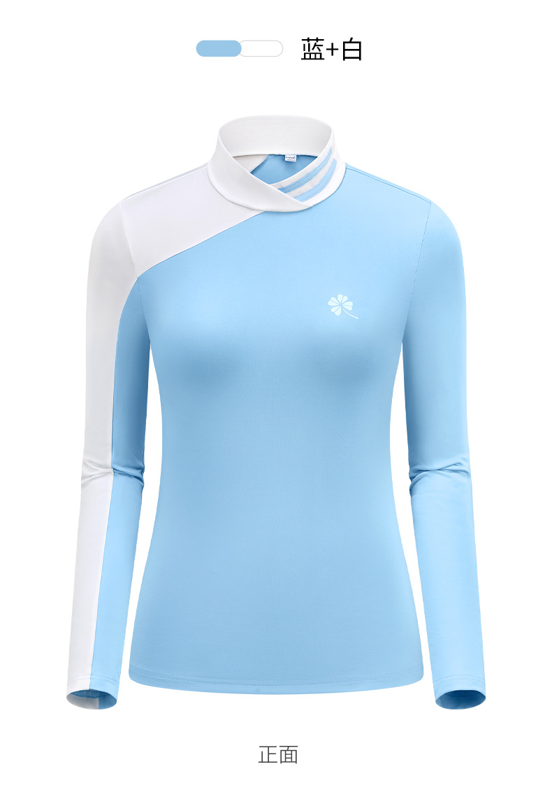 골프 의류 여성용 긴팔 티셔츠 한국 스타일 스탠드 칼라 슬림핏 여성 골프복 속건성 자외선 차단 상의스토어 가기