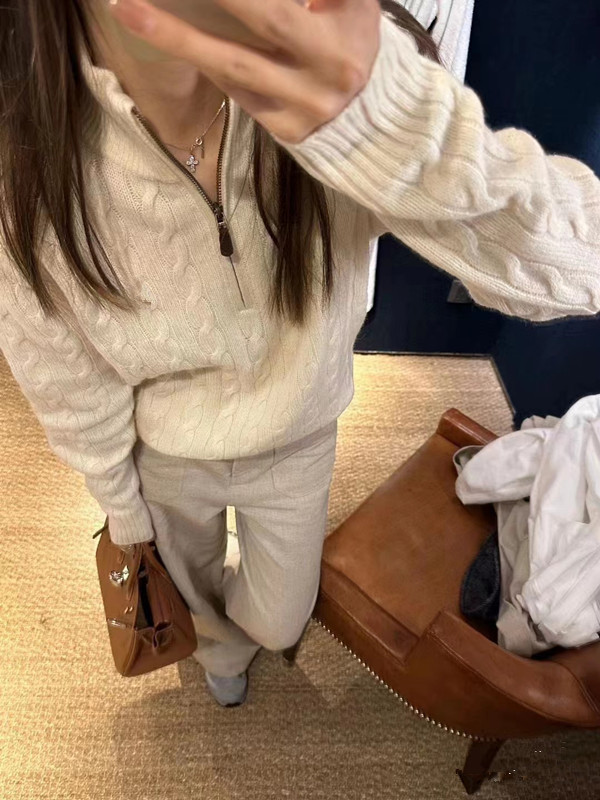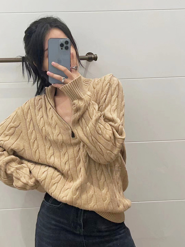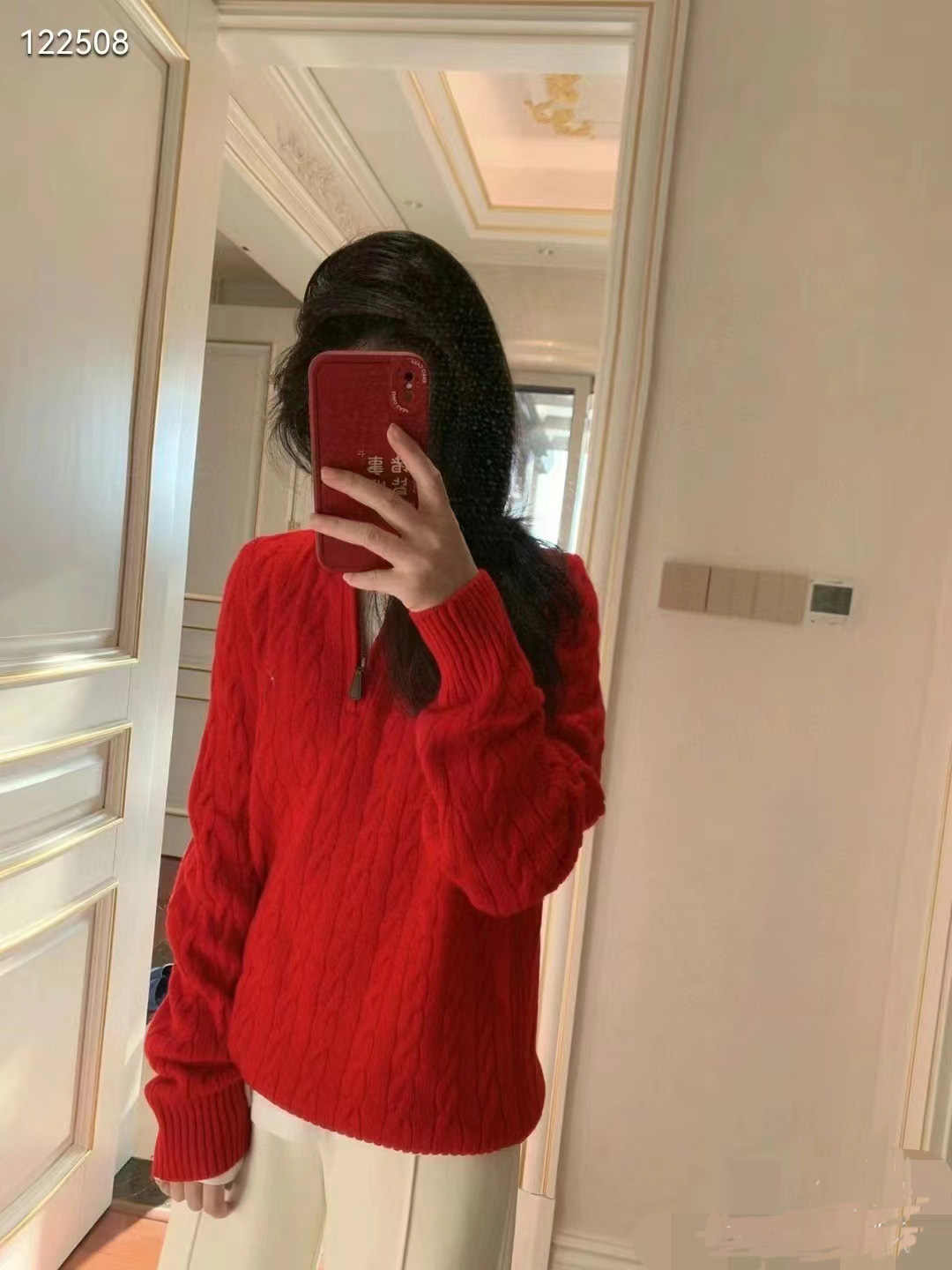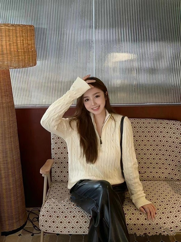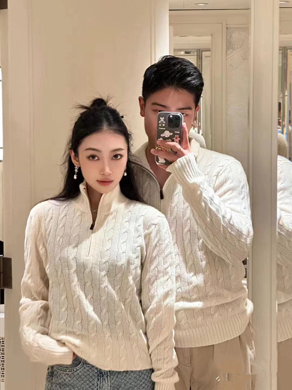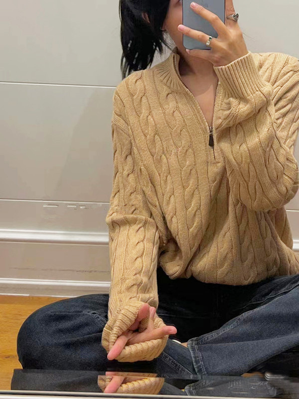 Ralph Pony Mark Half-Zip 울 스웨터 여성 트위스트 니트 남자와 여자의 하프 터틀넥 스웨터 울 버전스토어 가기