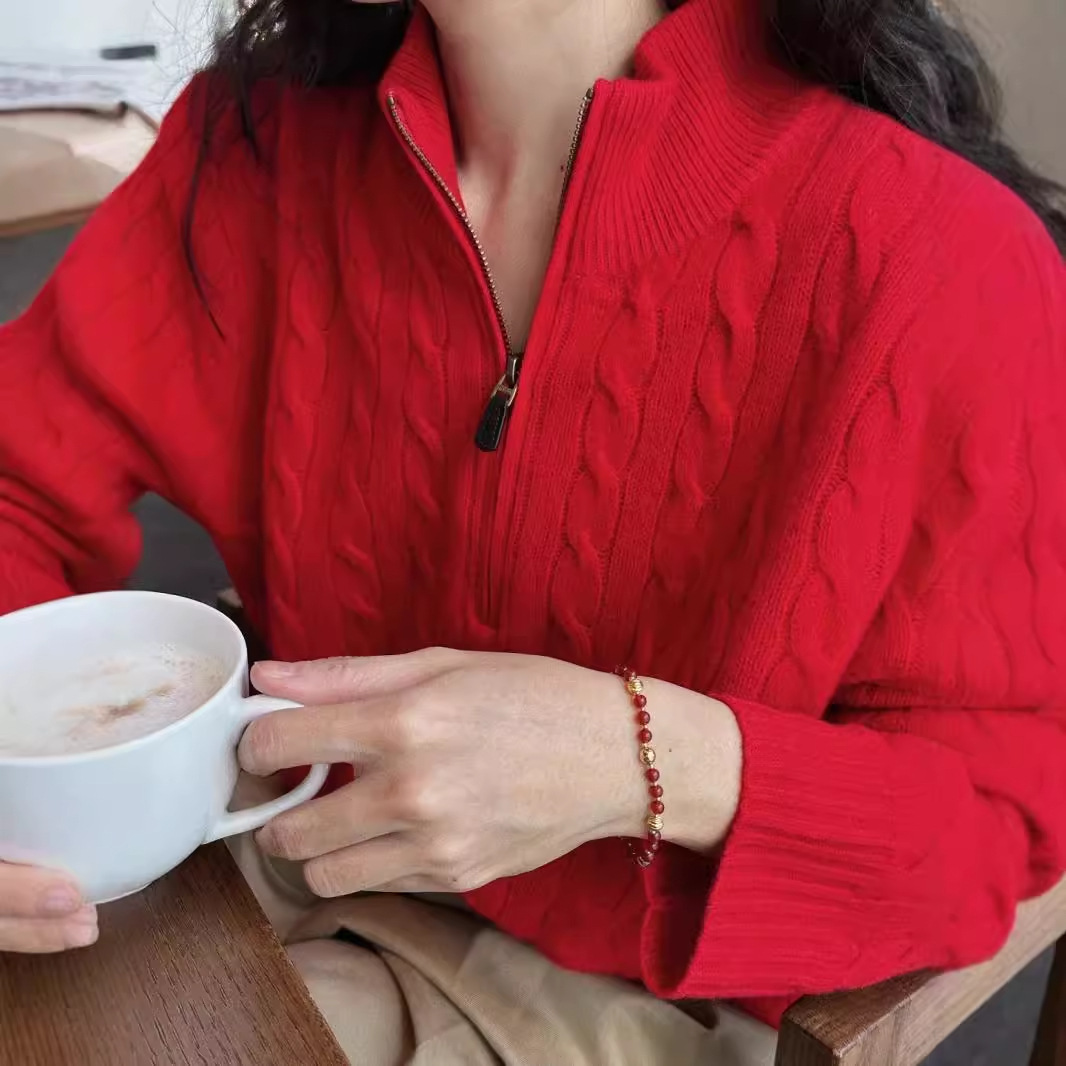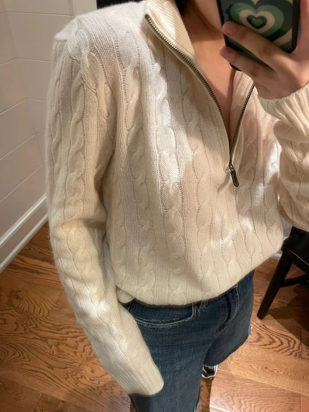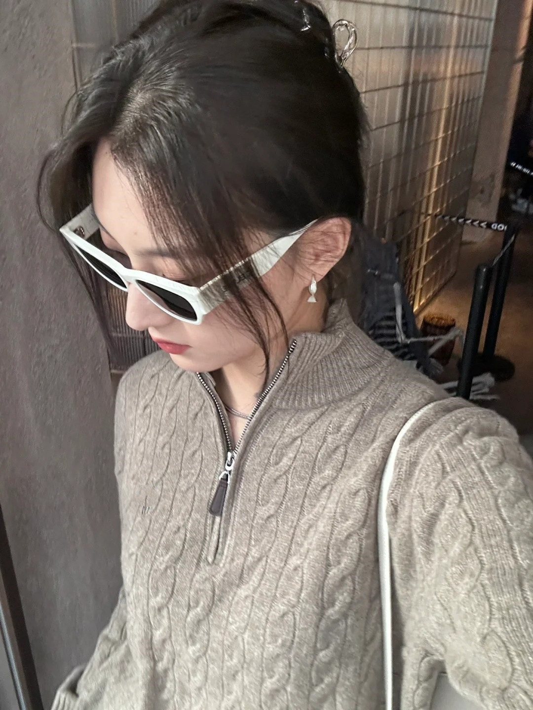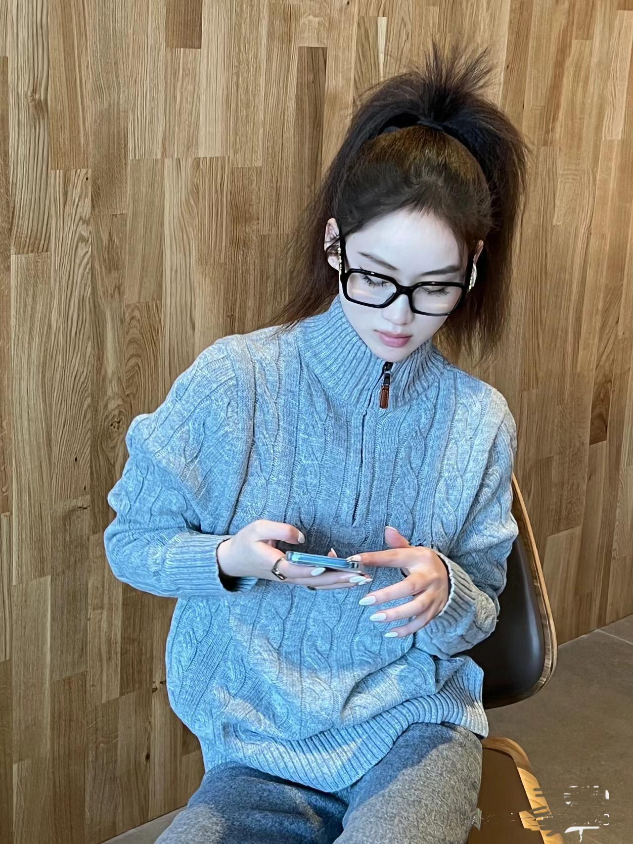 Ralph Pony Mark Half-Zip 울 스웨터 여성 트위스트 니트 남자와 여자의 하프 터틀넥 스웨터 울 버전스토어 가기