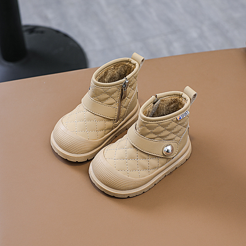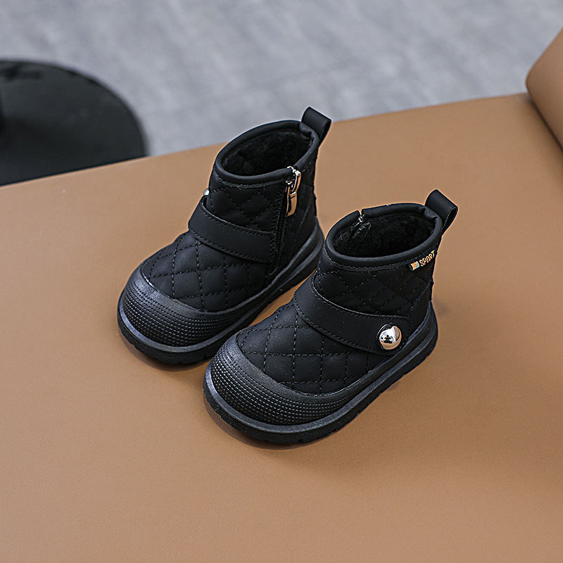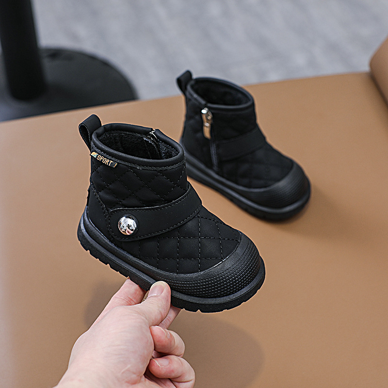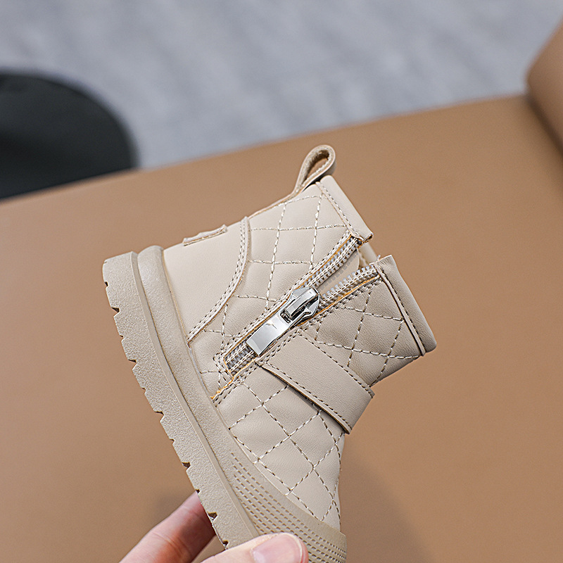 어린이 일본 시리즈 마름모꼴 발목 부츠 걸스 소프트 솔 킥 증명 코튼 슈즈 남성 포 벨벳 따뜻한 금속 사이드 지퍼 마틴 부츠