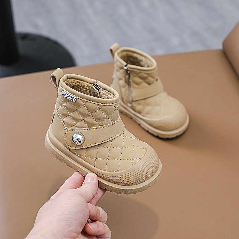 어린이 일본 시리즈 마름모꼴 발목 부츠 걸스 소프트 솔 킥 증명 코튼 슈즈 남성 포 벨벳 따뜻한 금속 사이드 지퍼 마틴 부츠스토어 가기