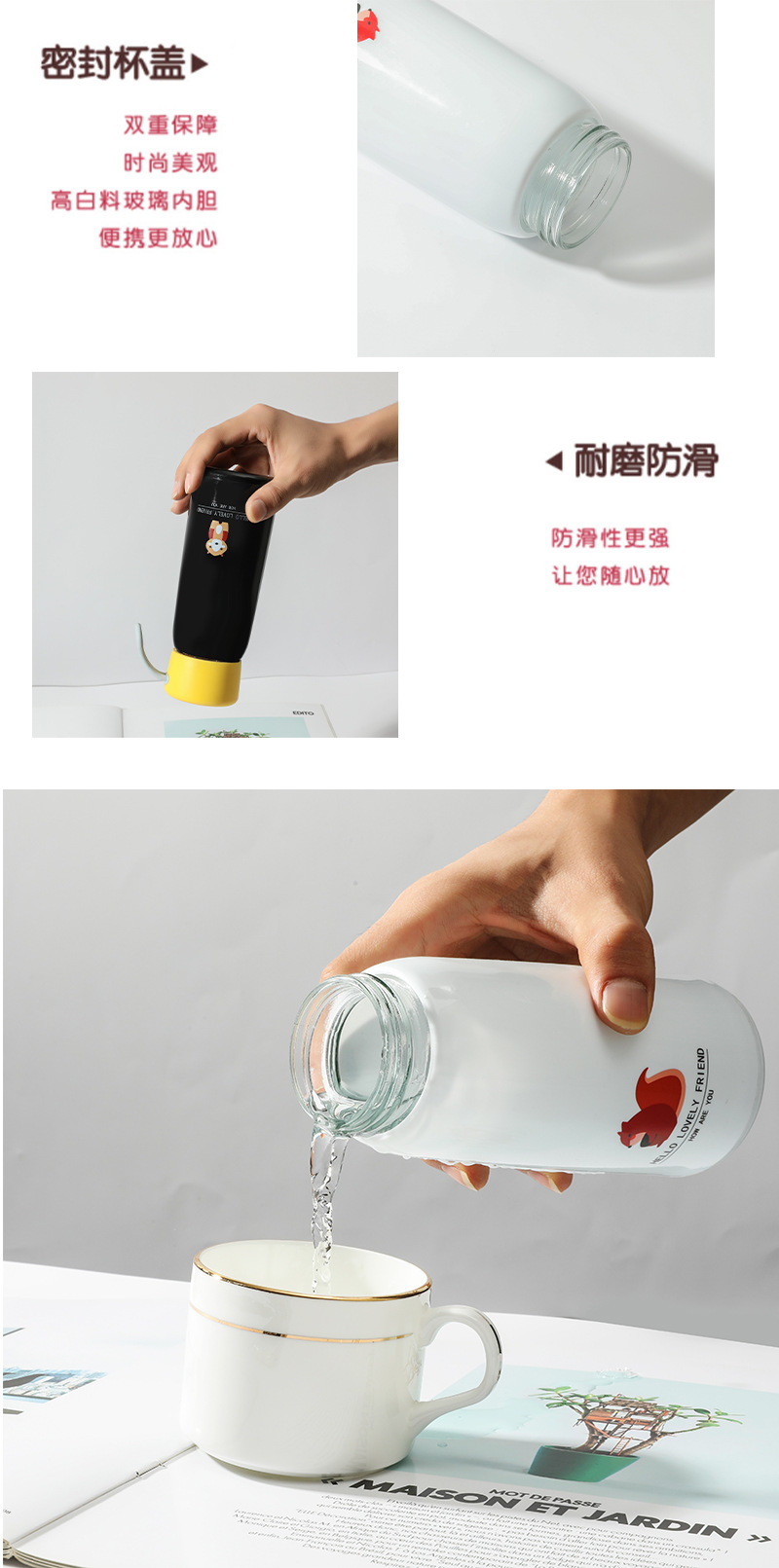 패션 유리 더블 레이어 휴대용 U-양 컵은 간단한 귀여운 패션 학생 물 컵 푸시 광고 선물 컵스토어 가기