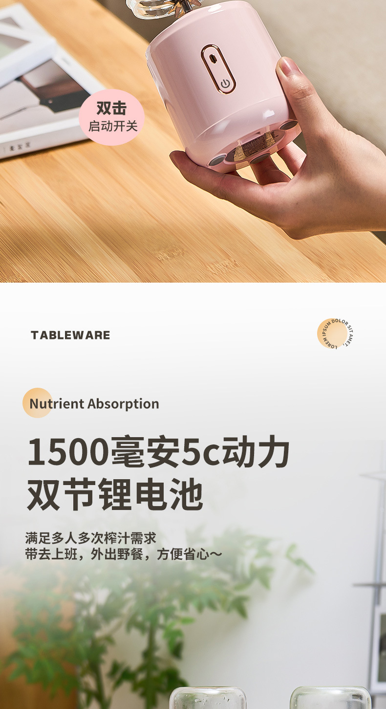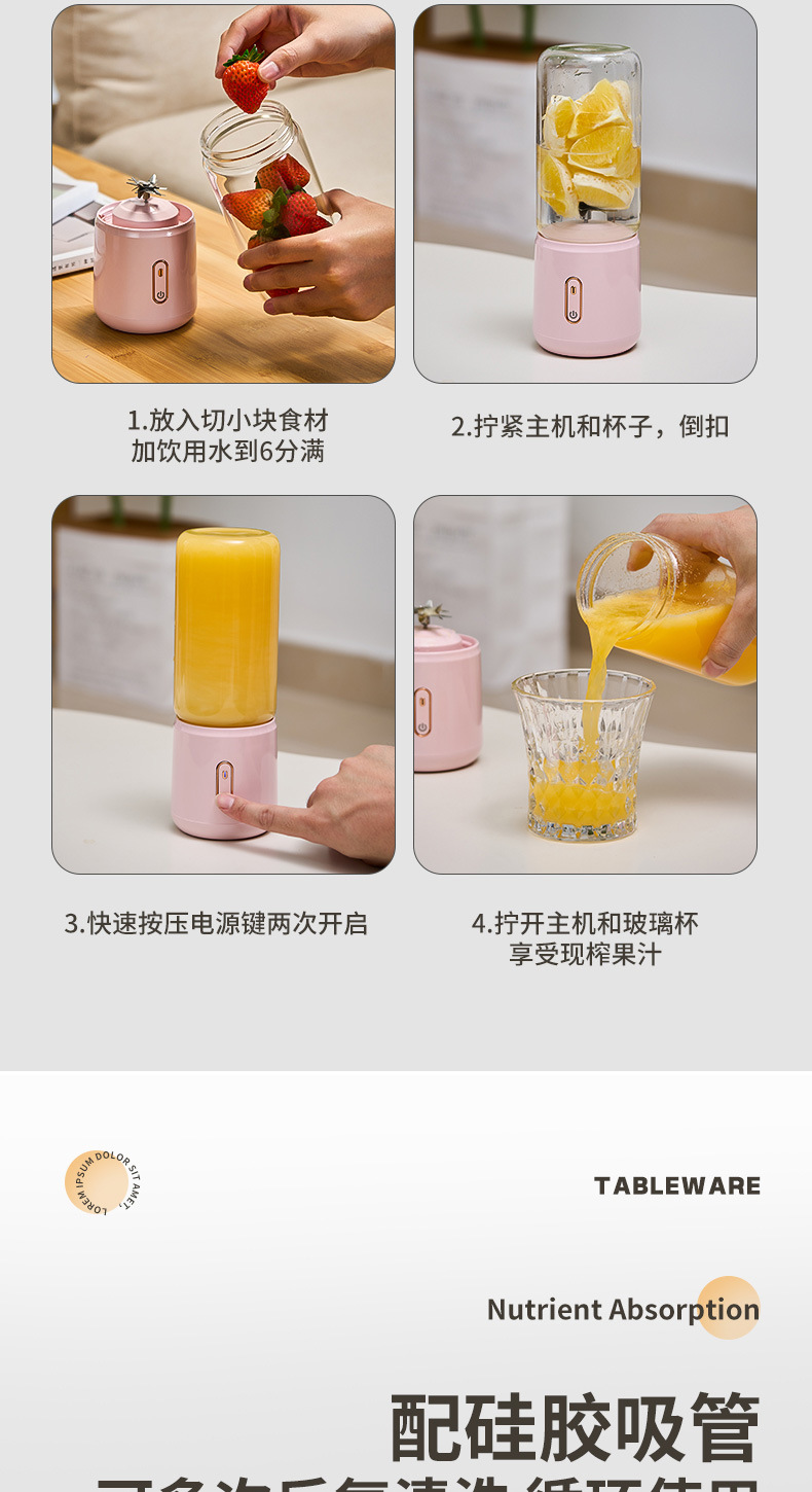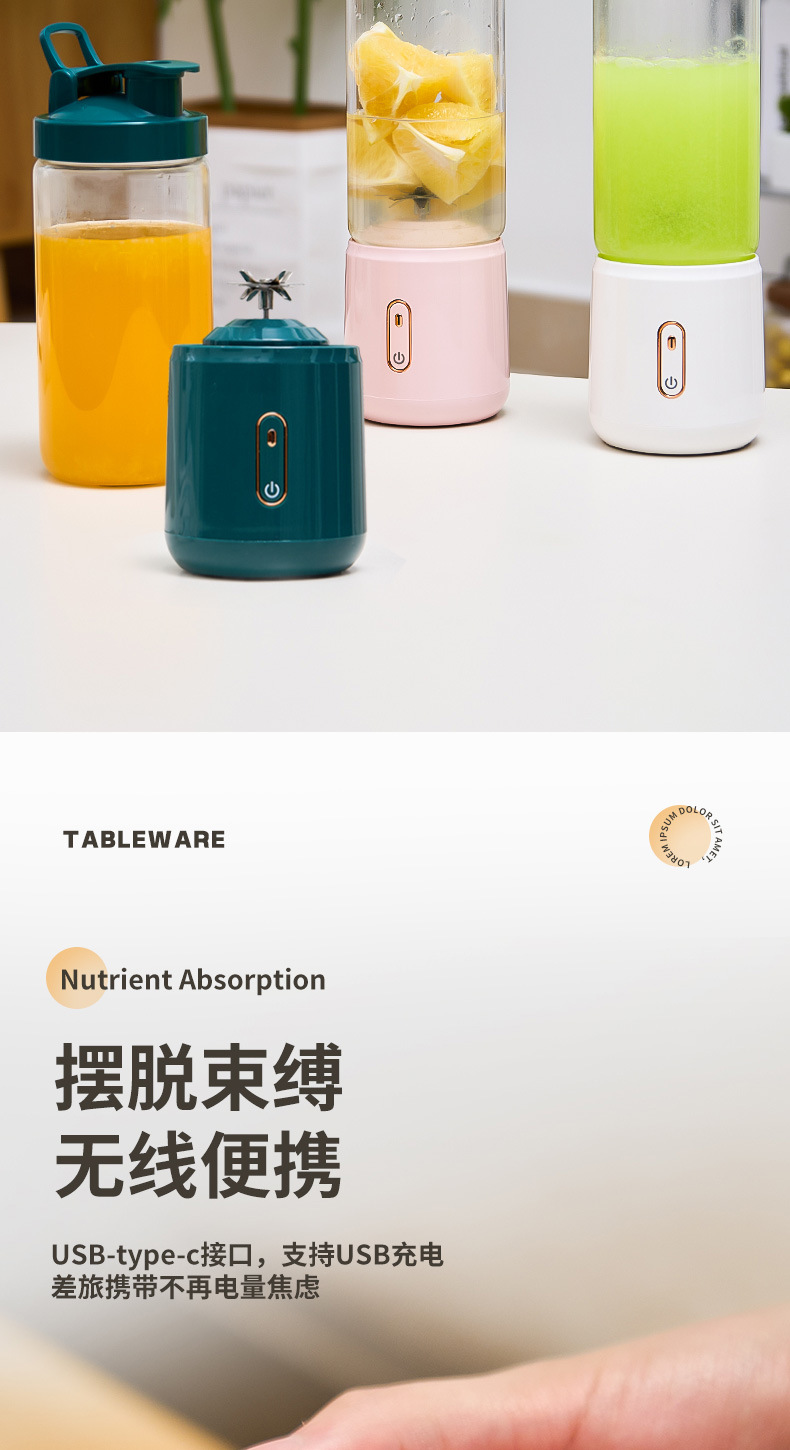 신제품 충전 블렌더 휴대용 과즙 짜는지기 분쇄 아이스 과즙 과일 주스 컵 전기 요리 기계 생성