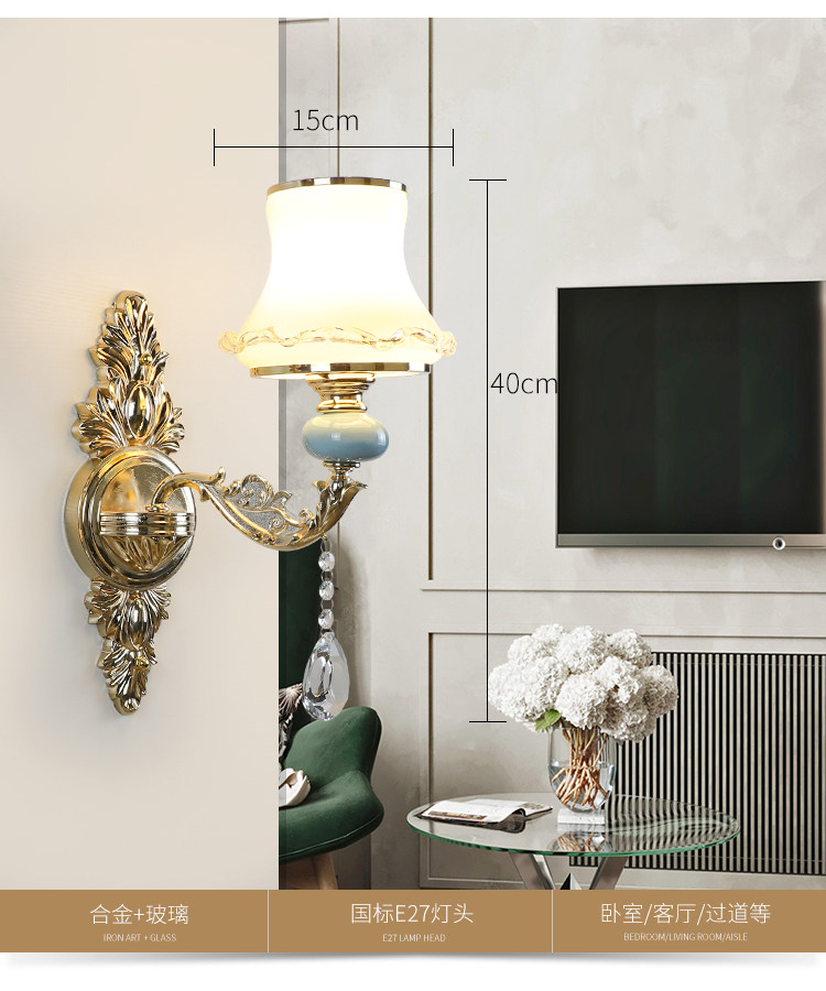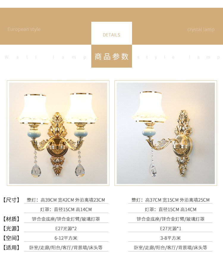 크리스탈 거실 벽 램프 유럽 스타일 침실 클럽 배경 벽 고급 벽 램프 간단한 현대 침실 램프 통로 램프스토어 가기
