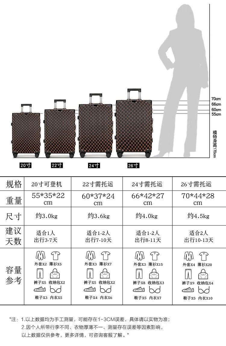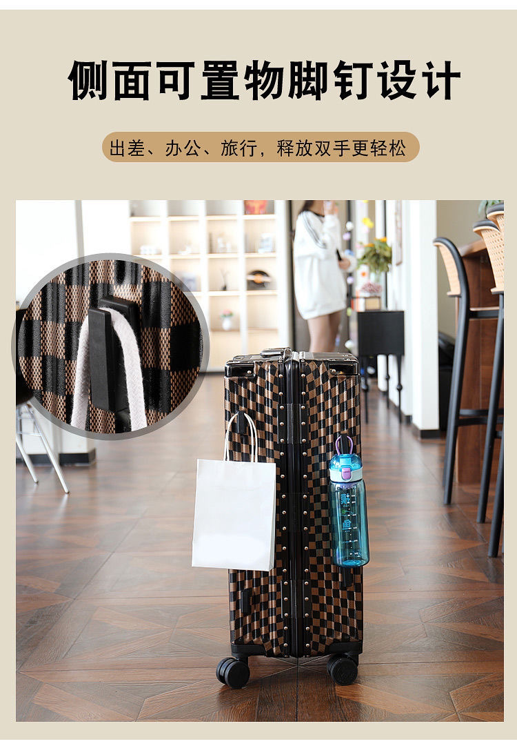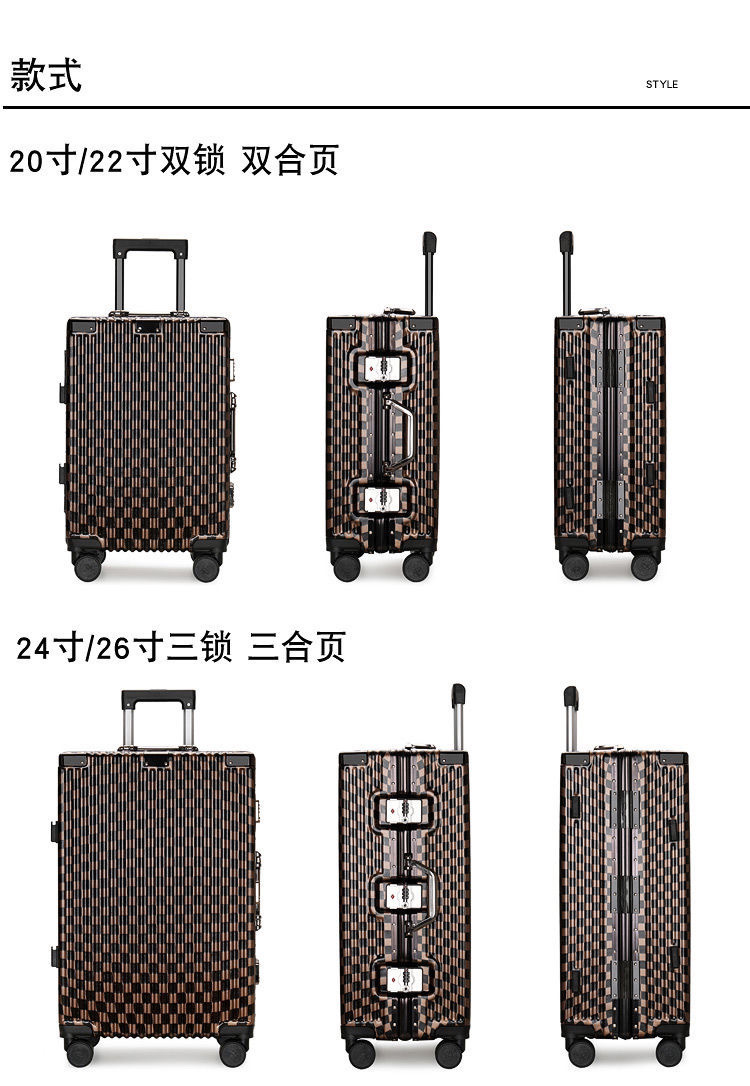 棋盘旅行箱铝框机箱20拉杆箱24密码箱万向轮男女行李箱大容量防摔